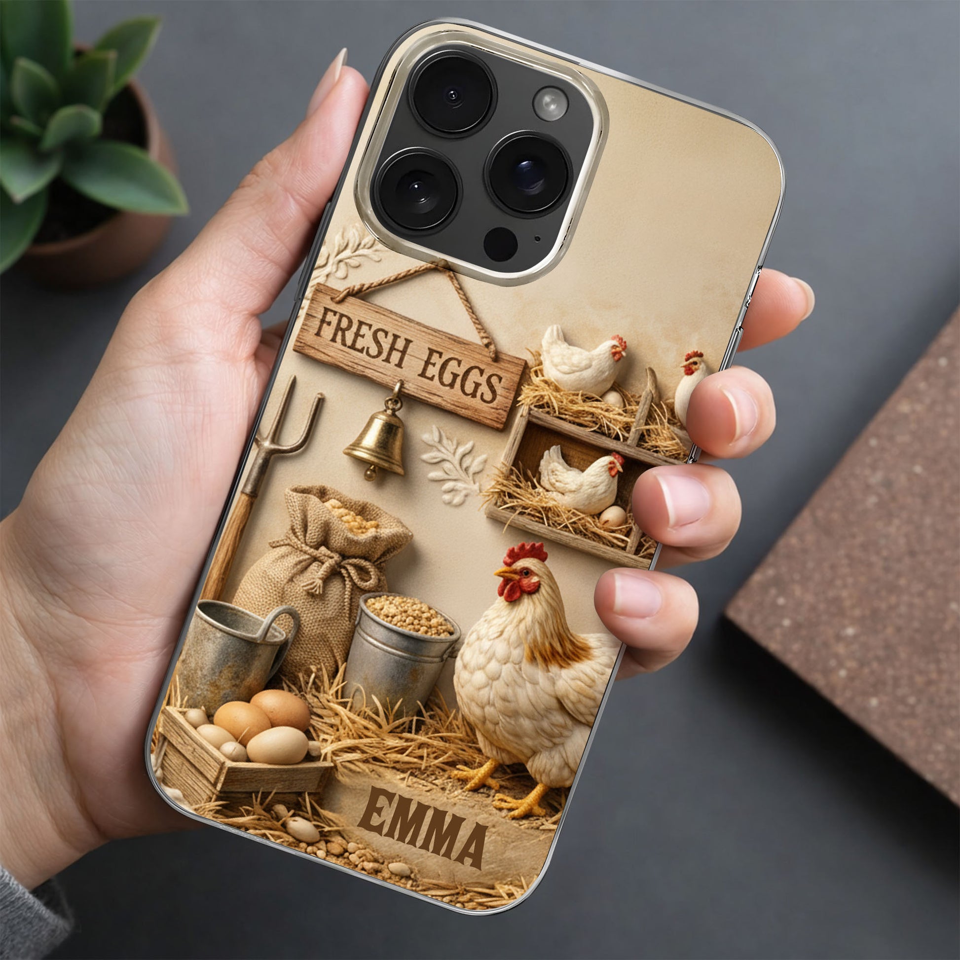 Fresh Eggs With Chickens And Farm Tools Design,Personalized Clear Phone Case,Gift For Farm Owners And Chicken Enthusiasts