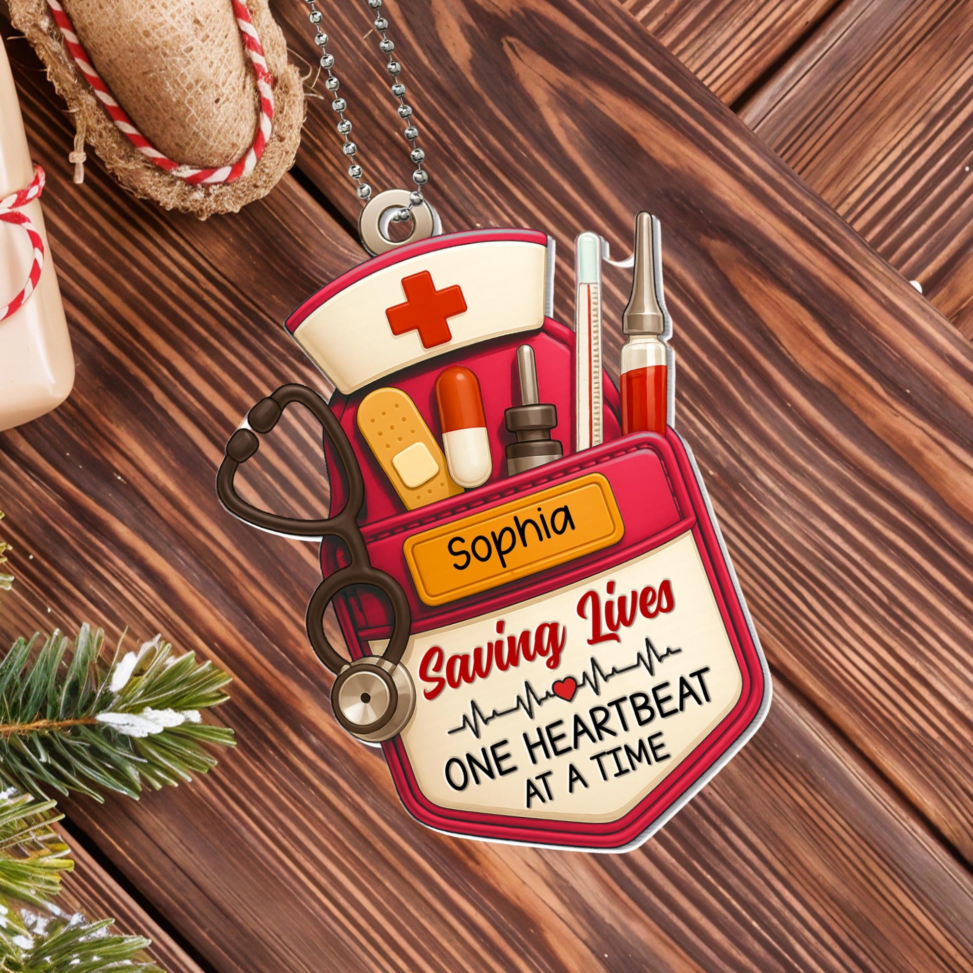 Saving Lives One Heartbeat At A Time, Car Hanging Ornament, Gift For Healthcare Workers