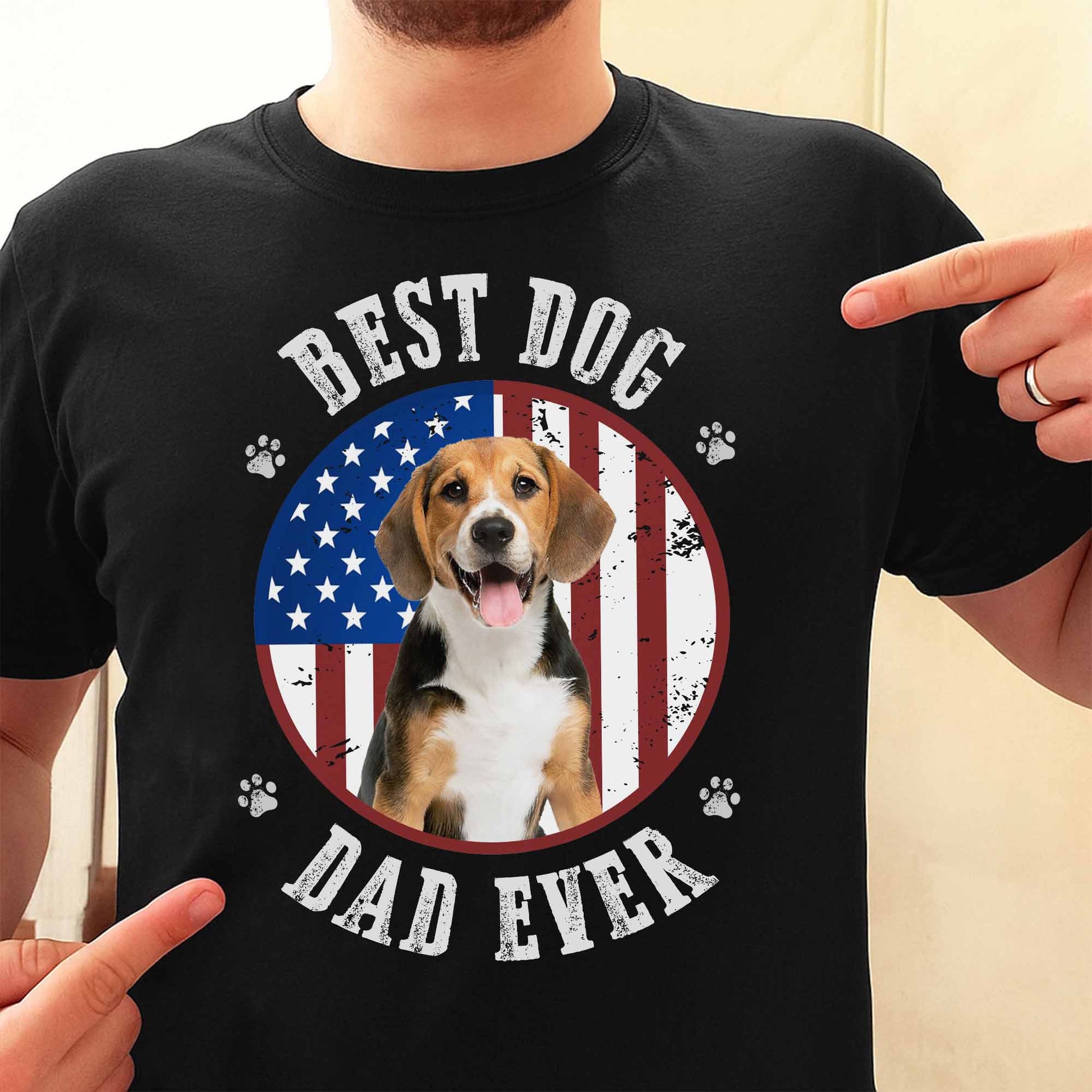 Best Dog Dad Ever With American Flag - Personalized Custom Unisex T-shirt, Hoodie - PET112_BBAS