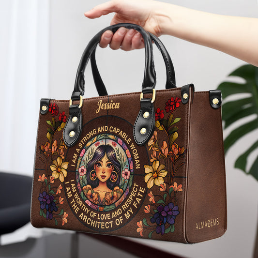 Soy una mujer fuerte y capaz - Bolso de piel personalizado - HG49