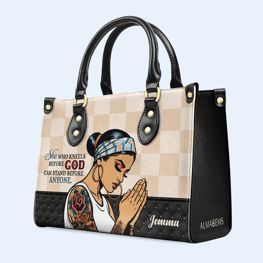 La que se arrodilla ante Dios - Bolso de mano de cuero personalizado - MX10