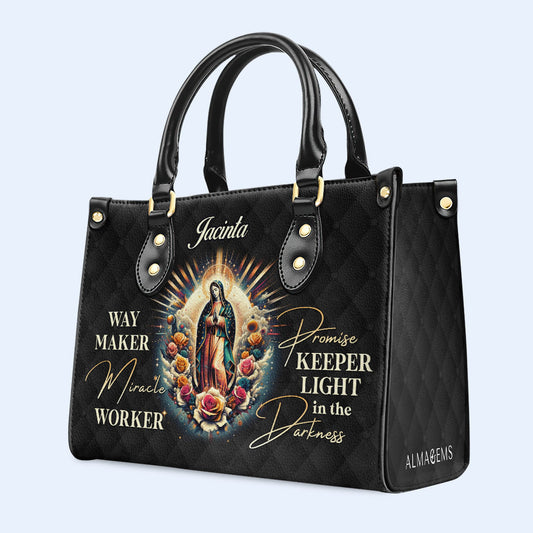 La que se arrodilla ante Nuestra Señora de Guadalupe - Bolso de mano de cuero personalizado - MX17