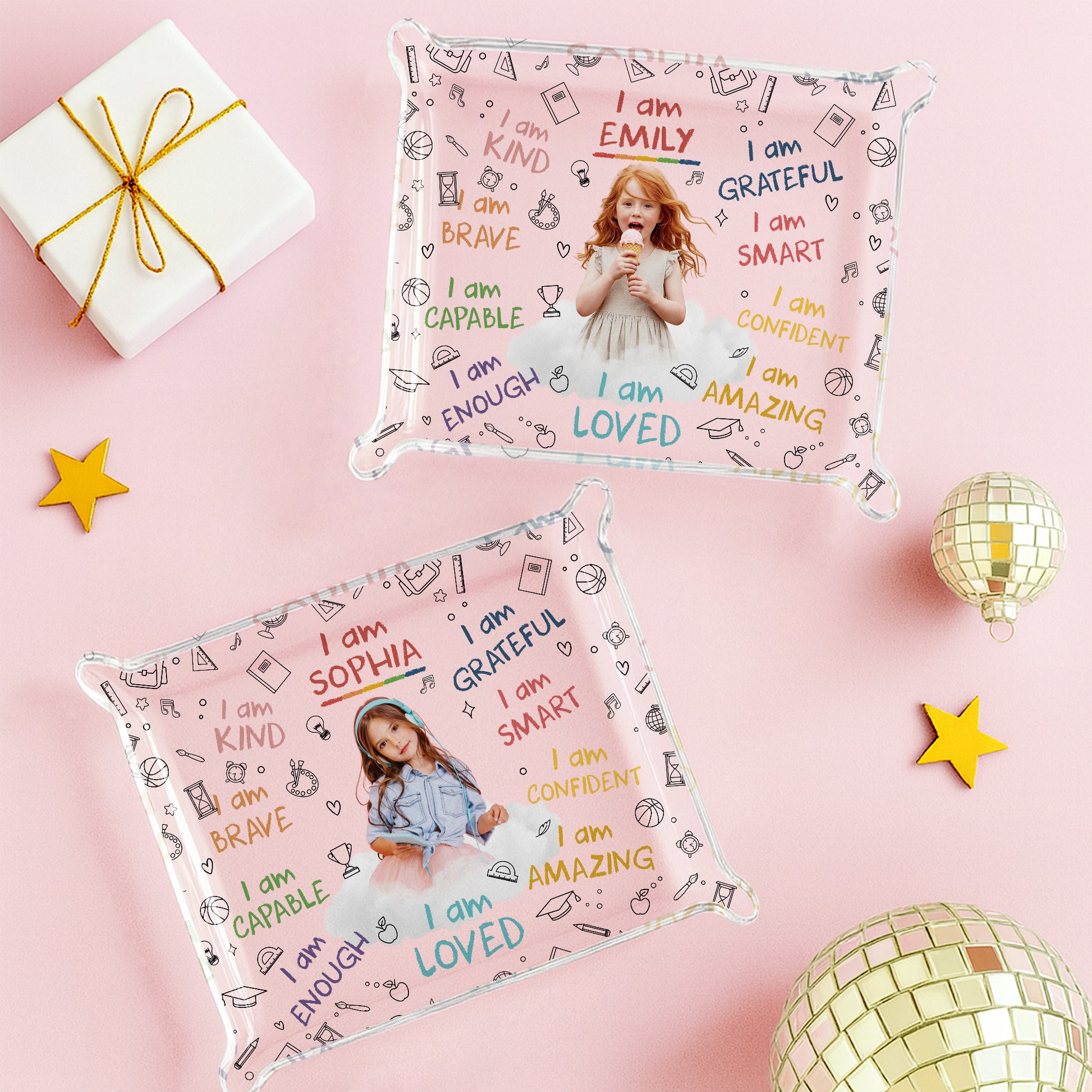 I Am Kind, Grateful, Smart, Confident, Brave, Loved Affirmations,Custom Rectangle Acrylic Tray,Gift for Young Girls