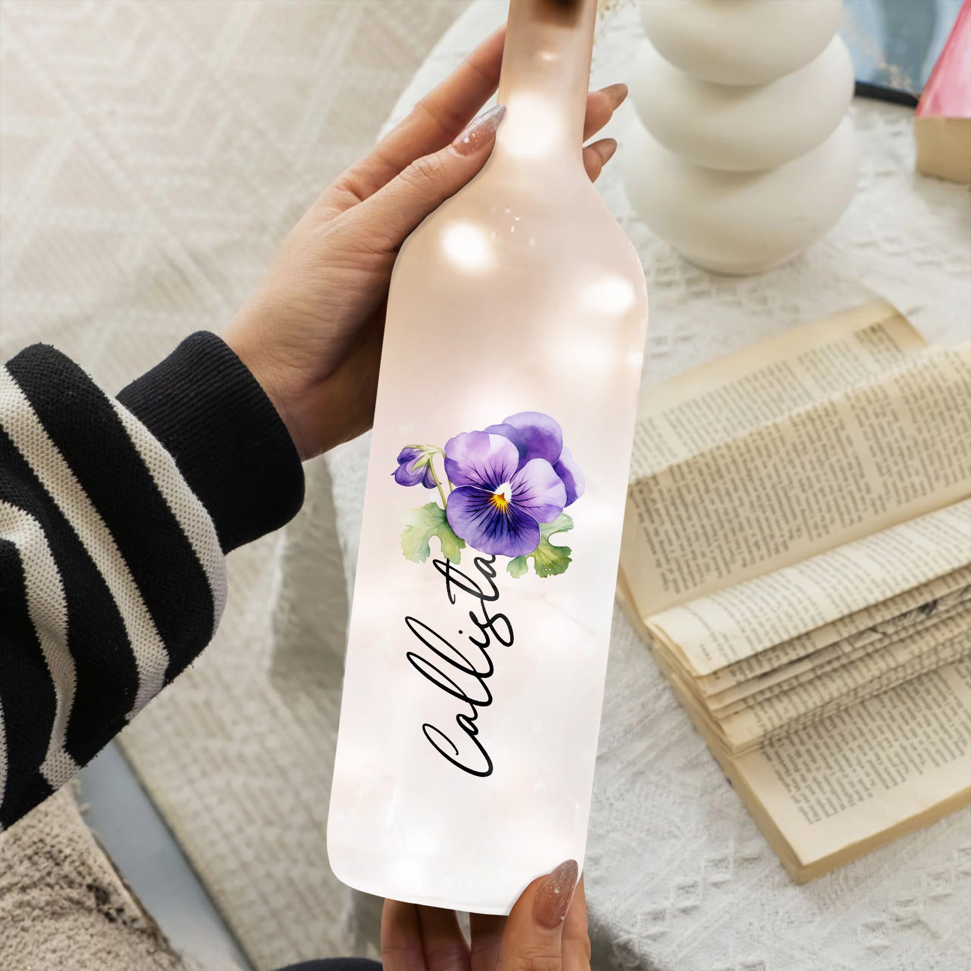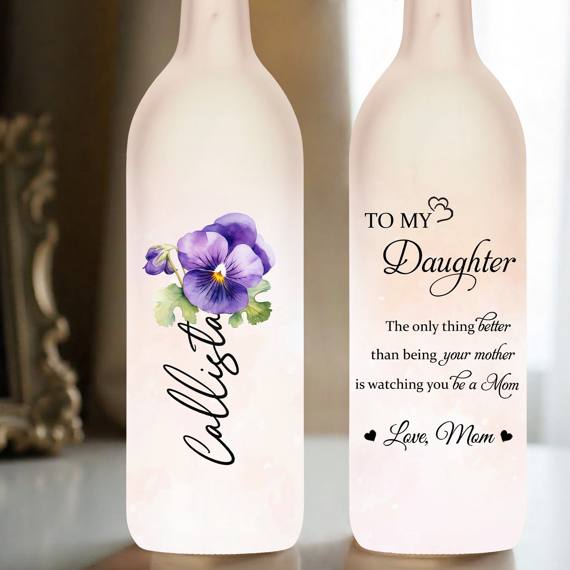 To My Daughter, Flowers And Love, Personalized Bottle Lamp, Gift For Daughters And Moms