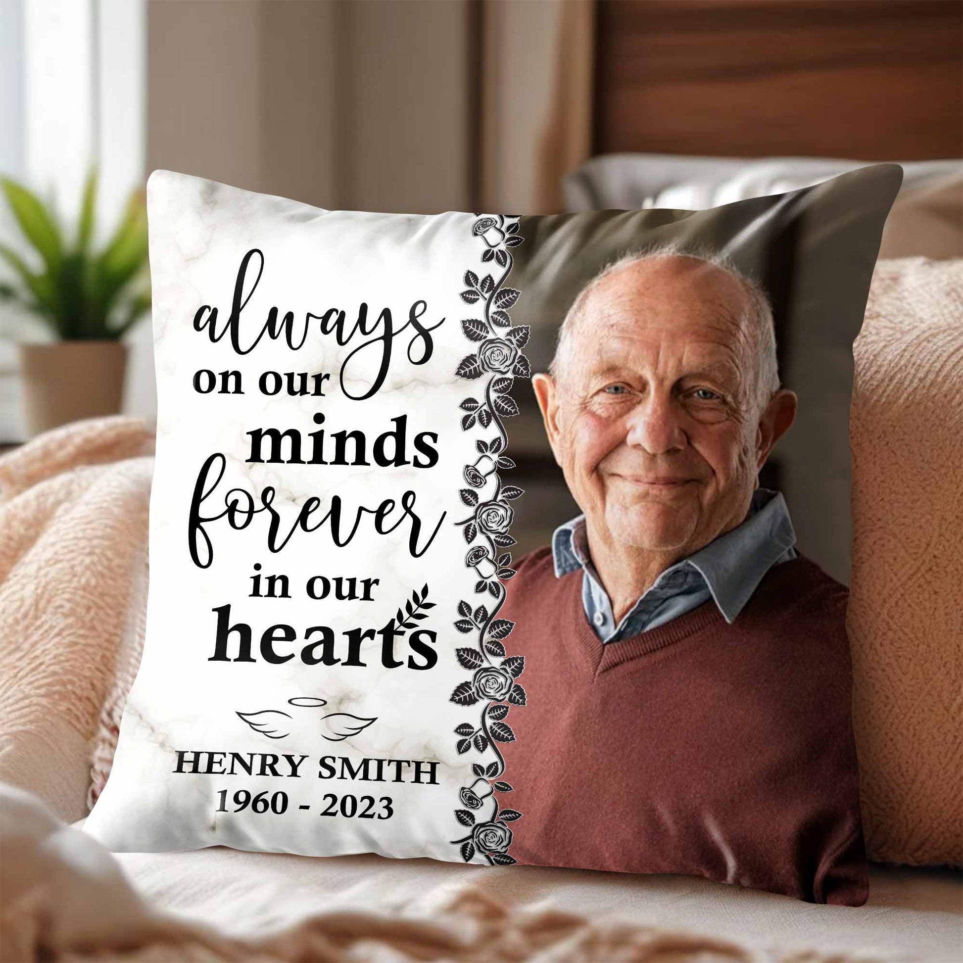 Always On Our Minds Forever In Our Hearts - Memorial Custom Pillow, Gift For Family and Loved Ones