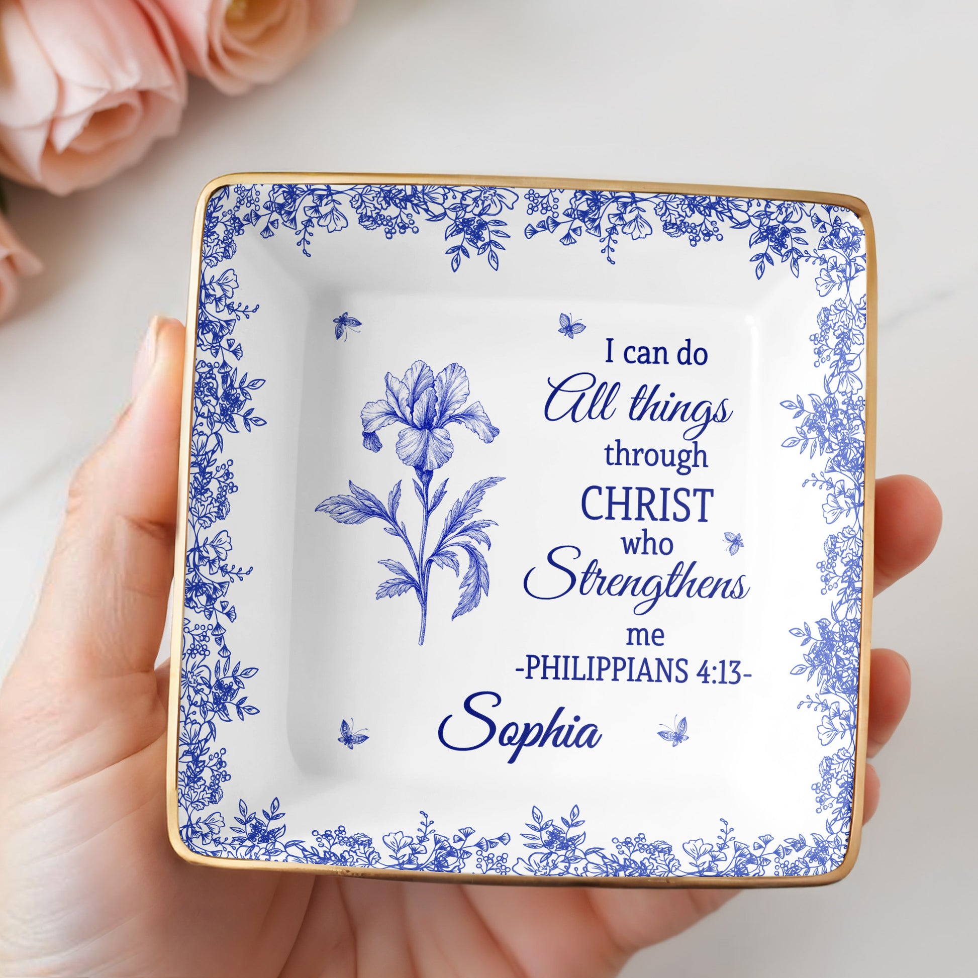 I Can Do All Things Through Christ, Floral Design, Personalized Ceramic Dish, Gift For Religious Family
