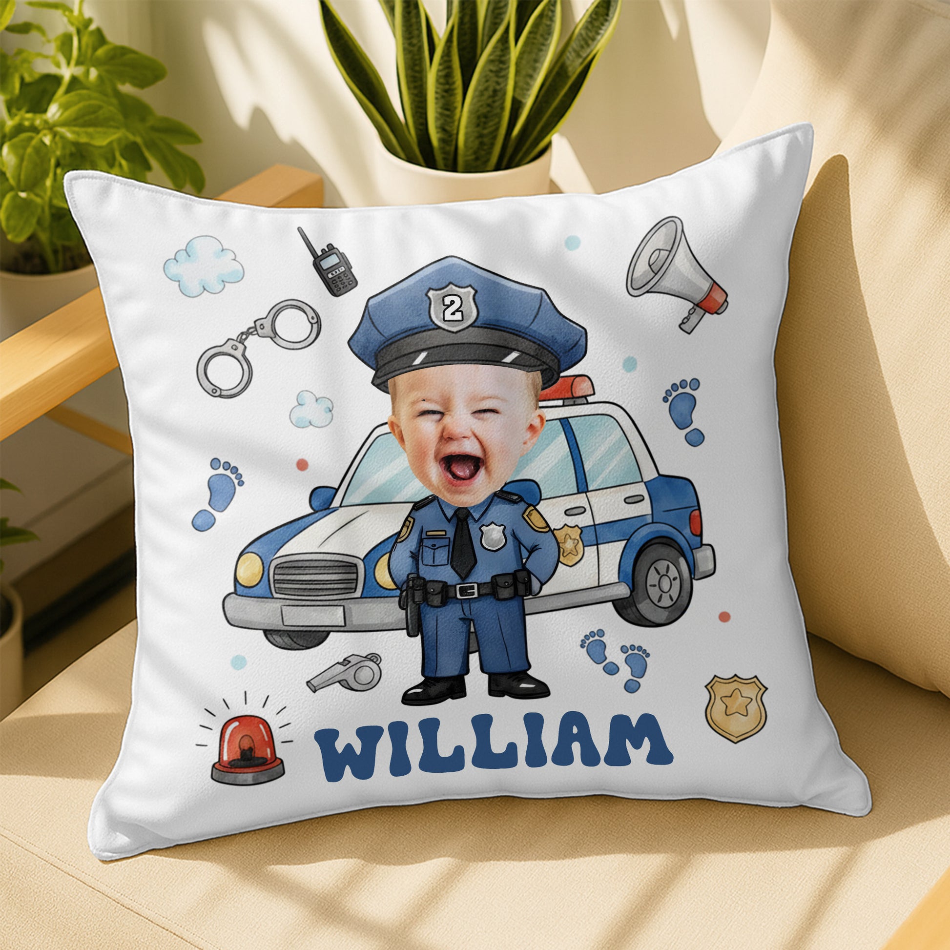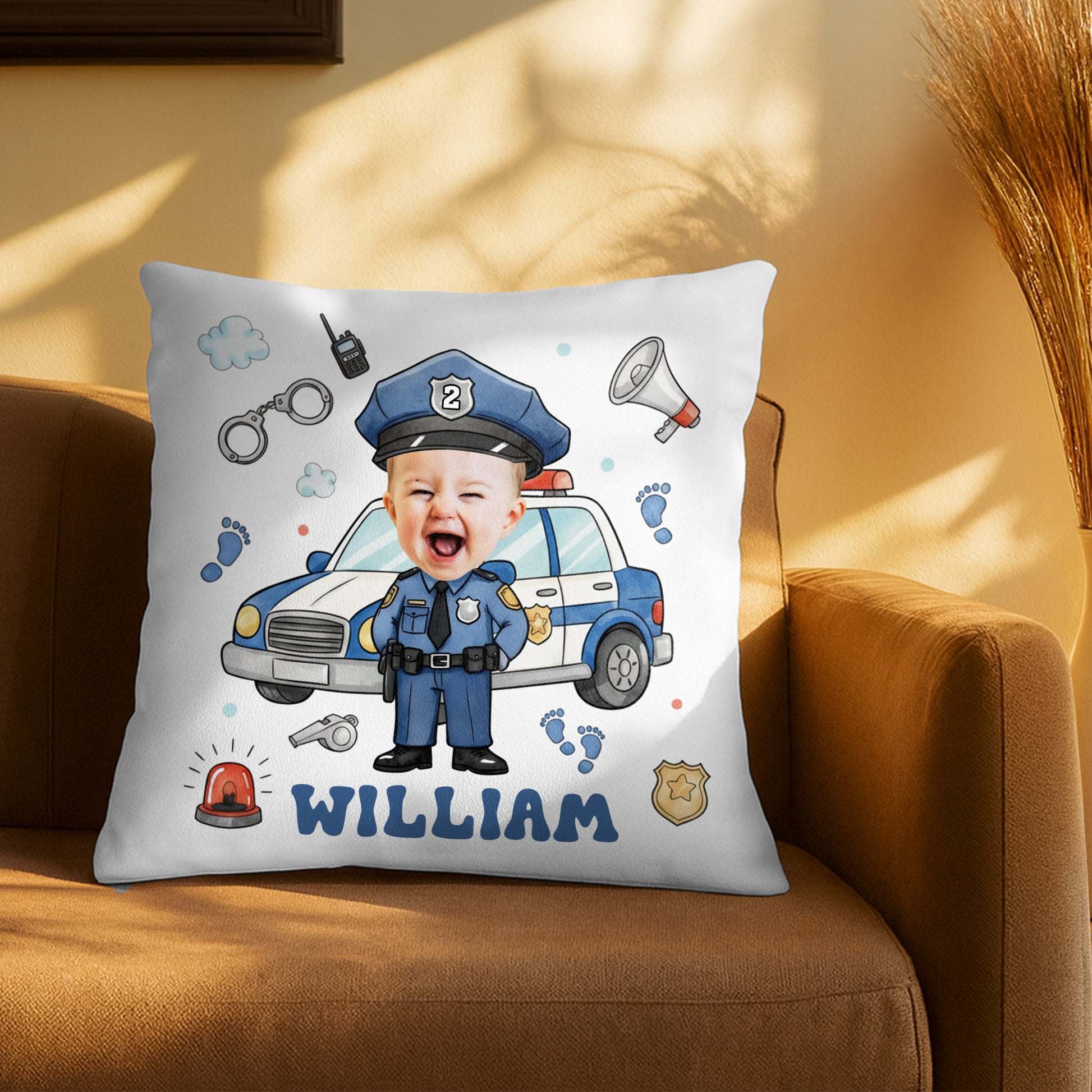 Message: Celebrate Your Little Hero With This Adorable Customizable Police Officer Pillow!