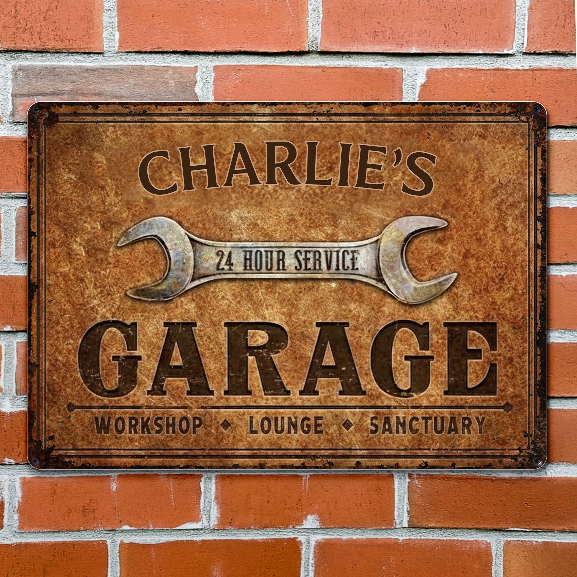 24 Hour Service Garage Lounge and Sanctuary,Personalized Metal Sign,Gift For Garage Owners and Car Enthusiasts