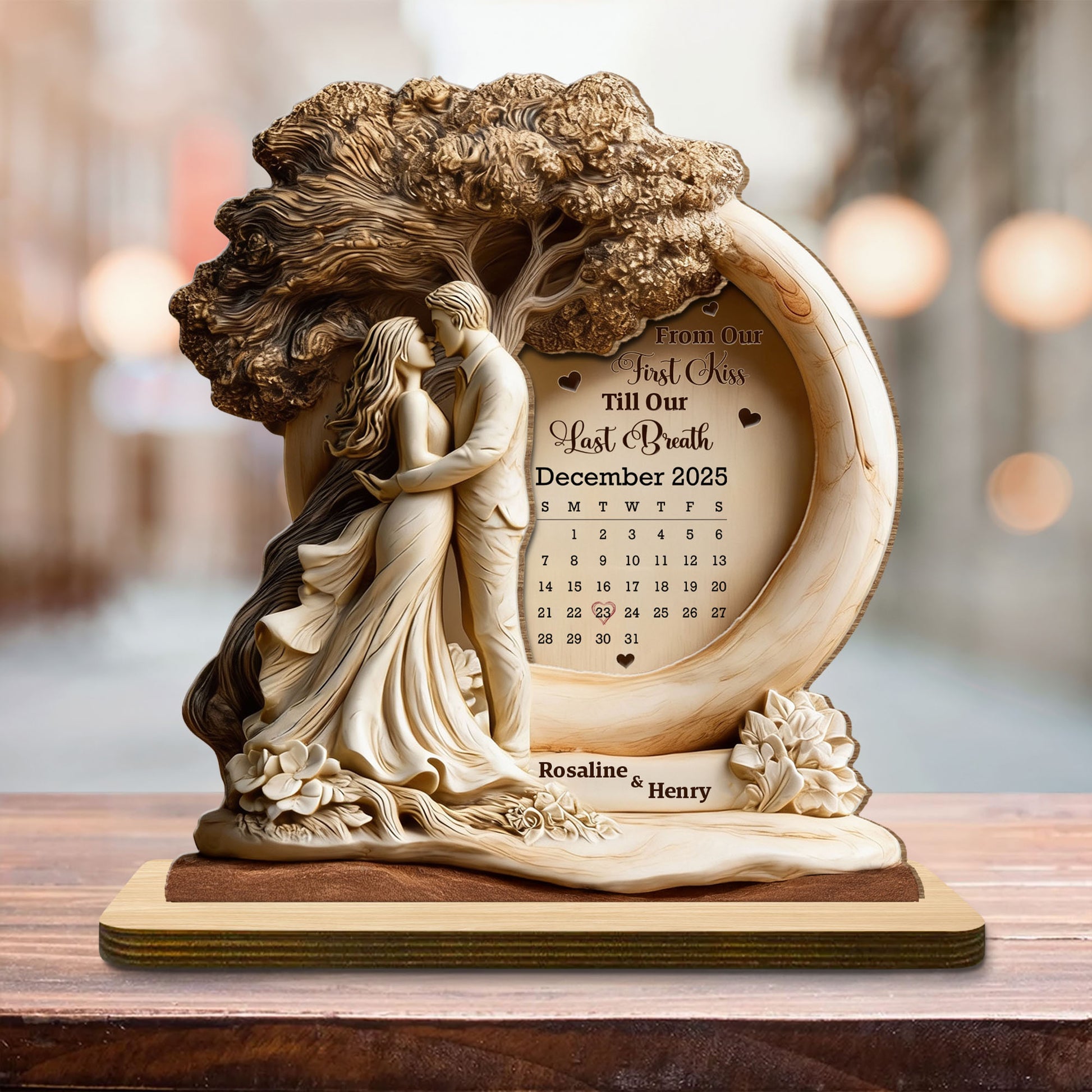 From Our First Kiss Till Our Last Breath, Couple Under Tree - Personalized Custom 2-Layer Wood Plaque With Flat Base - CPL992_WPLA