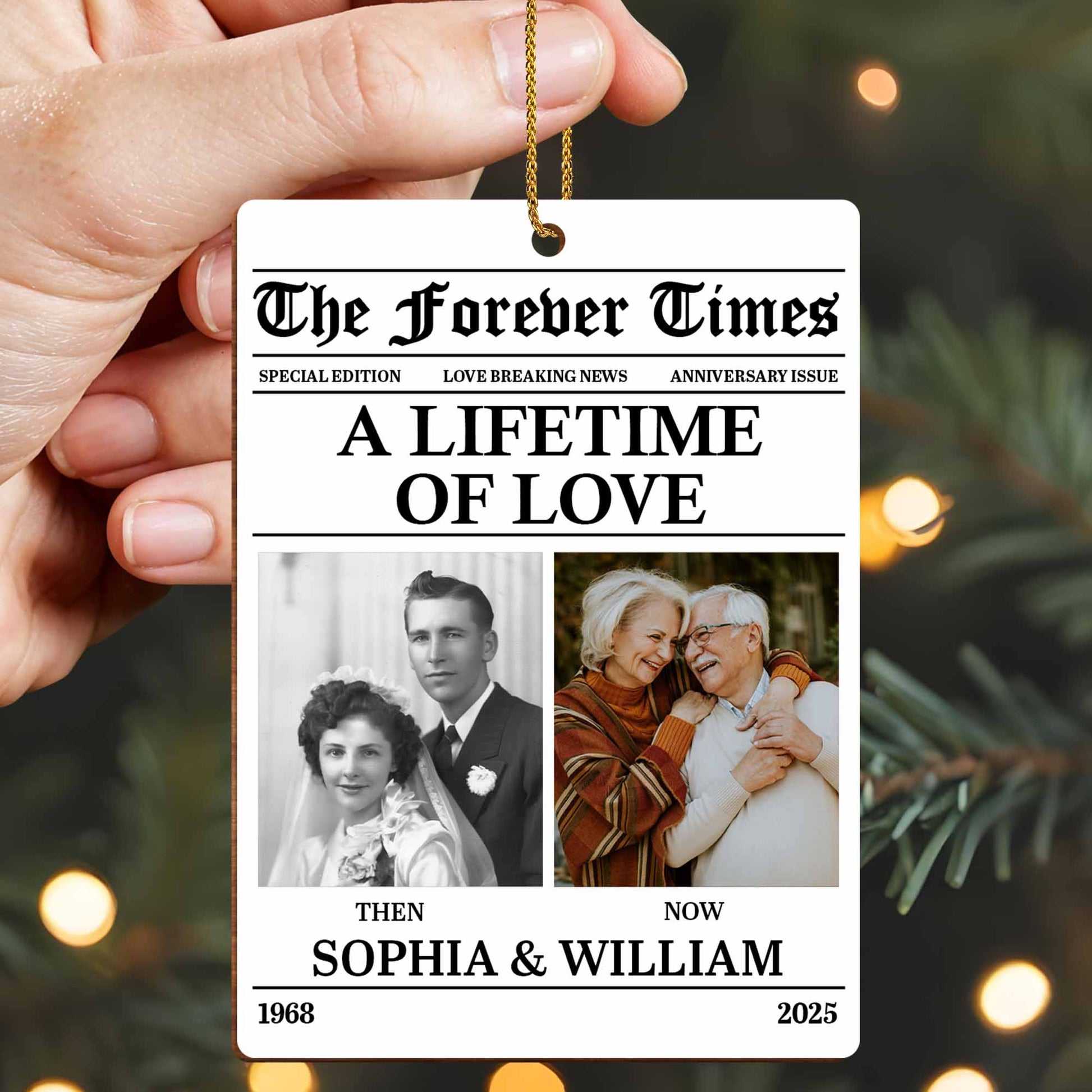 A Lifetime Of Love With Special Edition Newspaper,Custom Wood Ornament,Gift For Couples