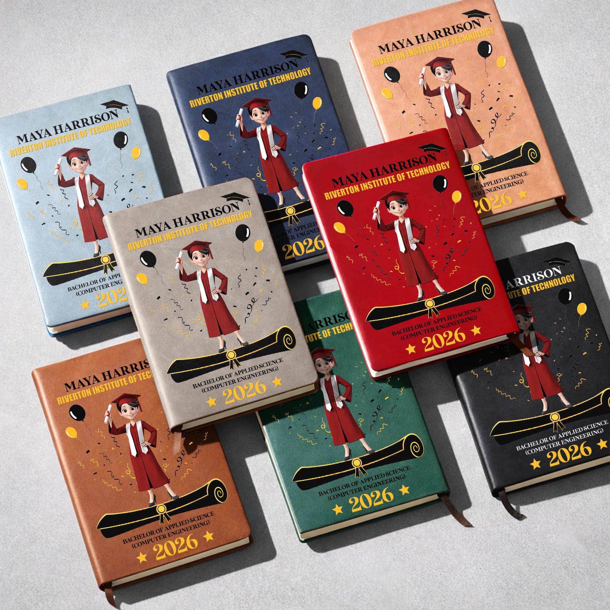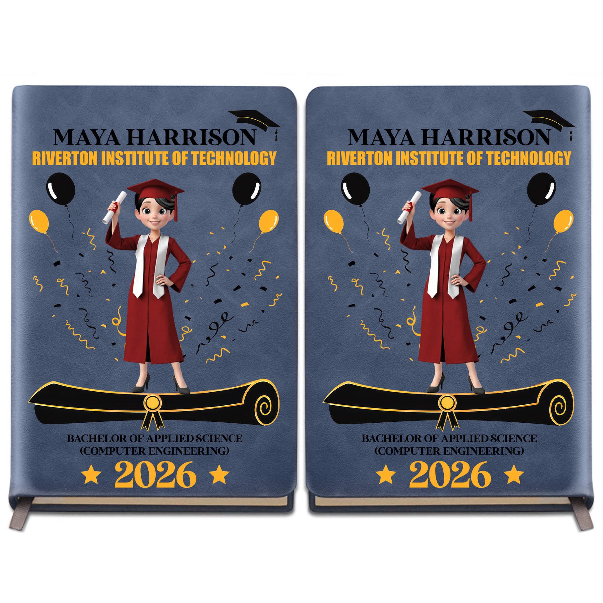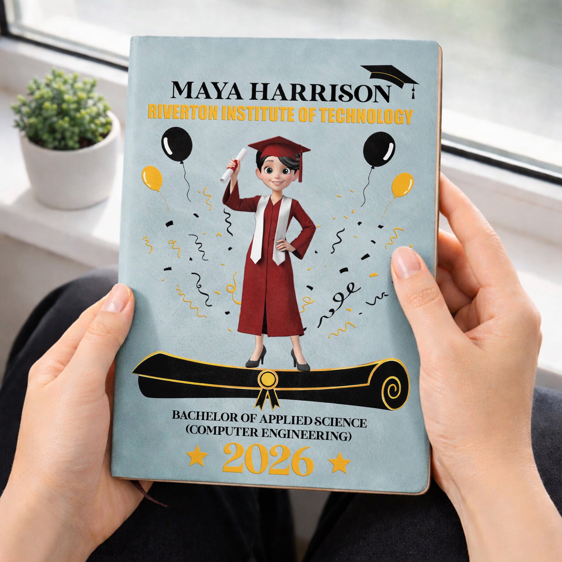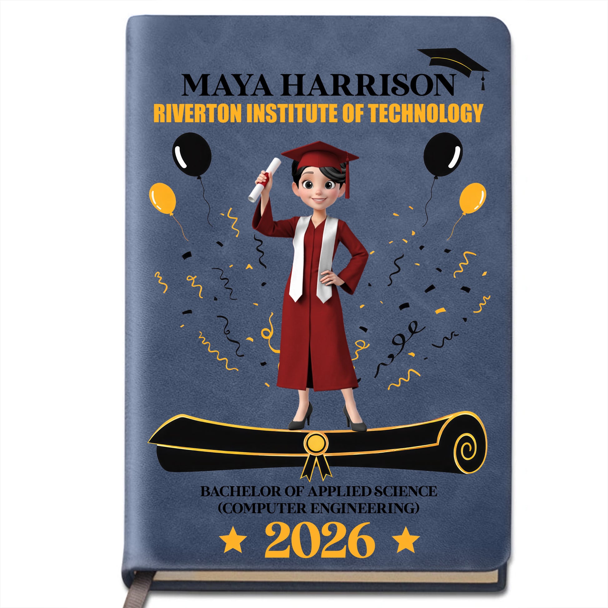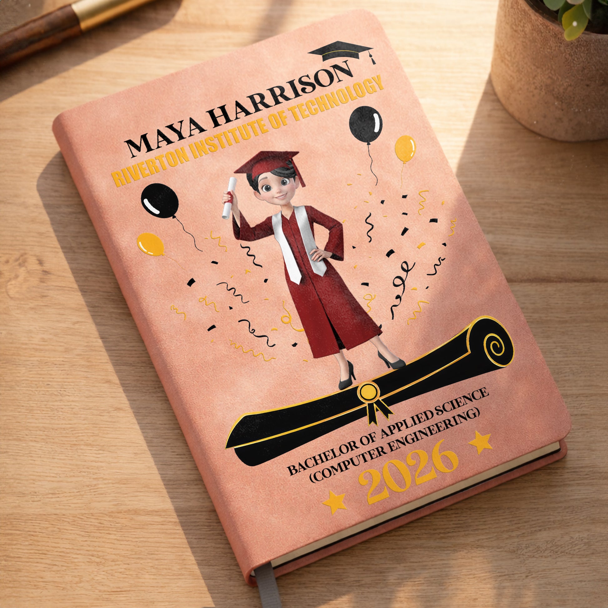 A Proud Graduate Standing Tall With Graduation Cap And Diploma - Personalized Leather Journal - GRAD354_LEJO