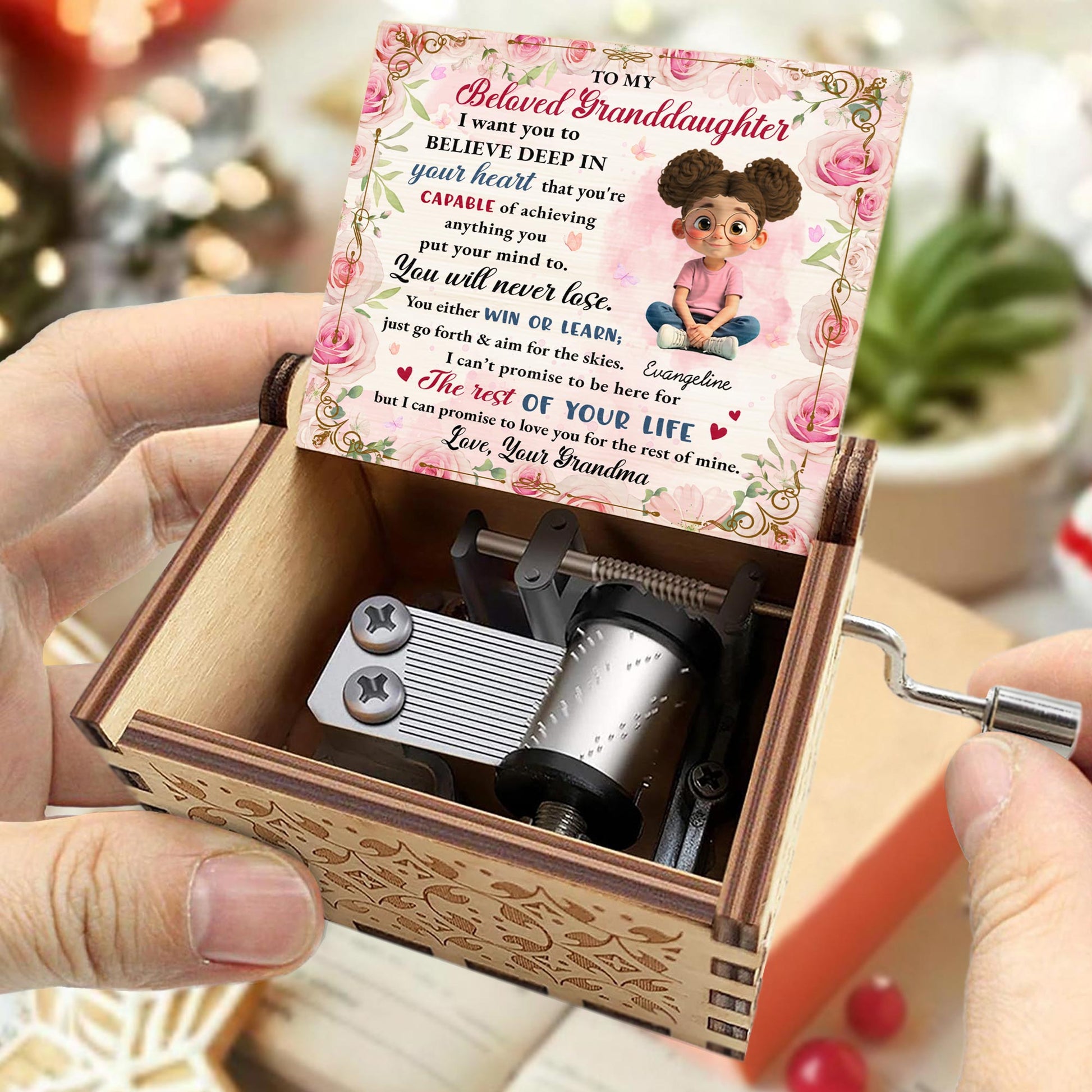 Beloved Granddaughter, Believe In Yourself, Flowers, Custom Music Box, Gift For Granddaughters