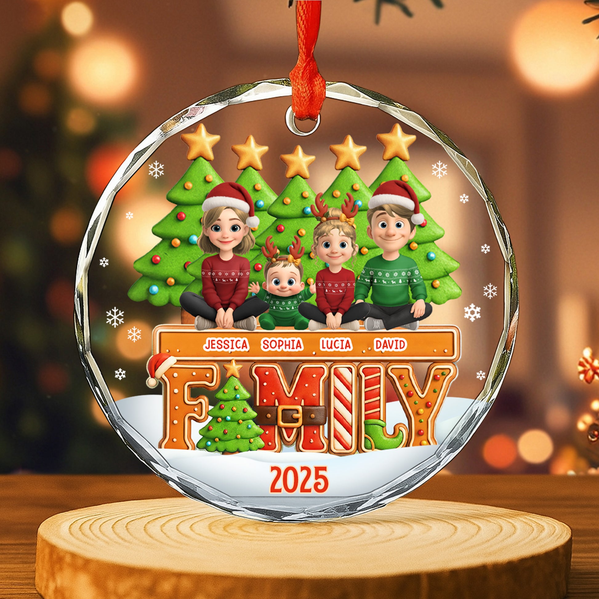 Celebrate Your Family This Christmas, Personalized Custom Circle Glass Ornament, Gift For Family