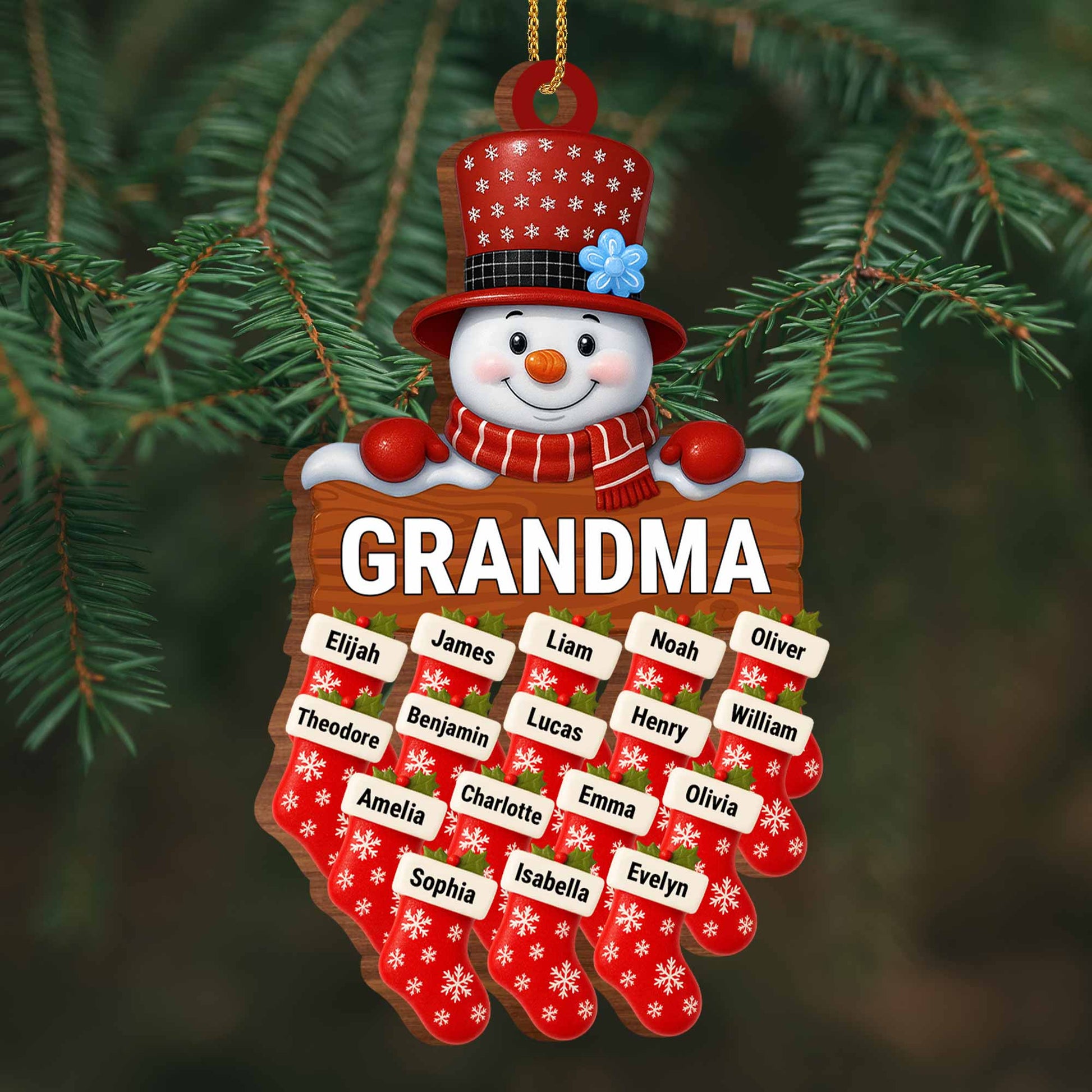 Charming Snowman With Customizable Names,Custom Wood Ornament,Gift For Family
