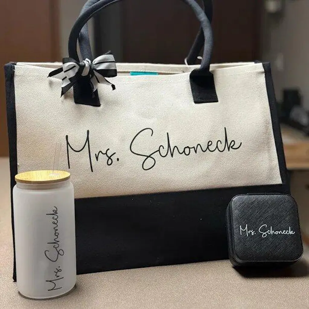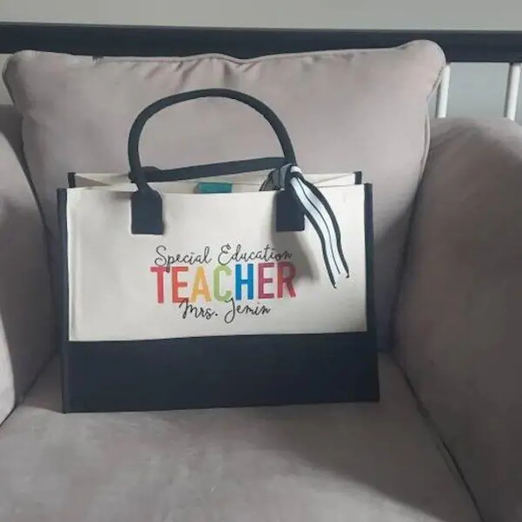 Customizable Tote With Letter, Stethoscope, Heart, And Suitcase, Personalized Canvas Tote Bag, Gift For Teachers and Women
