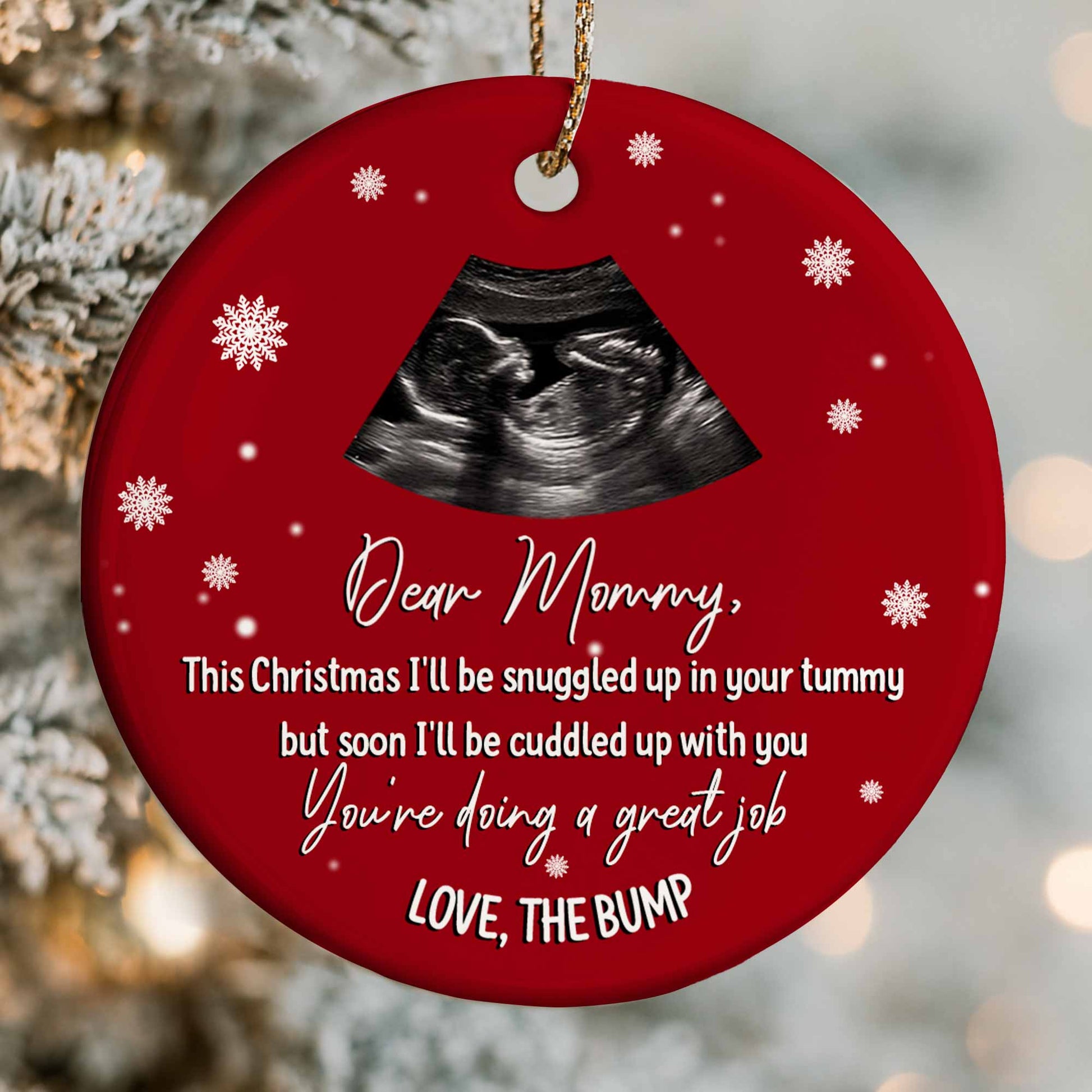 Dear Mommy Love The Bump With Ultrasound Image, Custom Ceramic Ornament, Gift For Expecting Mothers