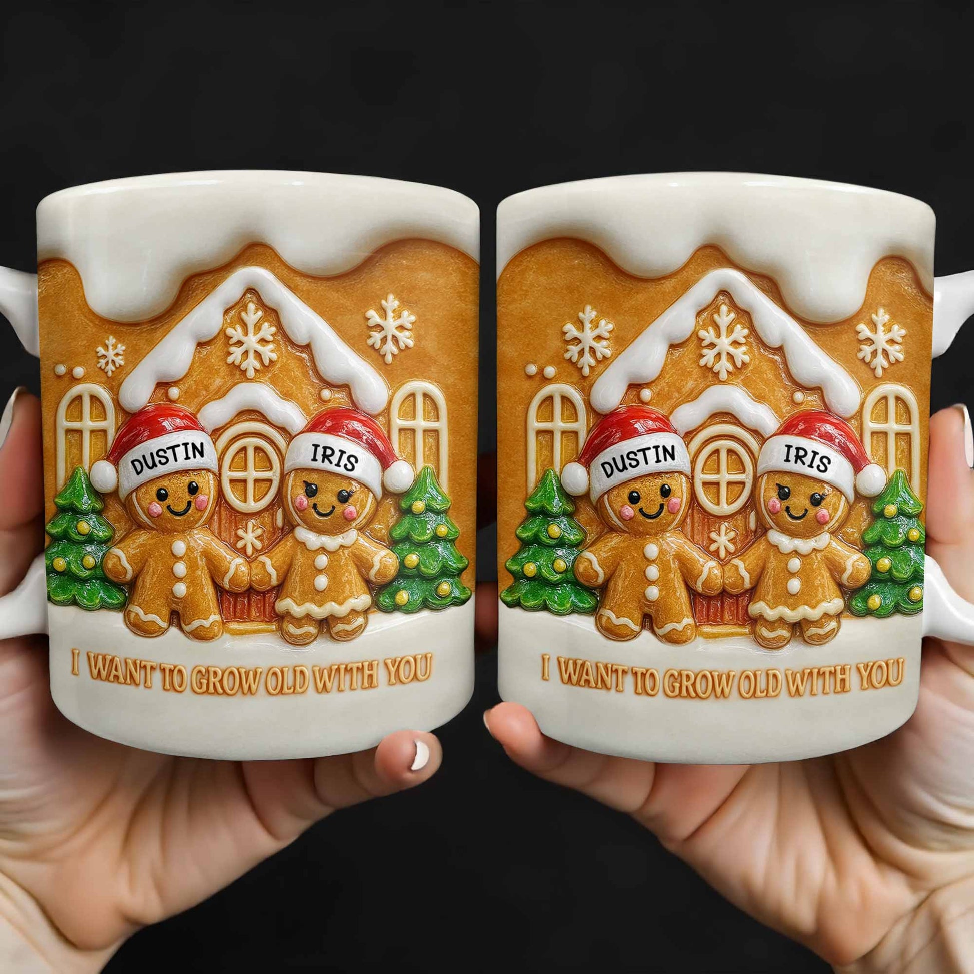 I Want To Grow Old With You Gingerbread Couple, Personalized Custom Coffee Mug, Gift for Couples