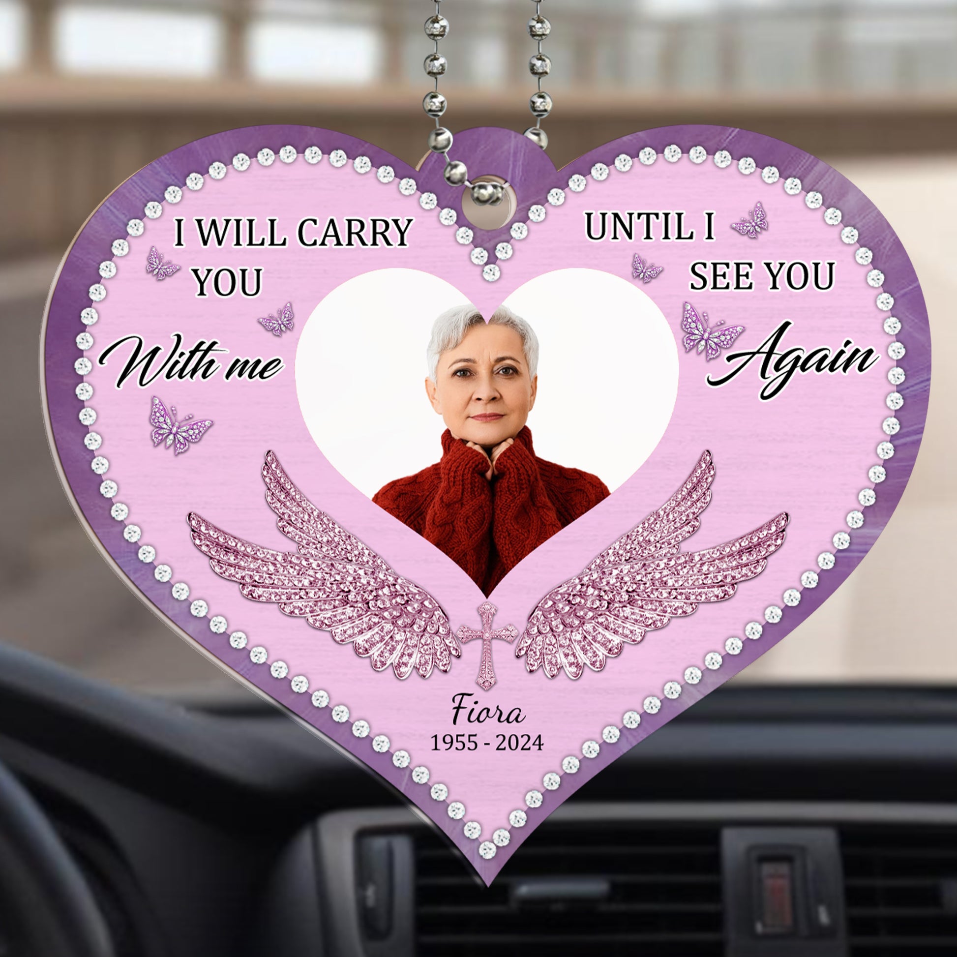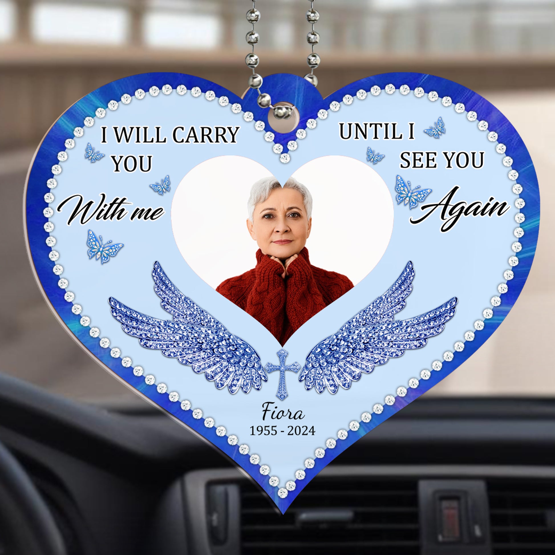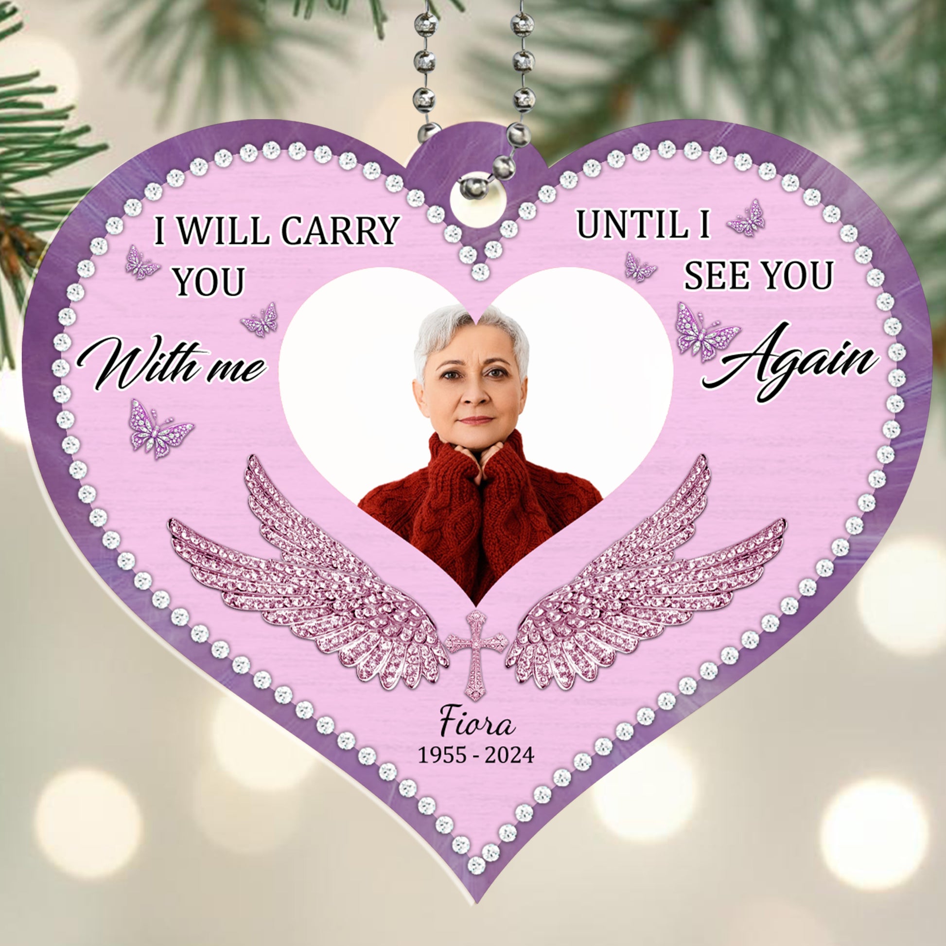 I Will Carry You With Me Until I See You Again - Personalized Custom Acrylic Ornament, Car Ornament - Gift For Family and Loved Ones