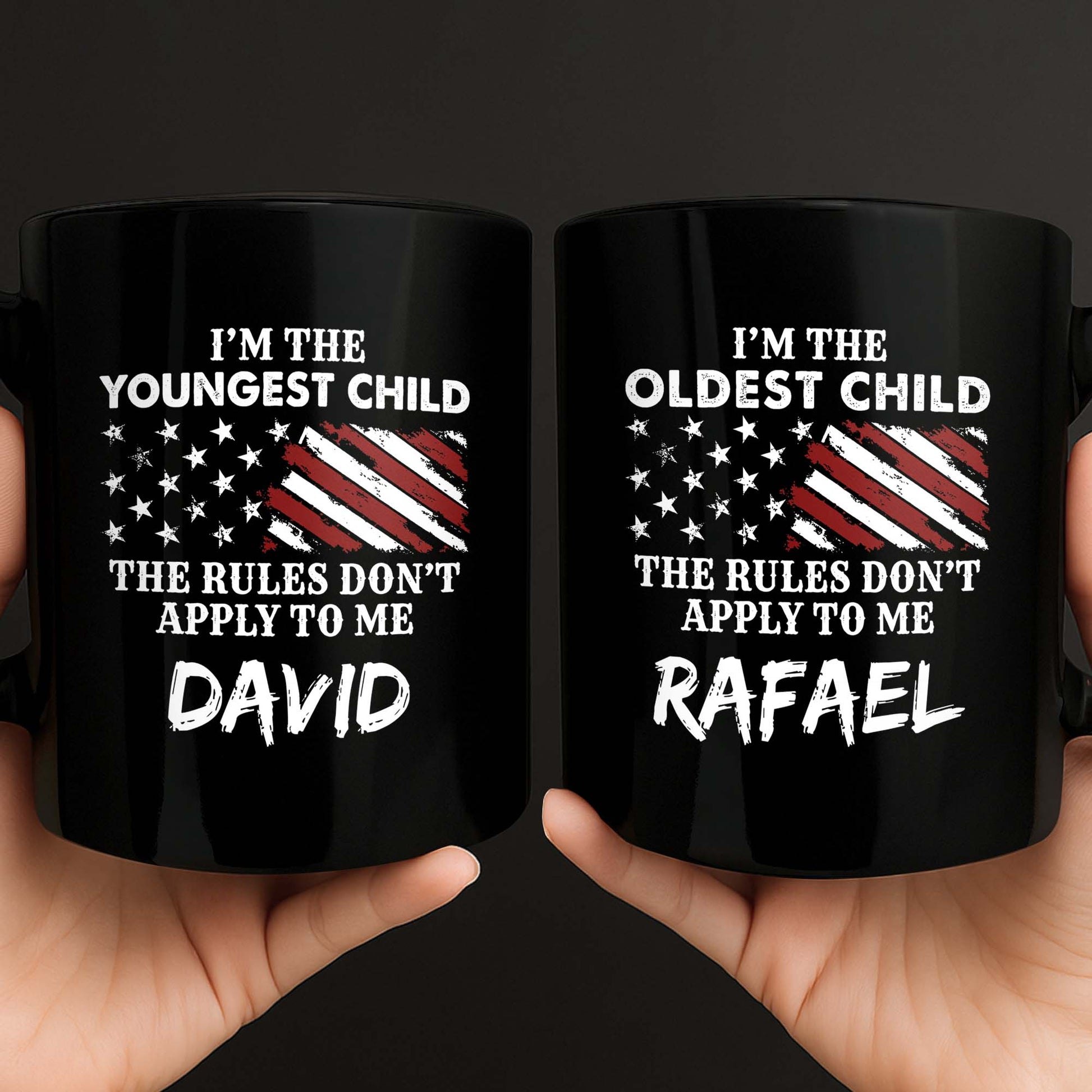 I'm The Youngest Child The Rules Don't Apply To Me Flag Stars,Custom Black Mug,Gift For Youngest Siblings