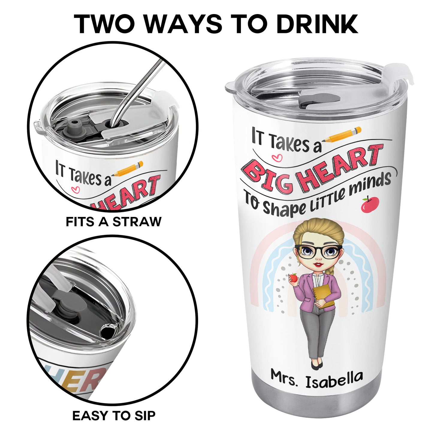 It Takes a Big Heart To Shape Little Minds, Custom Stainless Steel Tumbler, Gift For Teachers and Educators