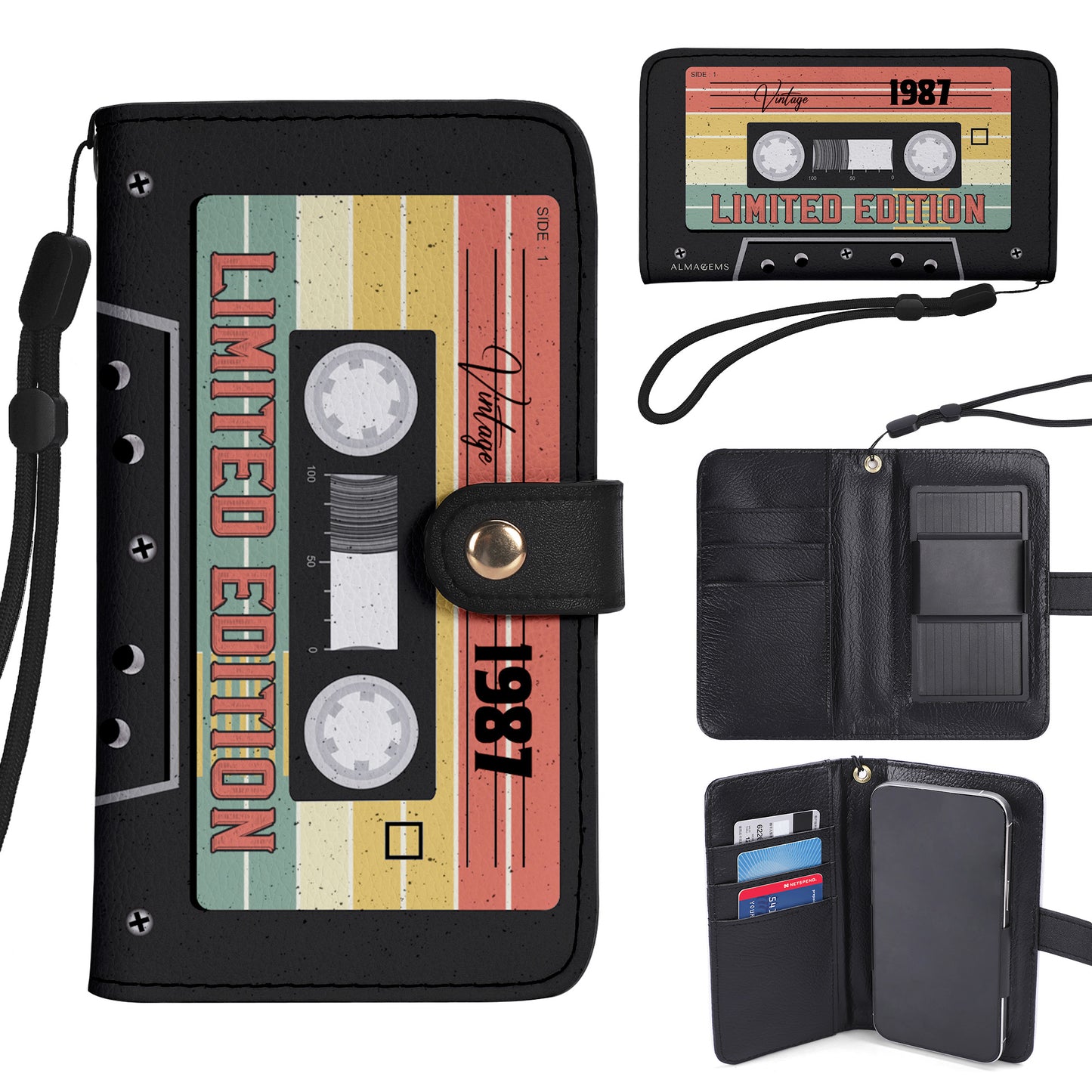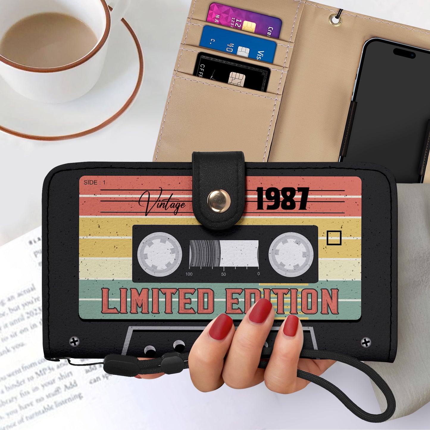 Limited Edition - Vintage Personalized Custom Phone Wallet, All Over Print Leather Style - Gift For Mom and Music Lovers