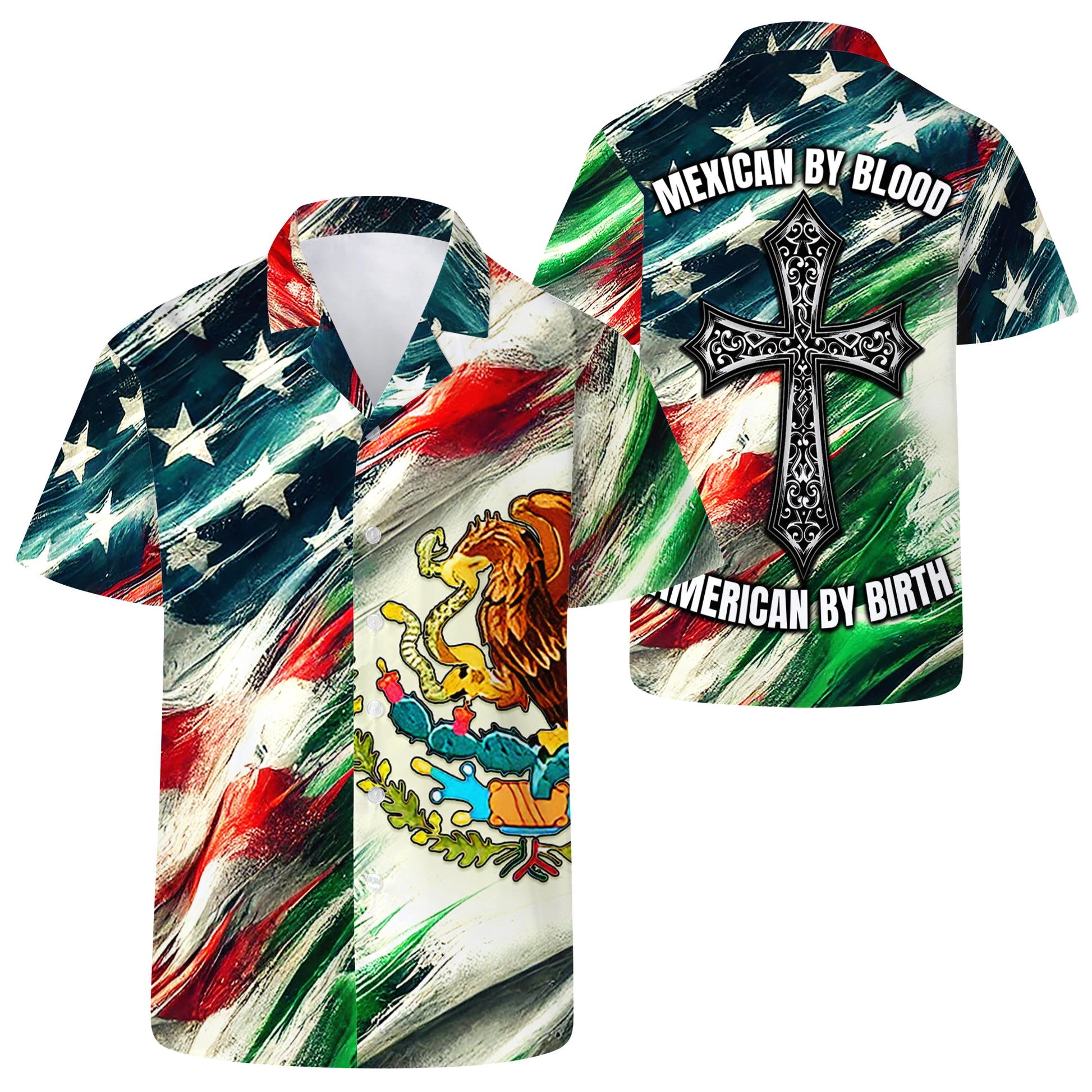 Mexican by Blood, American by Birth - Patriotic Personalized Custom Hawaiian Shirt, All Over Print - Gift for Dad and Friend Lovers