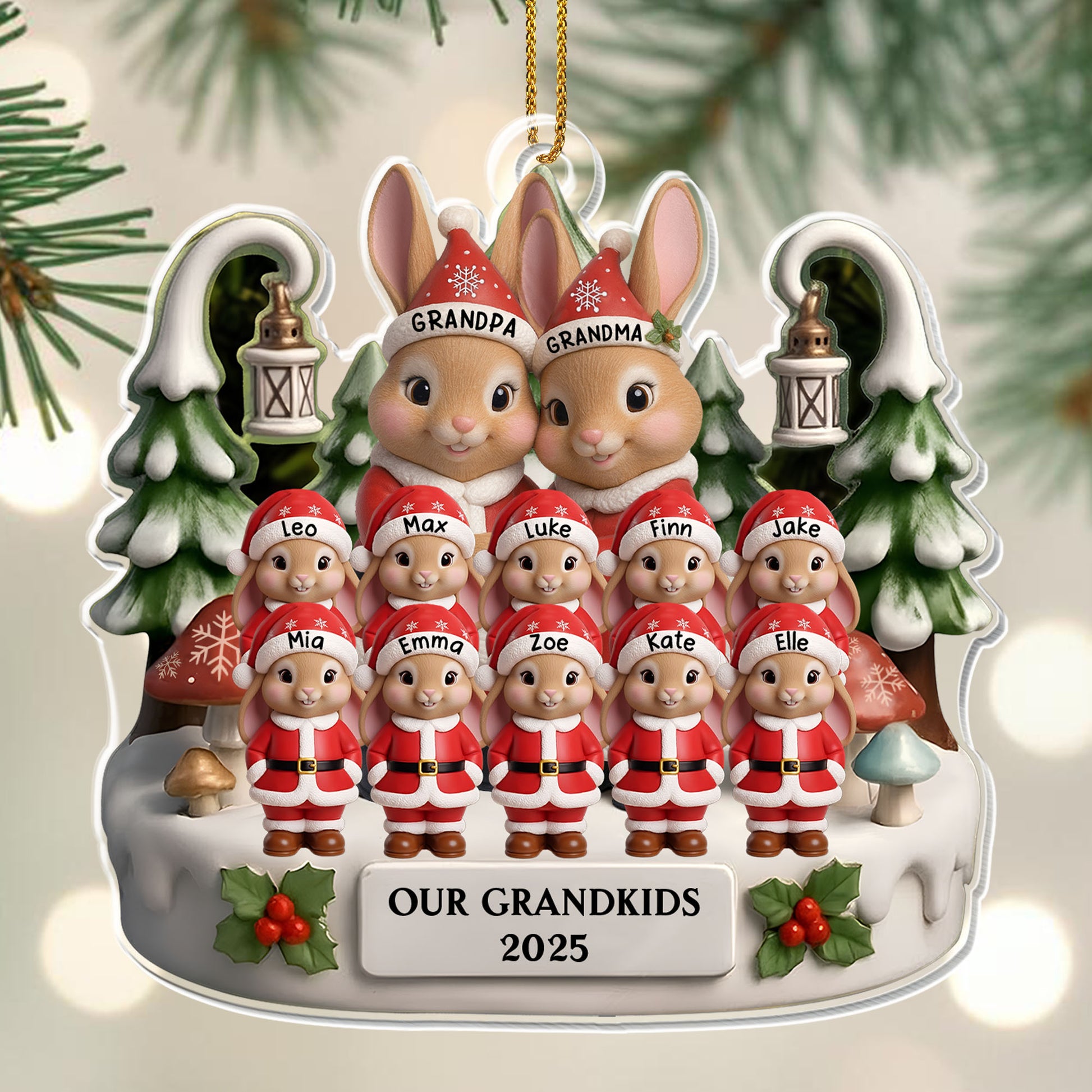 Our Grandkids With Bunnies And Elves, Personalized Custom Acrylic Ornament, Gift For Grandparents