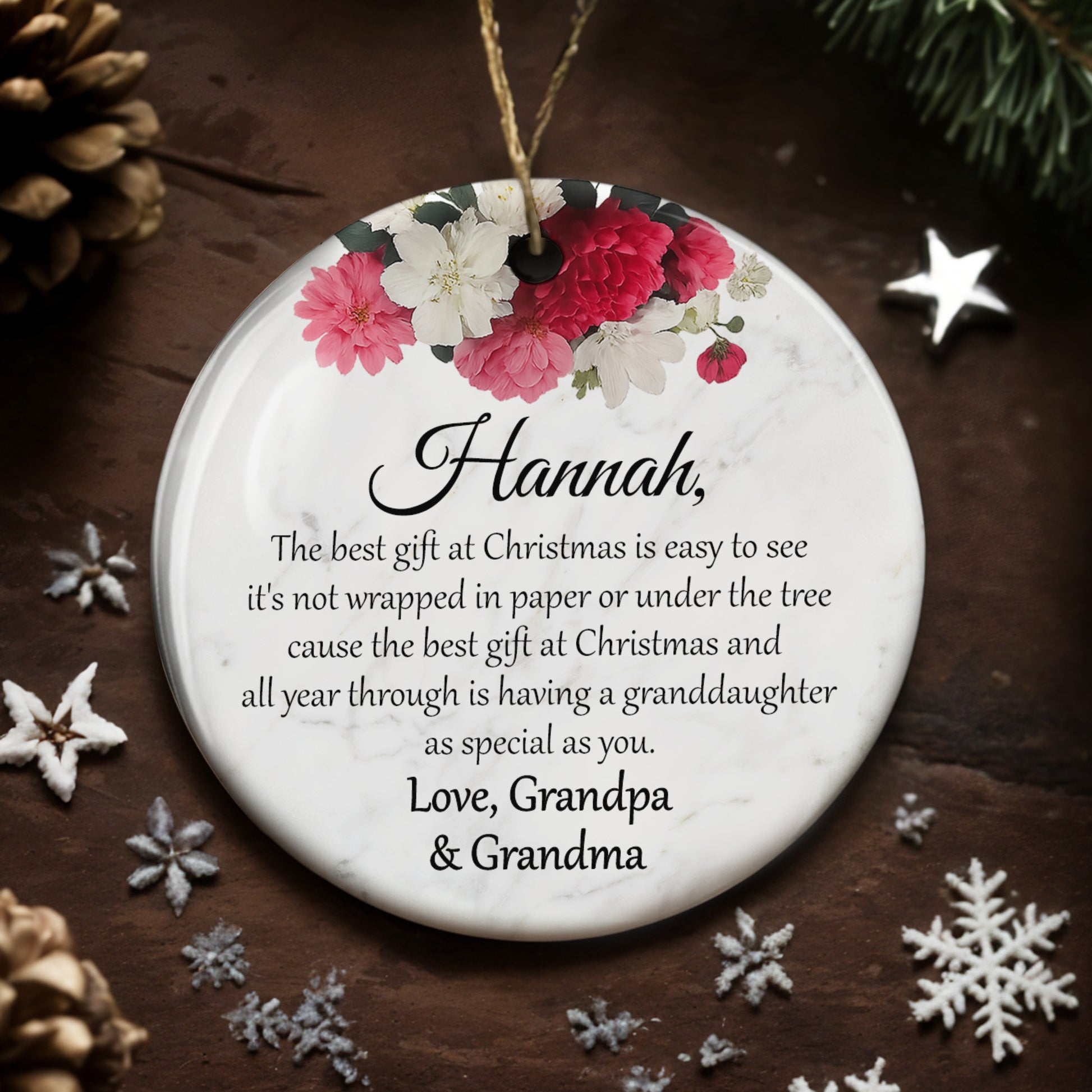 The Best Gift At Christmas, Personalized Custom Ceramic Ornament, Gift For Granddaughter