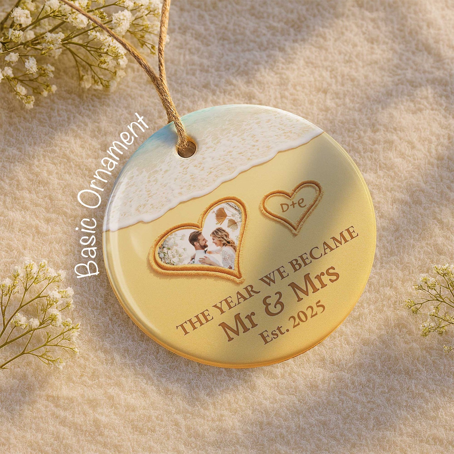 The Year We Became Mr & Mrs, Hearts, Beach, Personalized Ornament, Gift For Couples