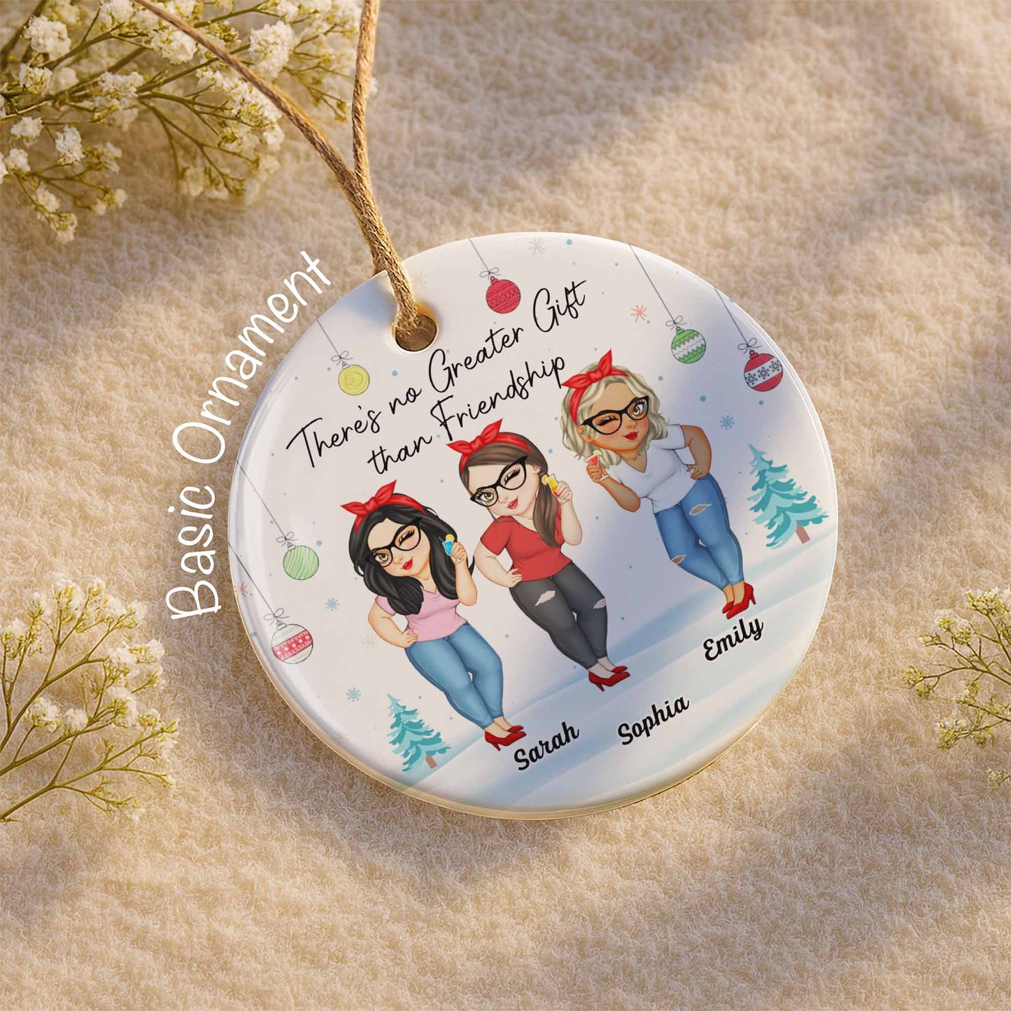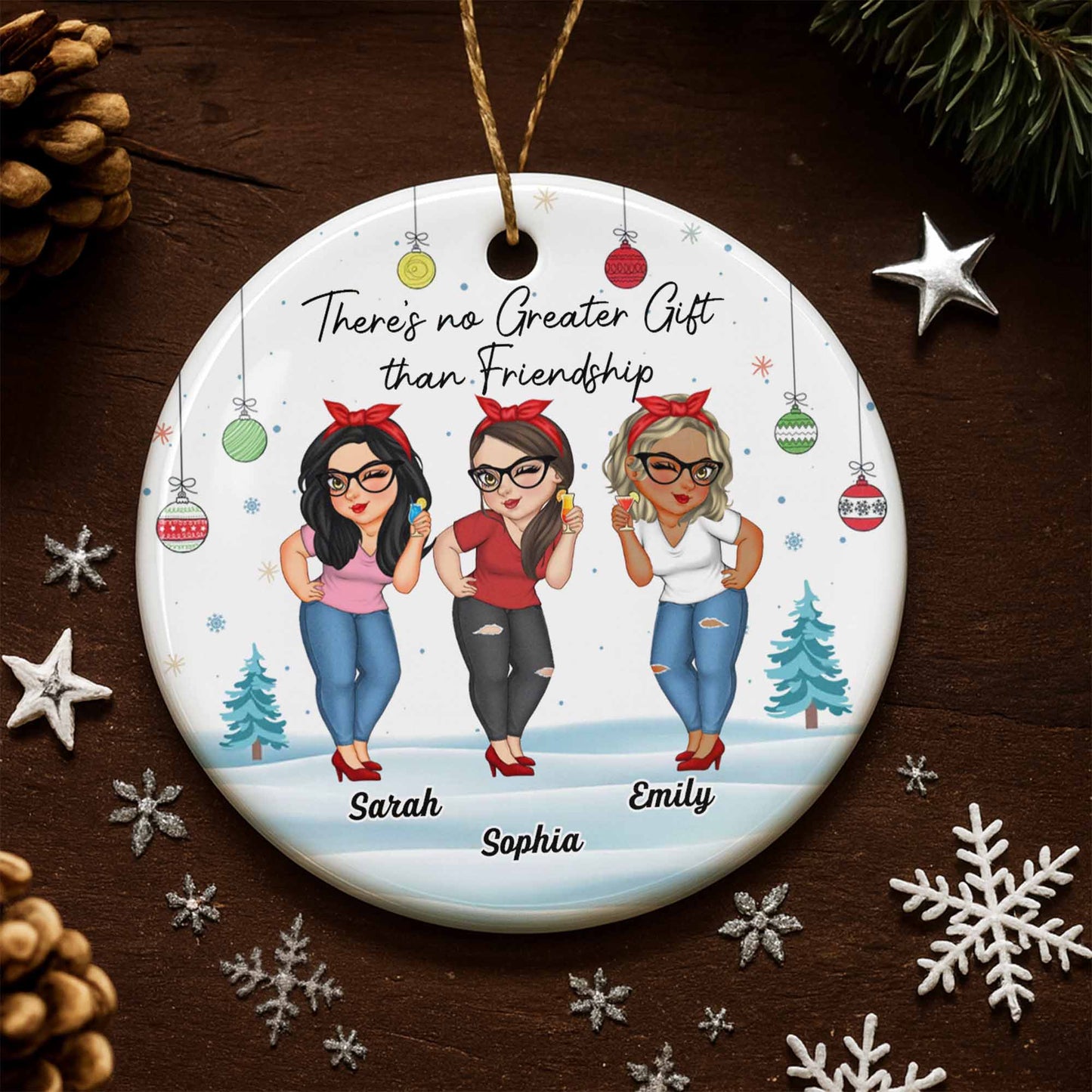 There's No Greater Gift Than Friendship, Friends With Bows And Glasses - Personalized Custom Ceramic Ornament With Round Shape - BST261_RCE