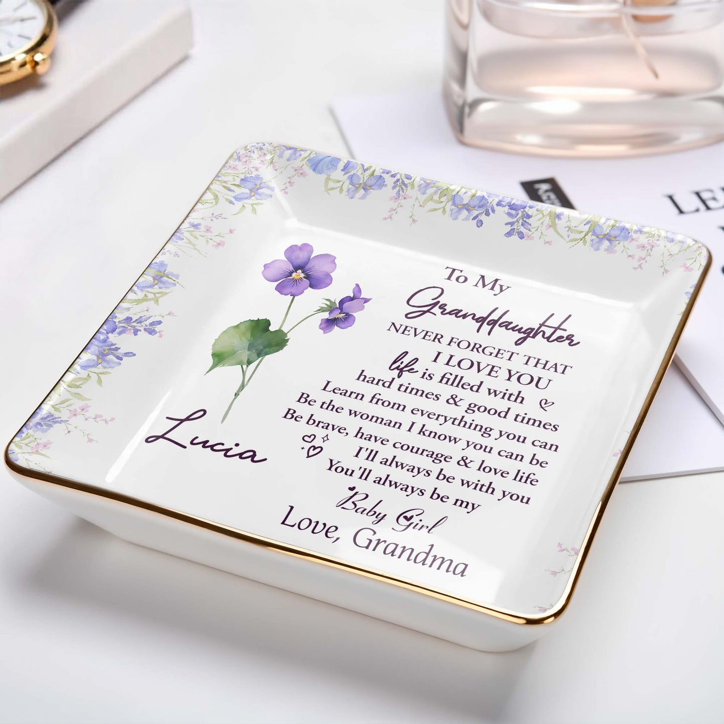 To My Granddaughter, Never Forget That I Love You, Flowers, Personalized Ceramic Dish, Gift For Granddaughters