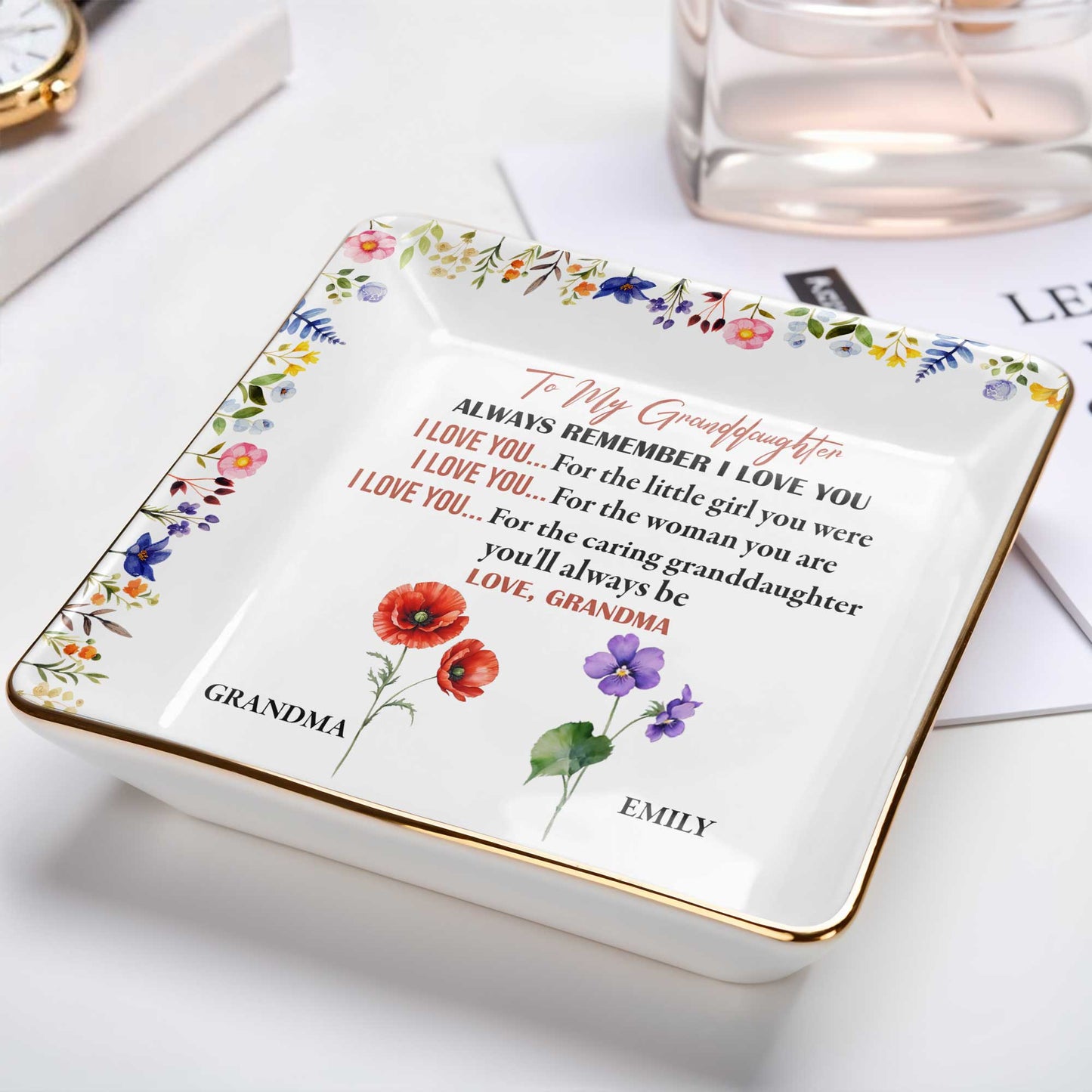 To My Granddaughter, Remember I Love You, Floral Design - Personalized Custom Jewelry Dish, Ceramic Dish, Square Shape - GDT403_SCRF