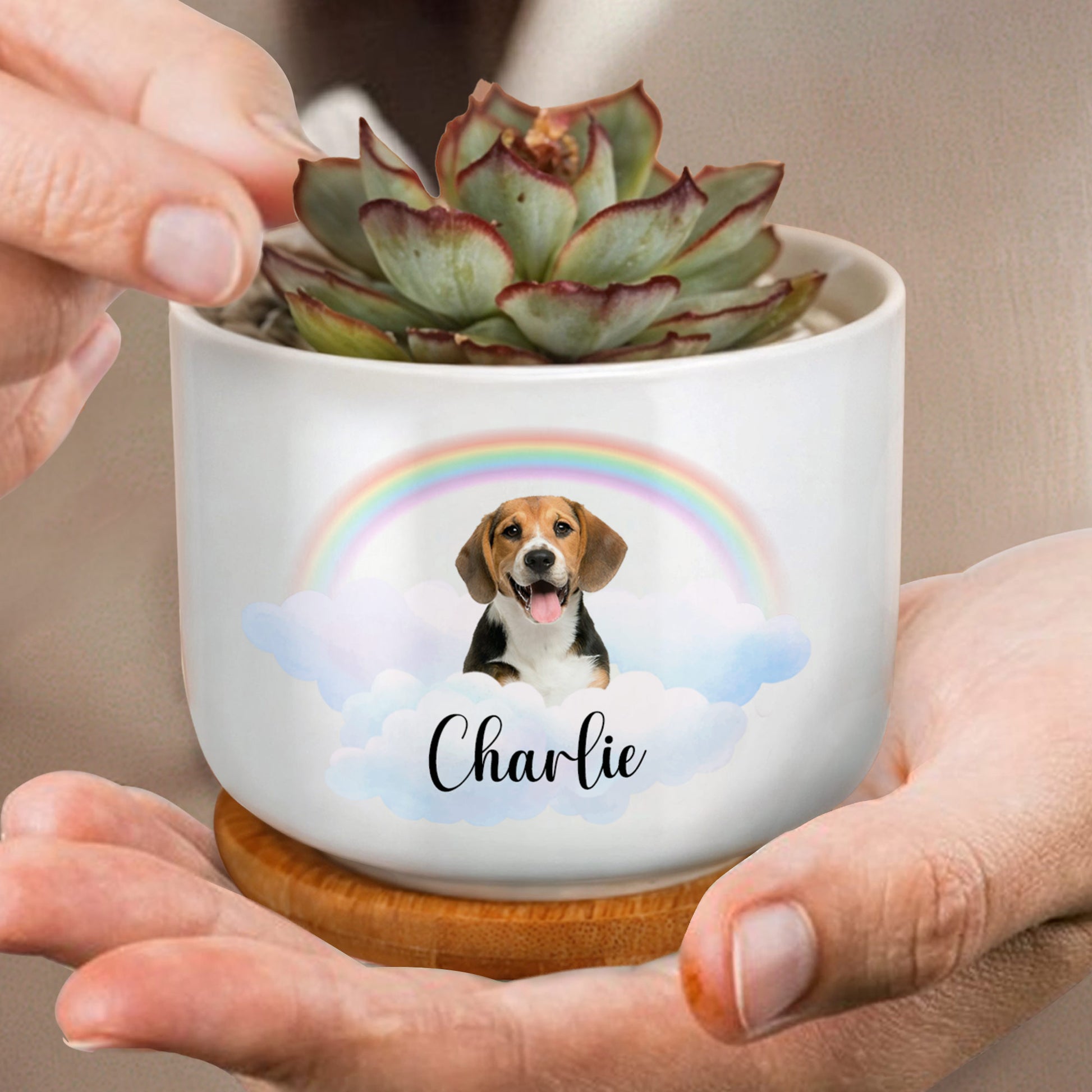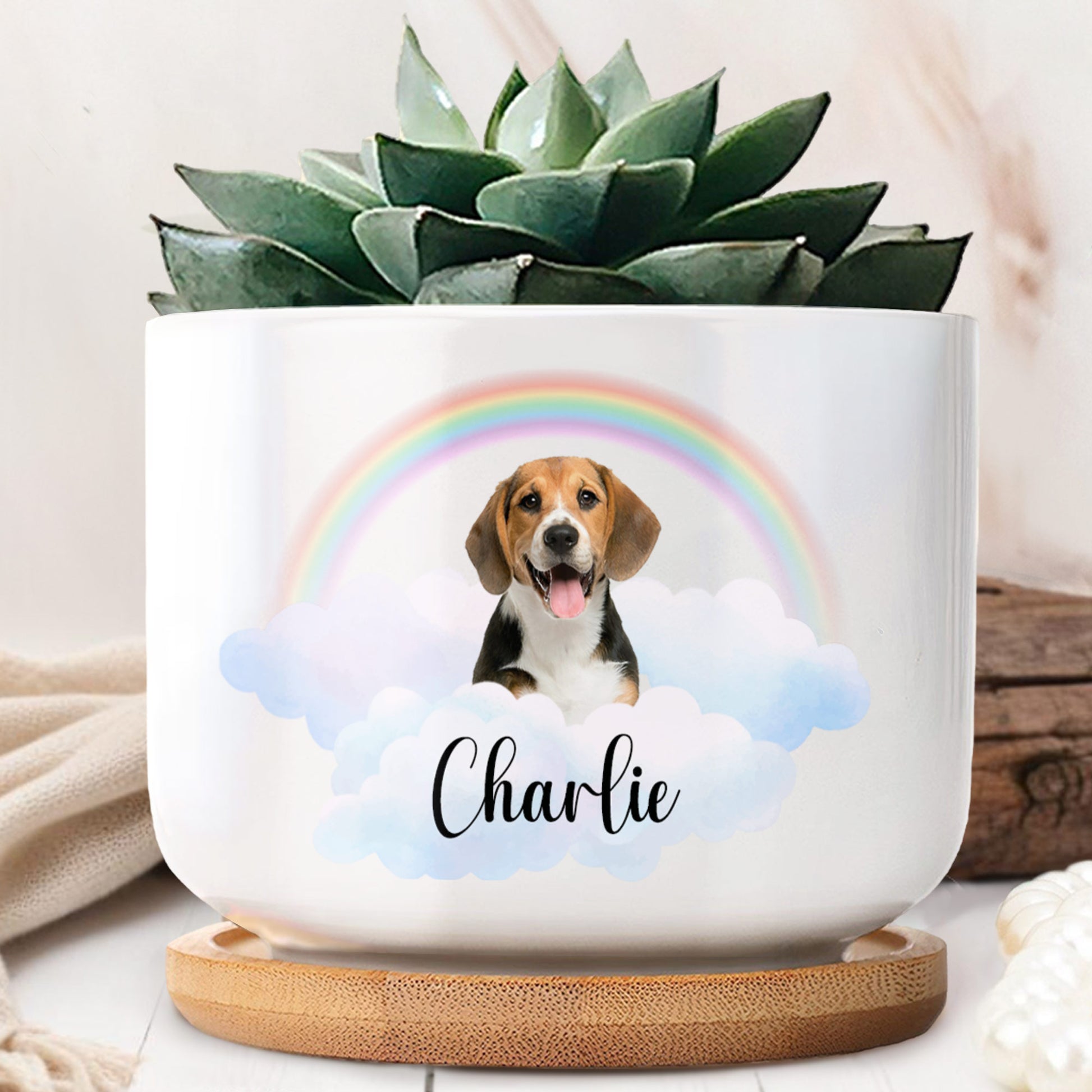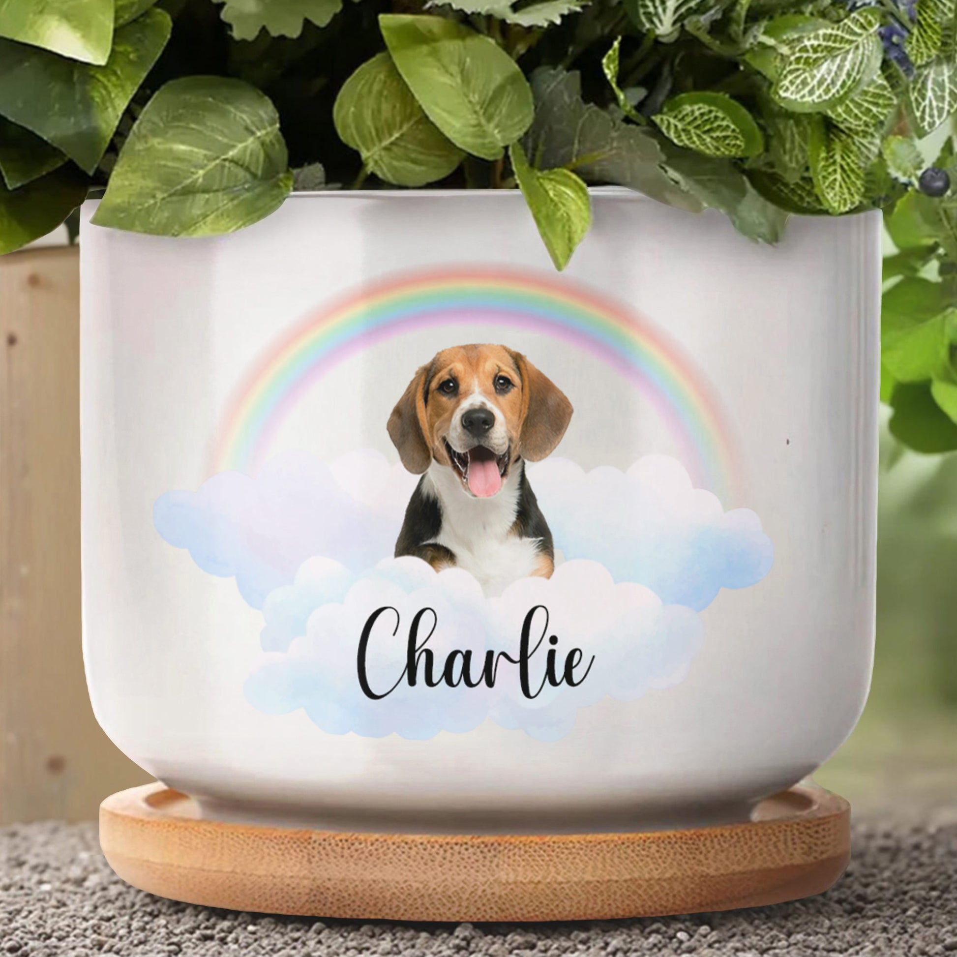 Customize With Your Pet's Name, Dog, Rainbow And Clouds, Personalized Ceramic Plant Pot, Gift For Dog Lovers
