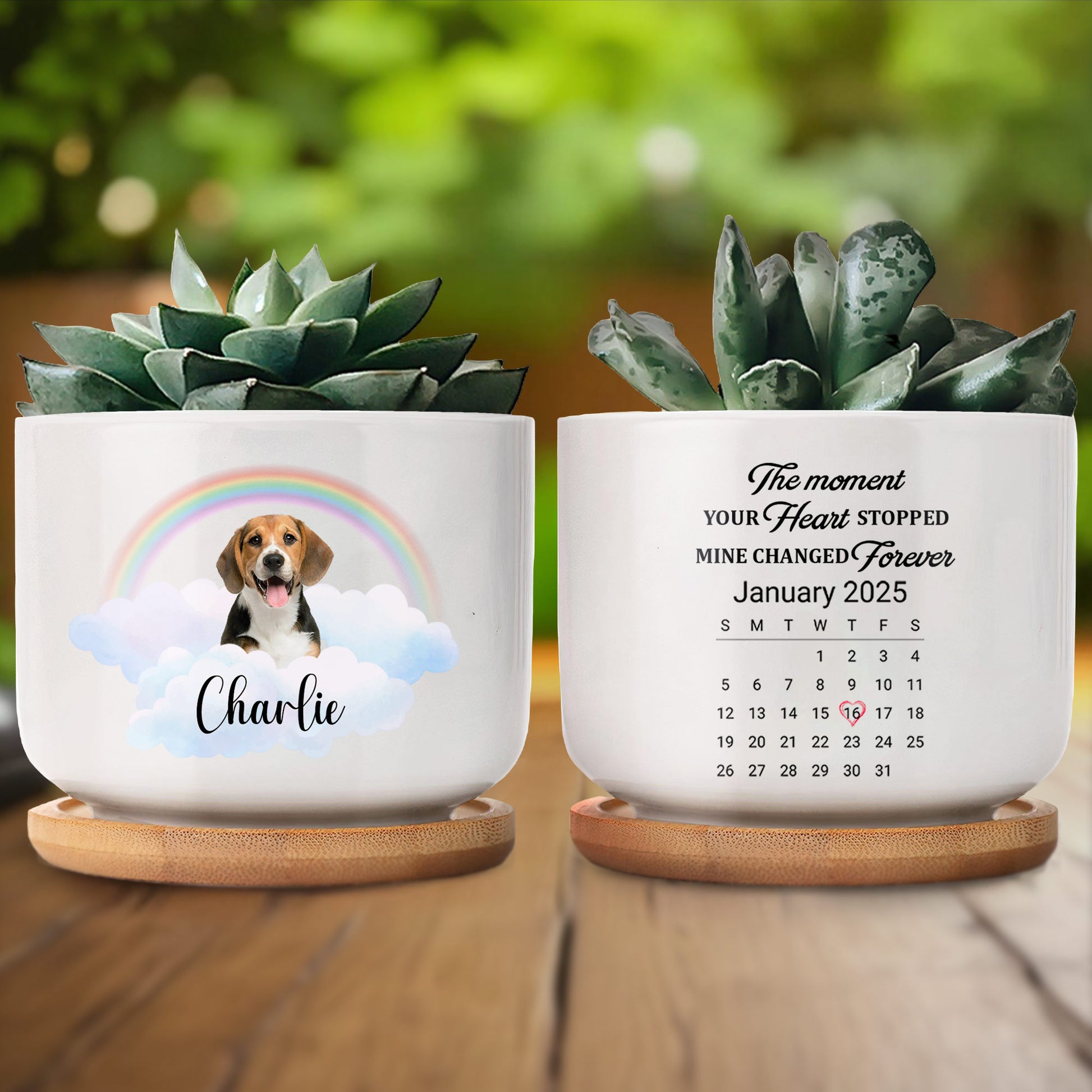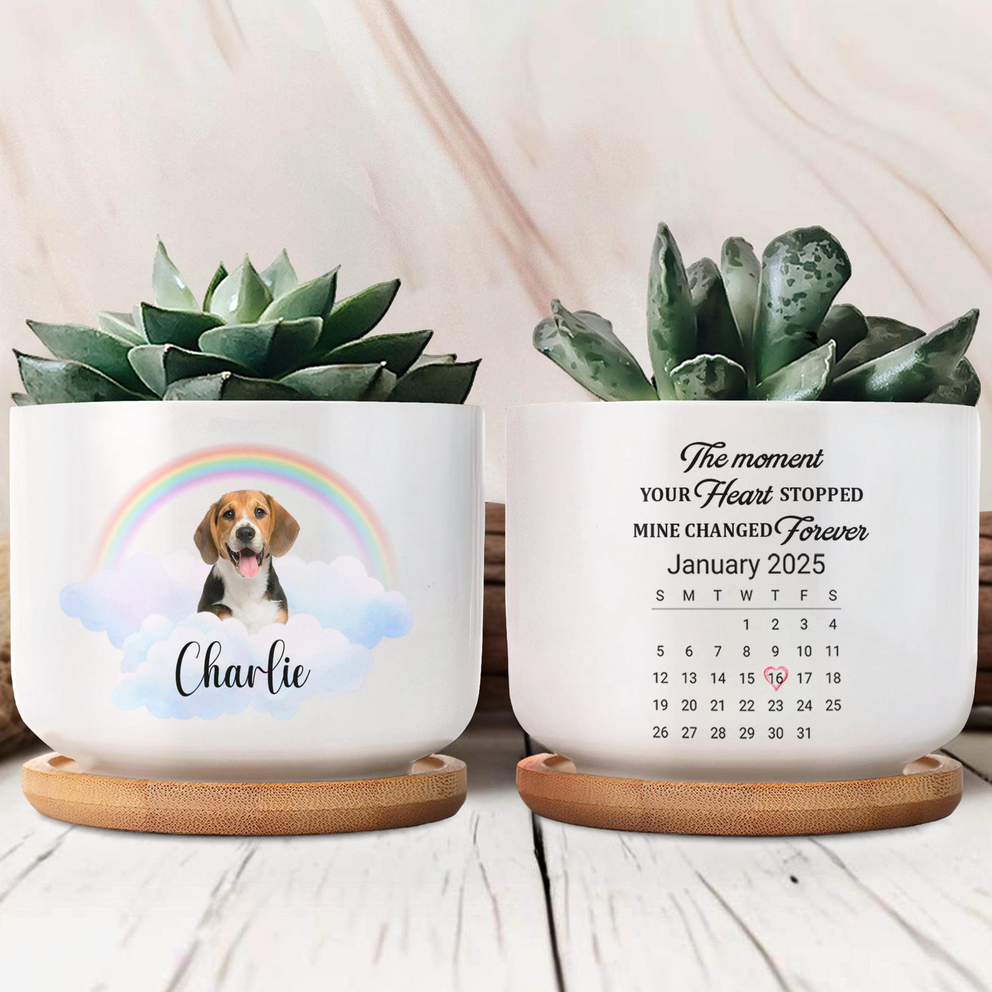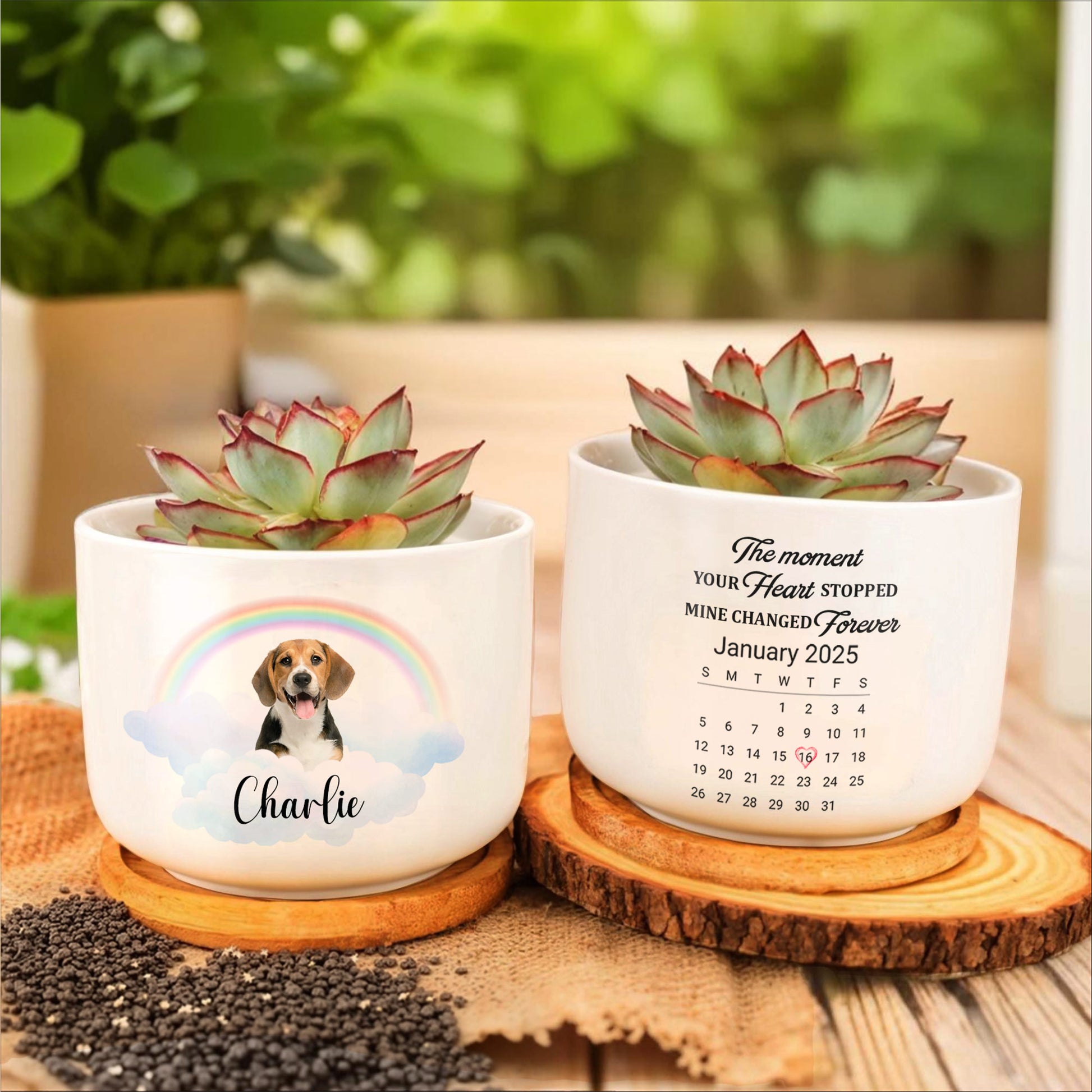 Customize With Your Pet's Name, Dog, Rainbow And Clouds, Personalized Ceramic Plant Pot, Gift For Dog Lovers
