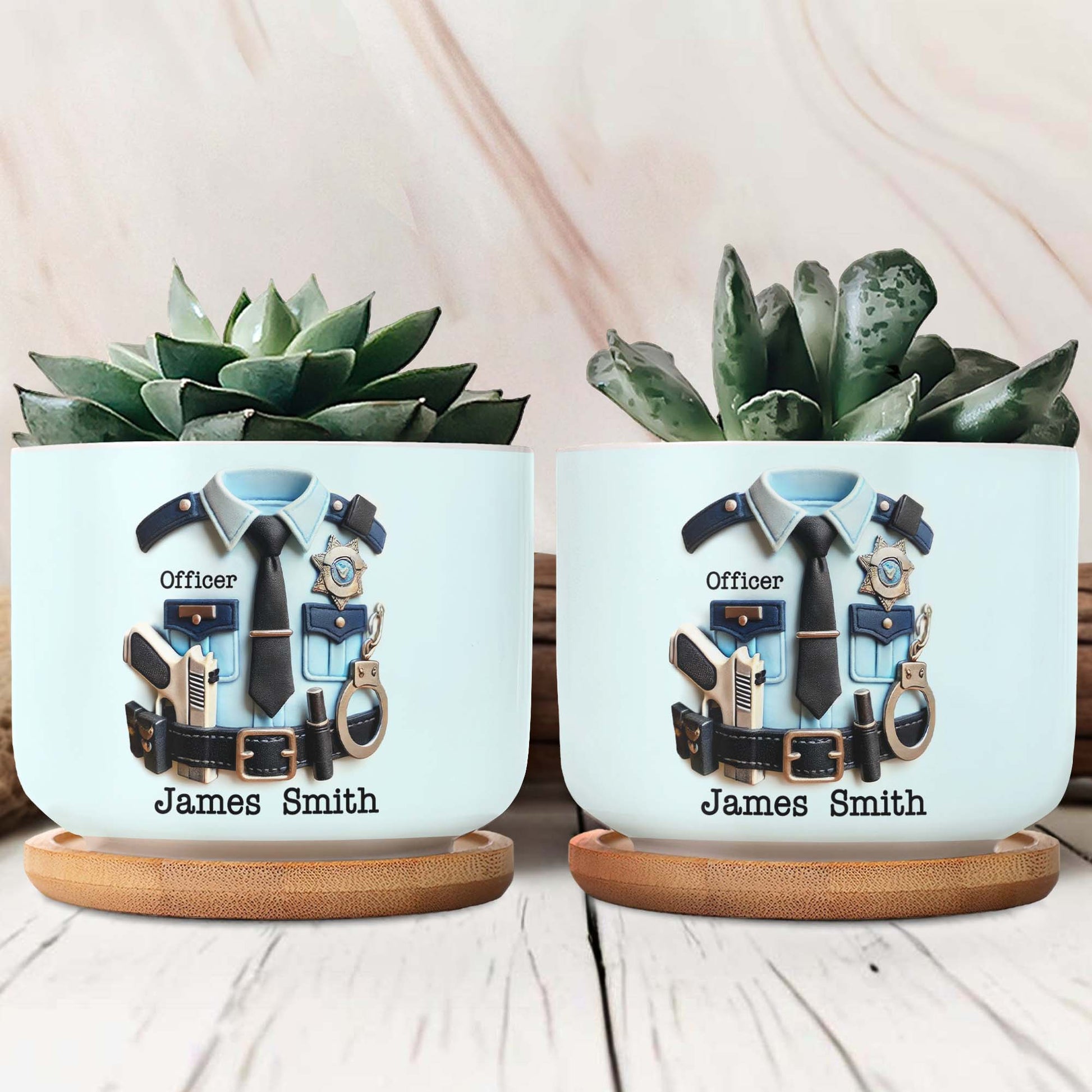 Personalized Police Officer Uniform, Badge and Handcuffs, Personalized Ceramic Plant Pot, Gift For Law Enforcement