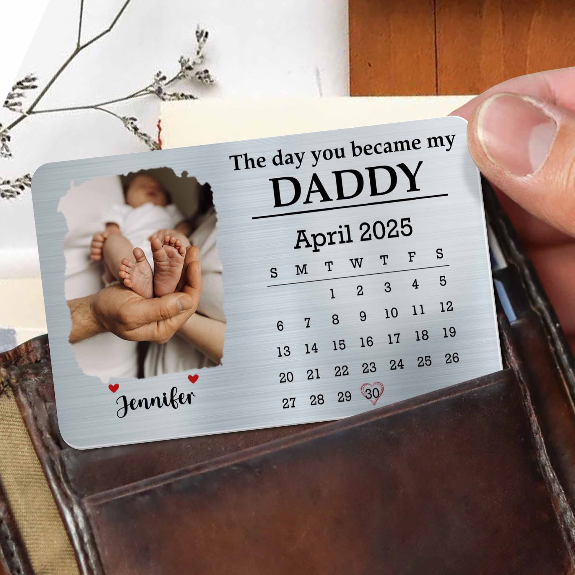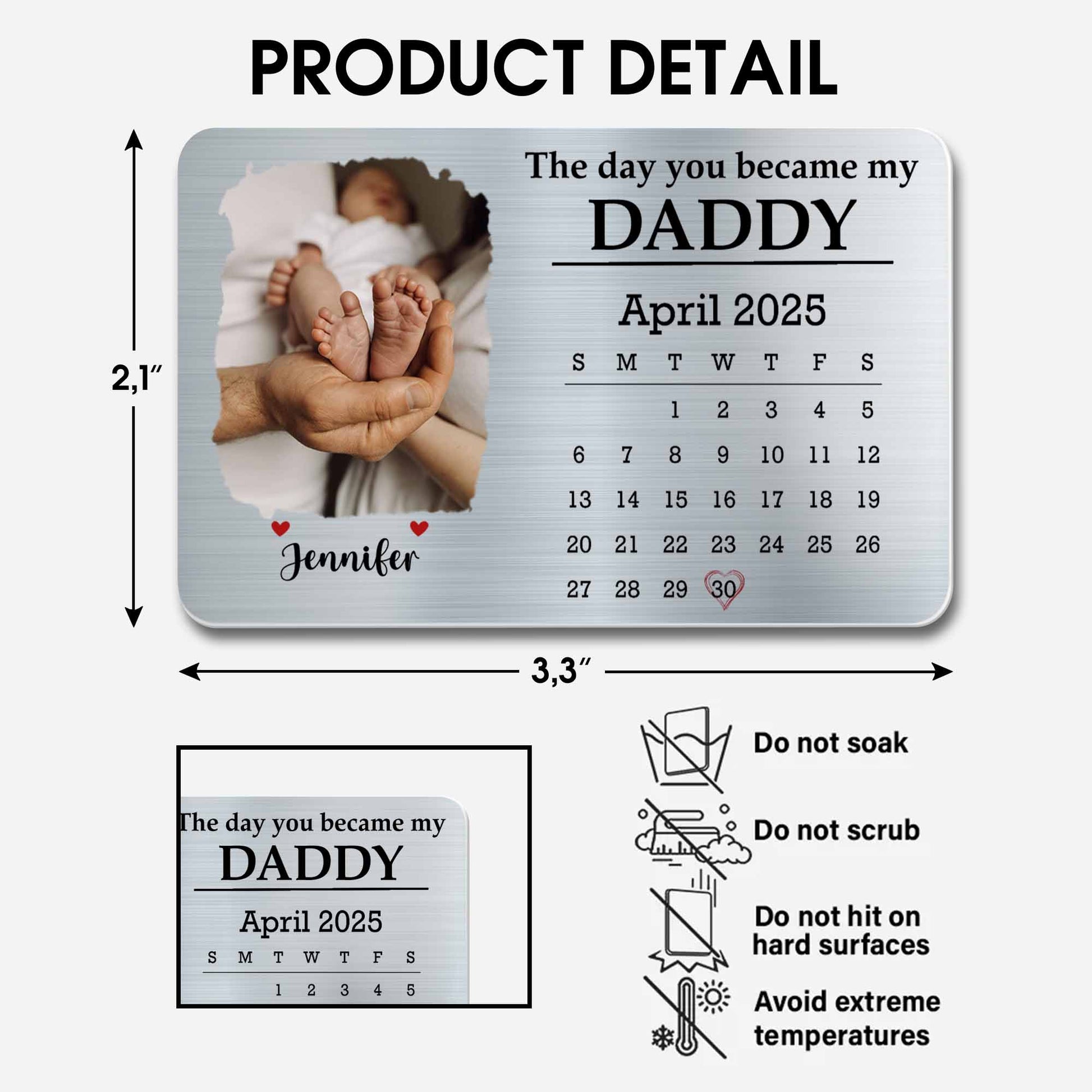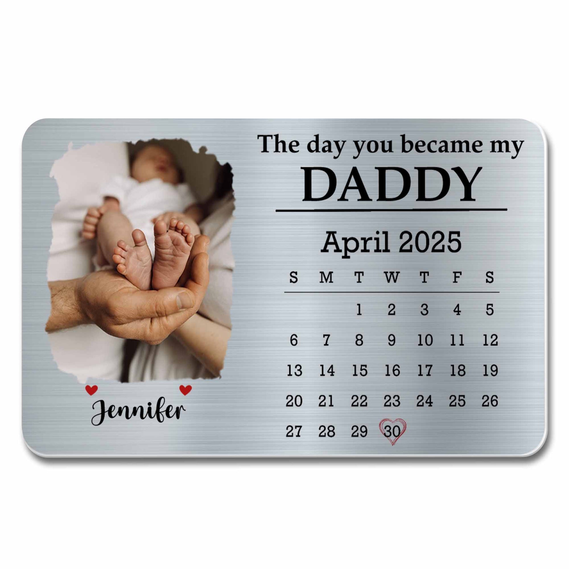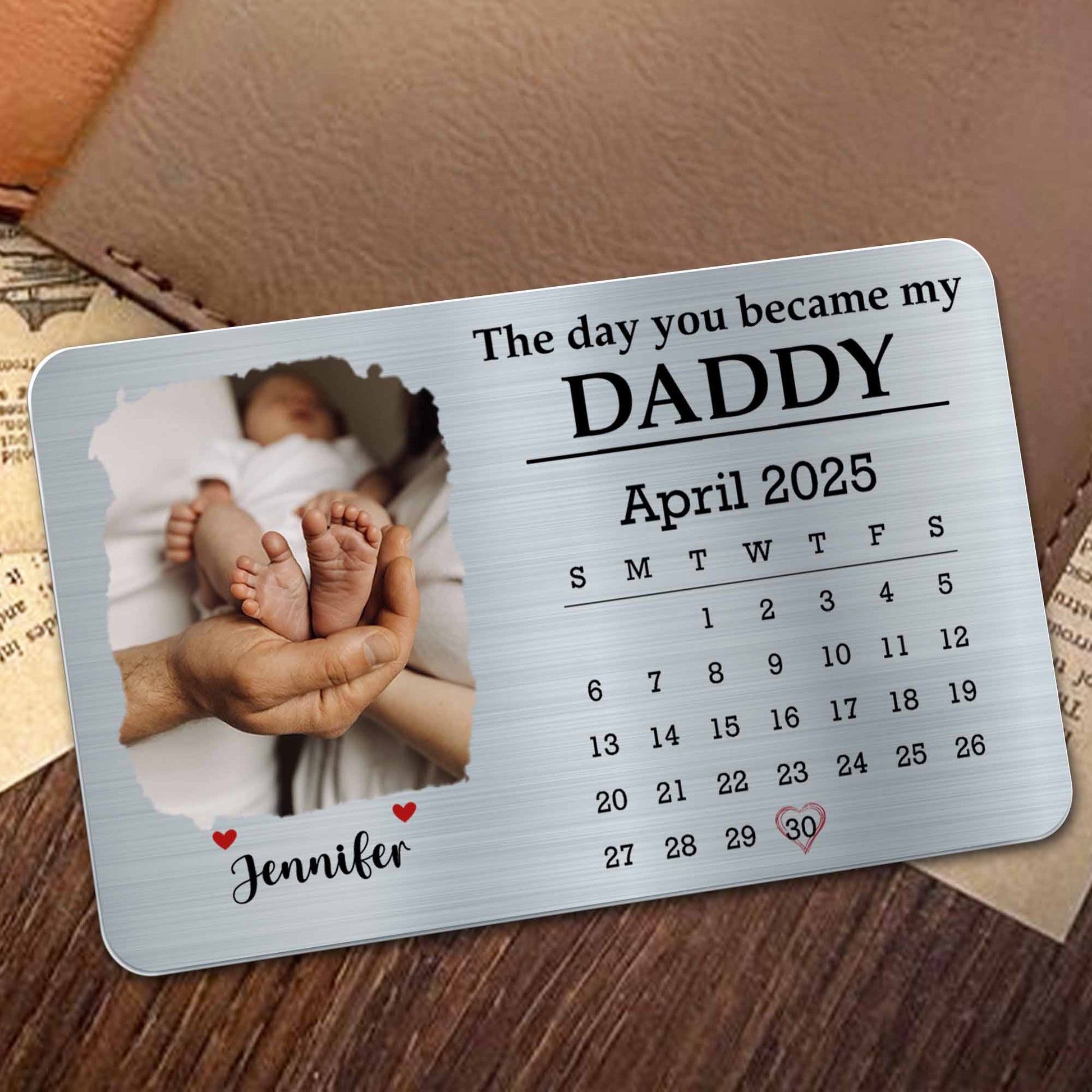 The Day You Became My Daddy, Baby Feet and Calendar Design, Personalized Aluminum Wallet Card, Gift For New Fathers