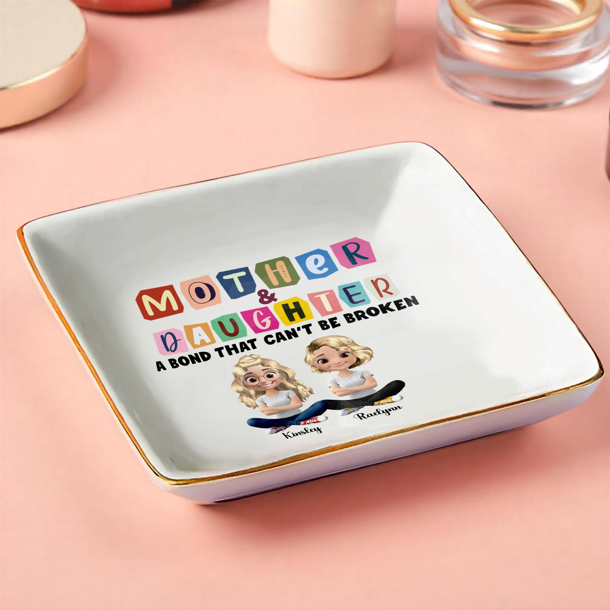Mother & Daughter A Bond That Can't Be Broken, Ceramic Dish, Gift For Daughter & Mother