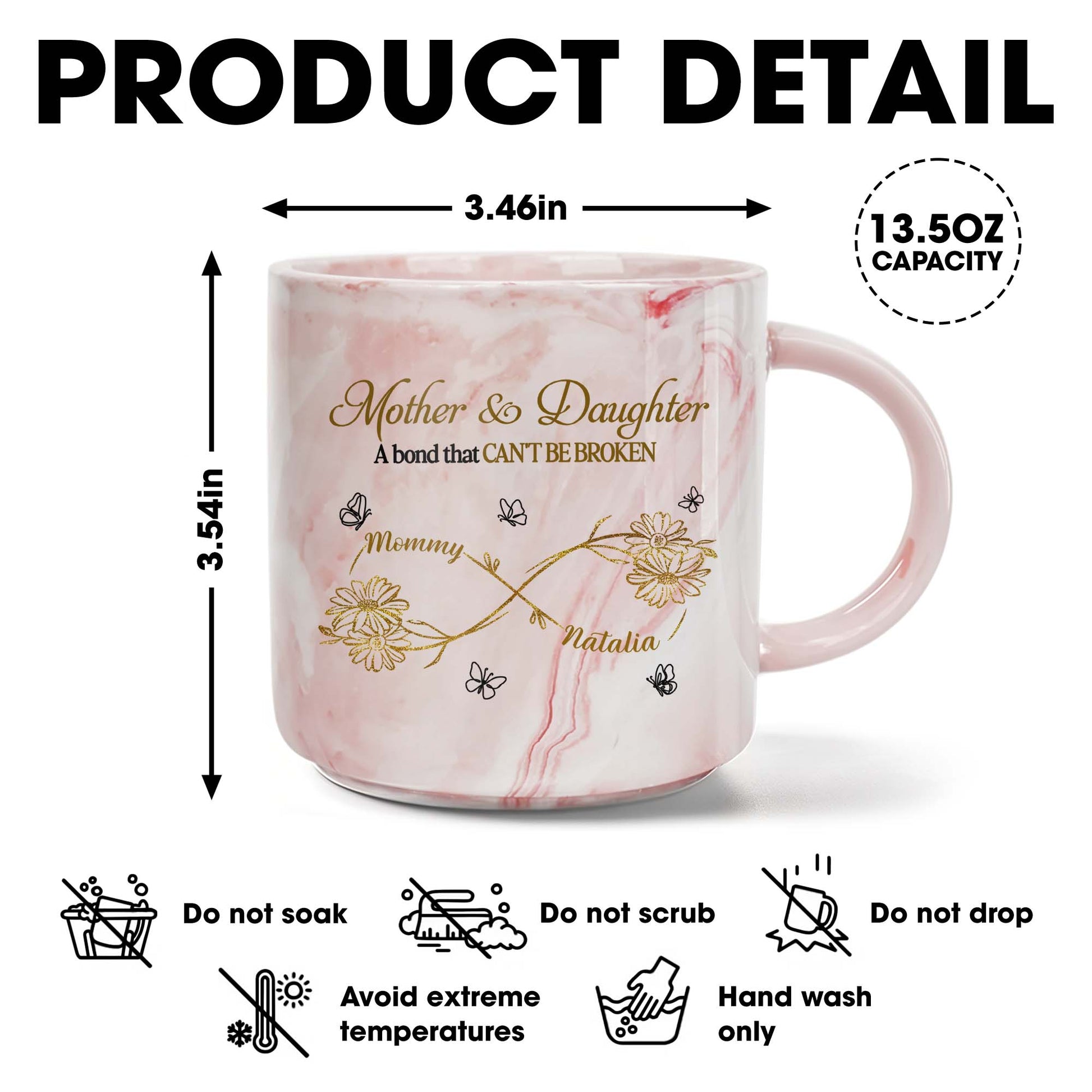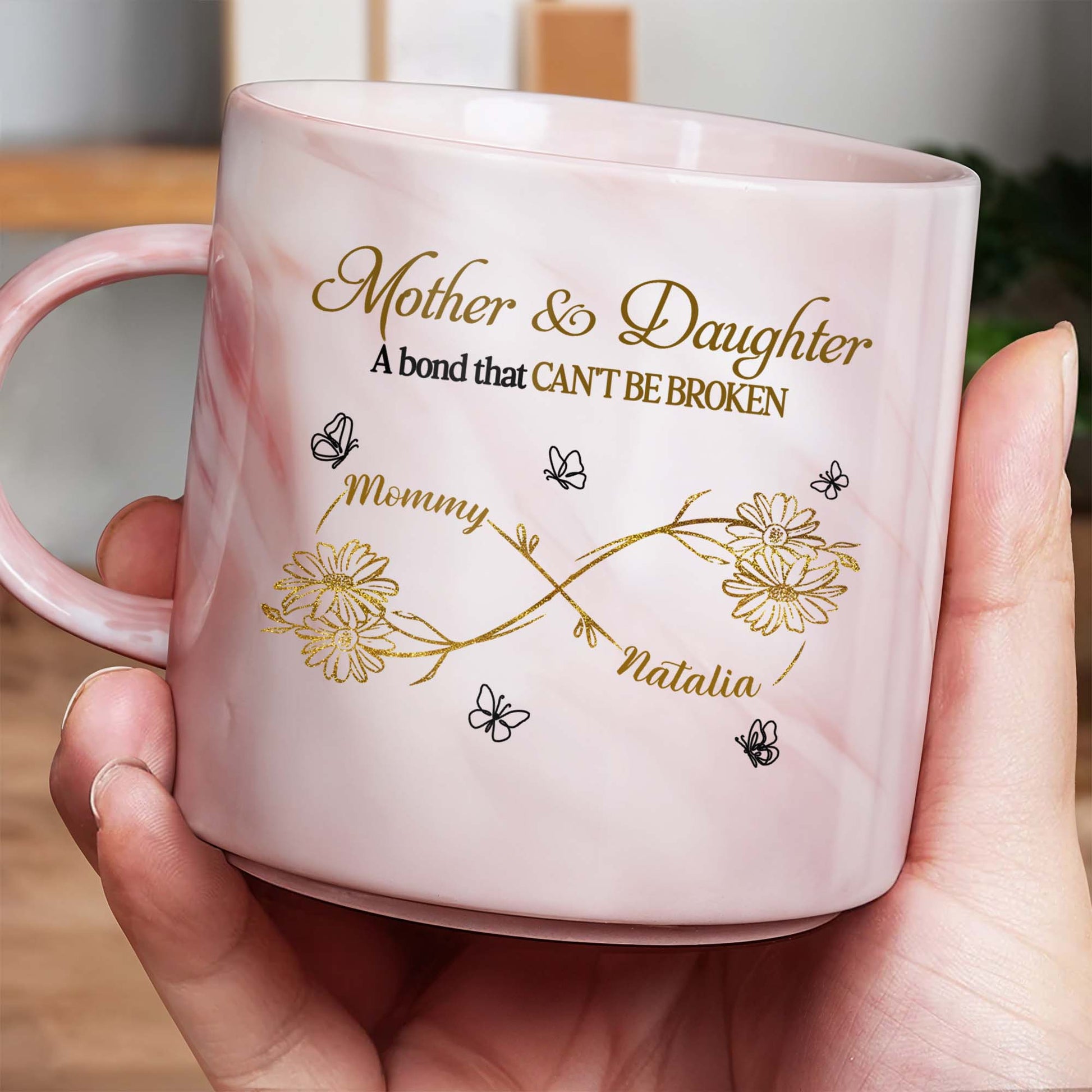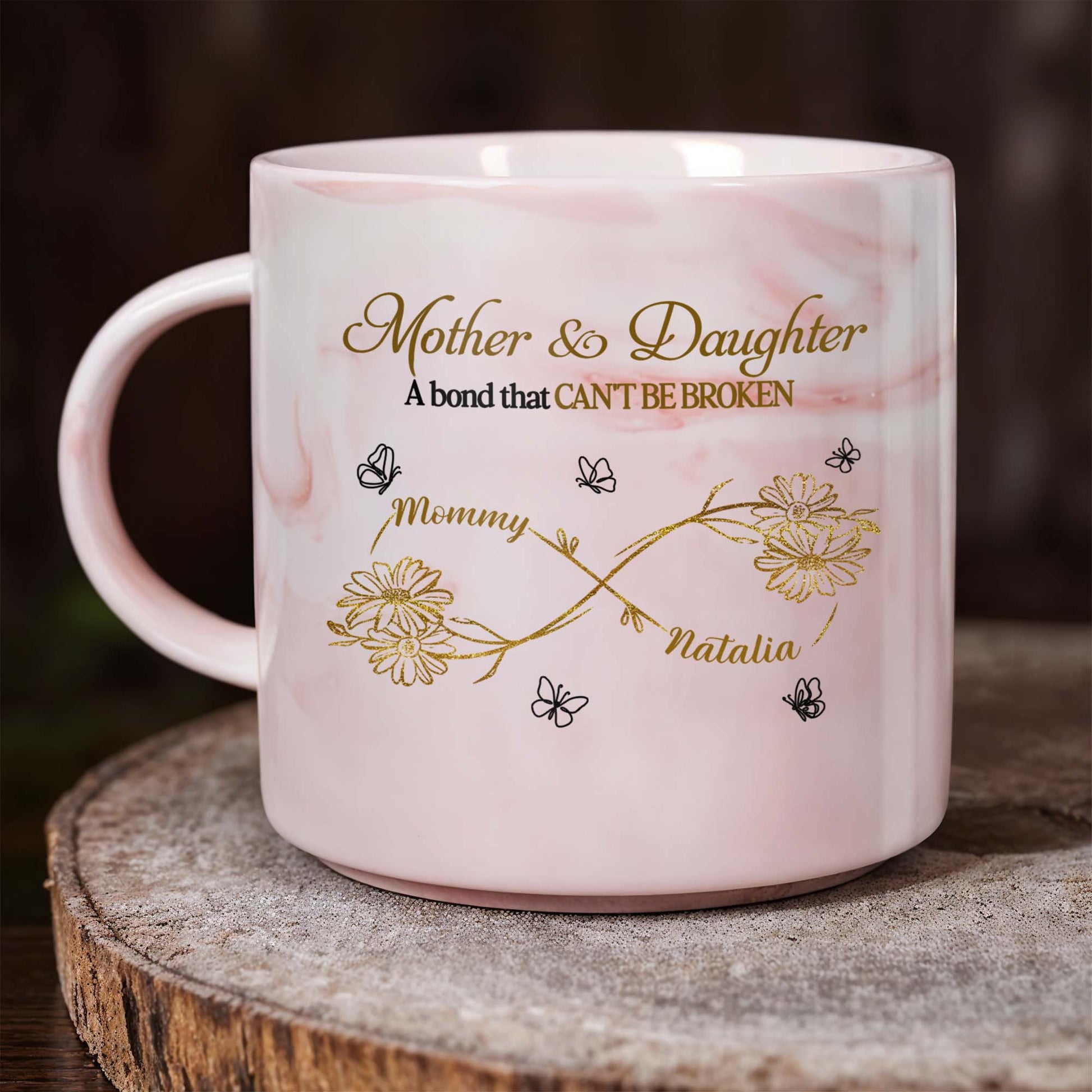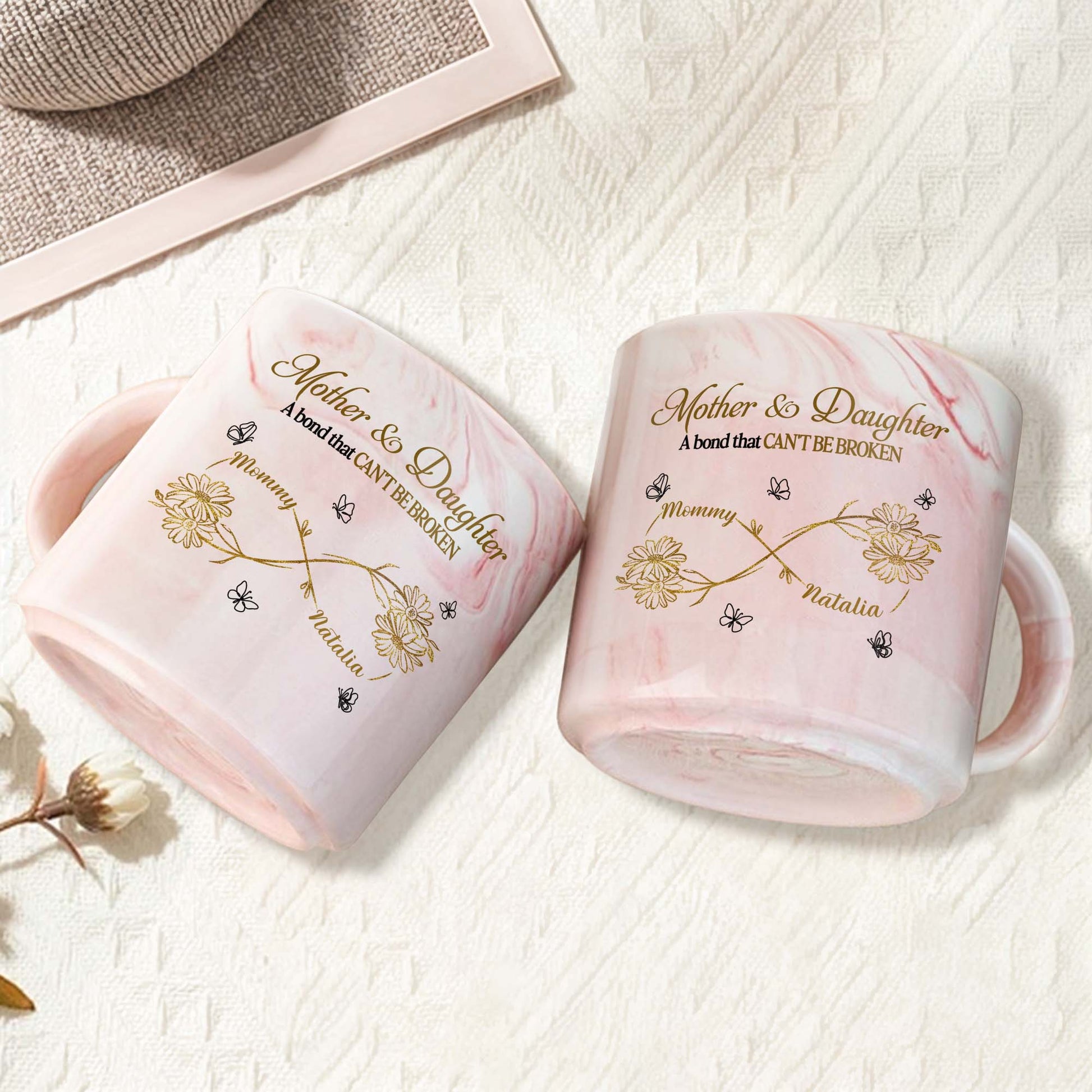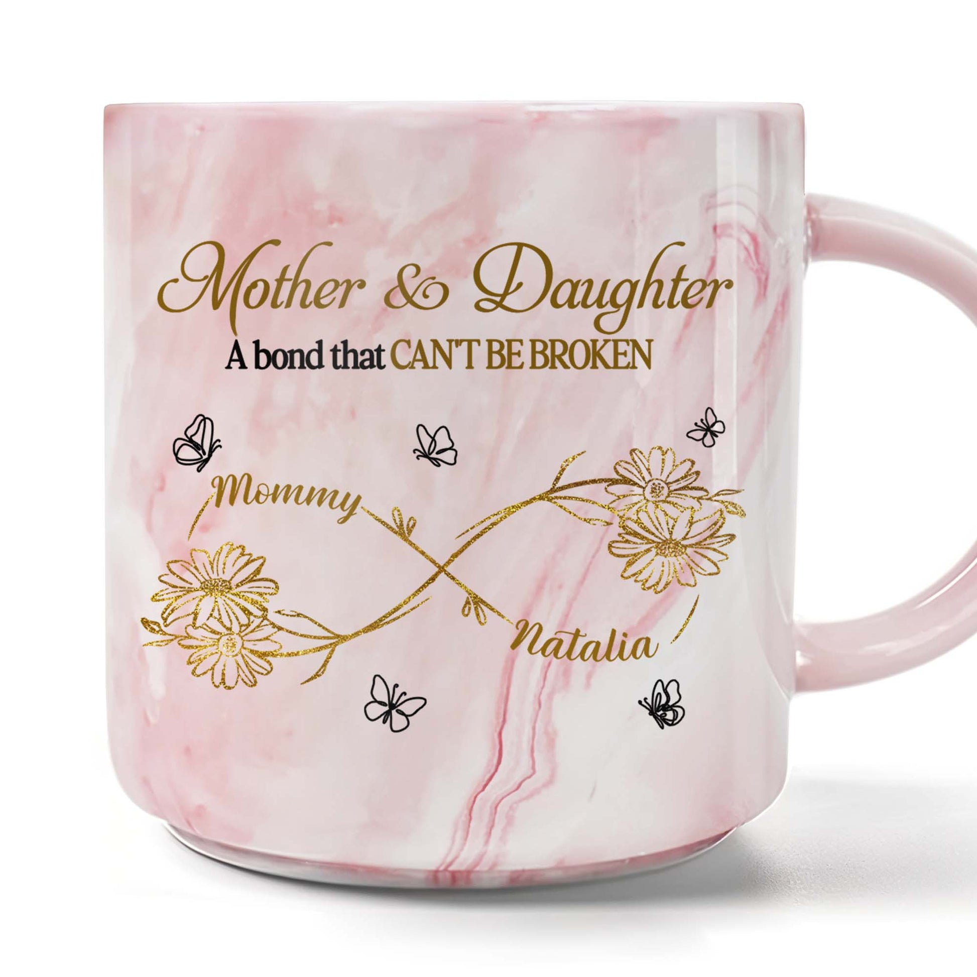 Mother & Daughter A Bond That Can't Be Broken, Personalized Custom Pink Marble Mug, Gift For Family