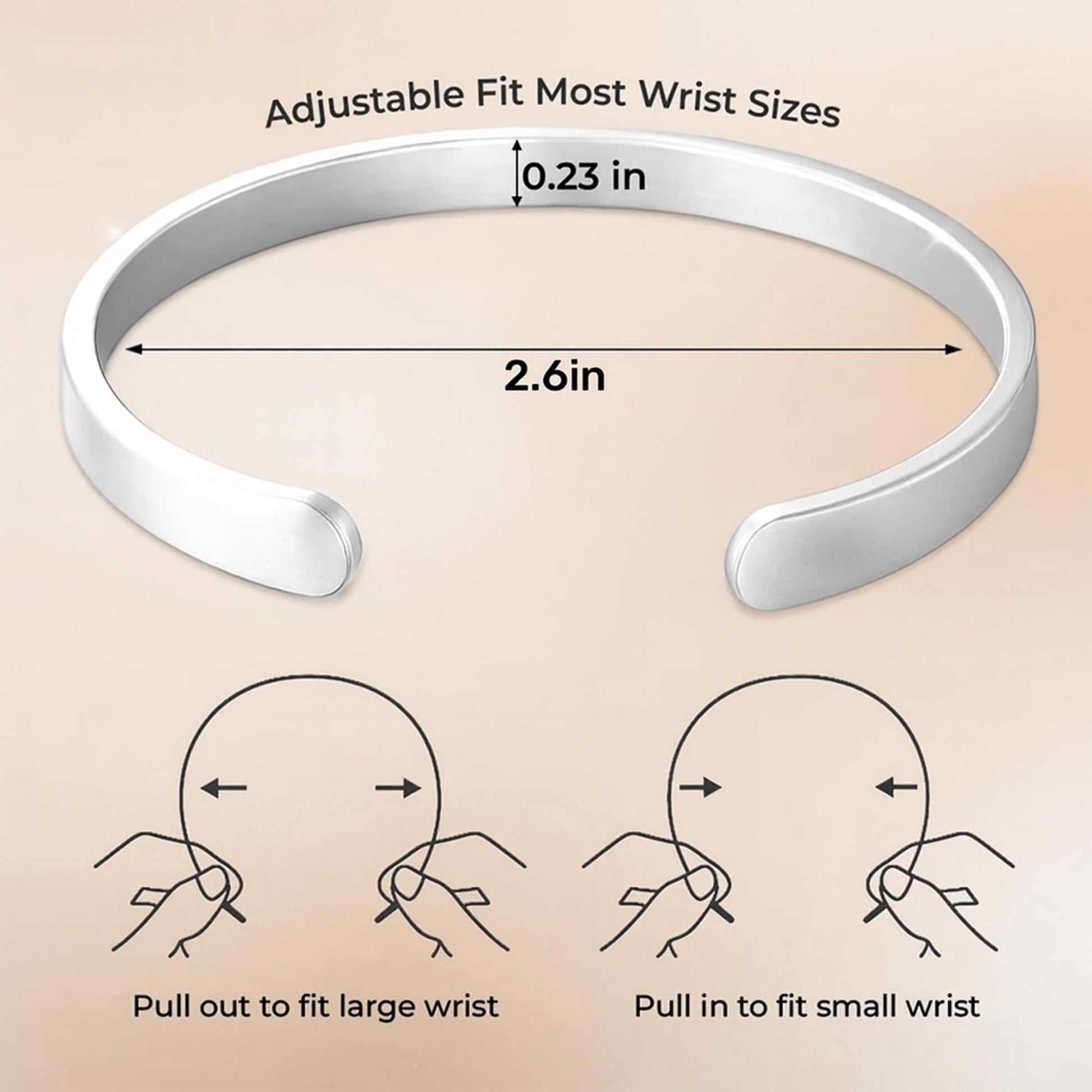 - Comfort Fit: Open-cuff design gently adjusts for wrists of various sizes