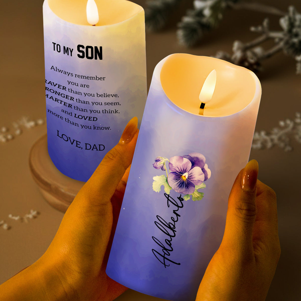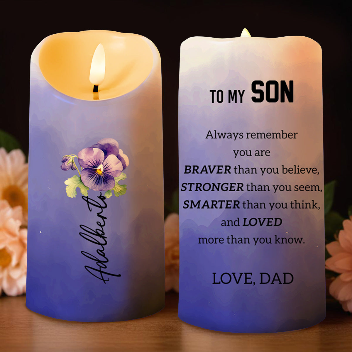Braver Stronger Smarter - Inspirational Personalized LED Candle - Gift For Sons