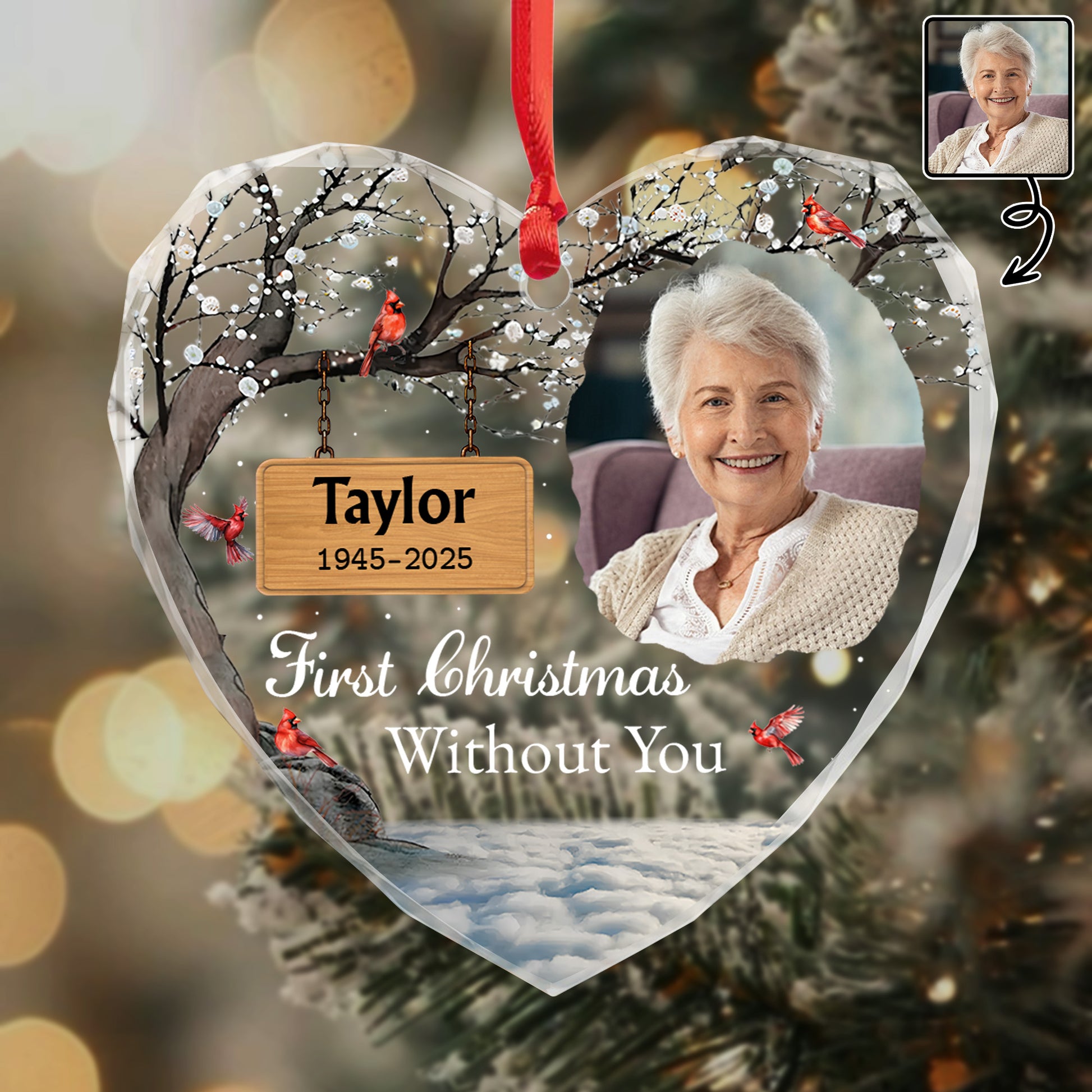 First Christmas Without You, Heart Ornament With Cardinals - Personalized Heart Glass Ornament - HME318_HEGOR