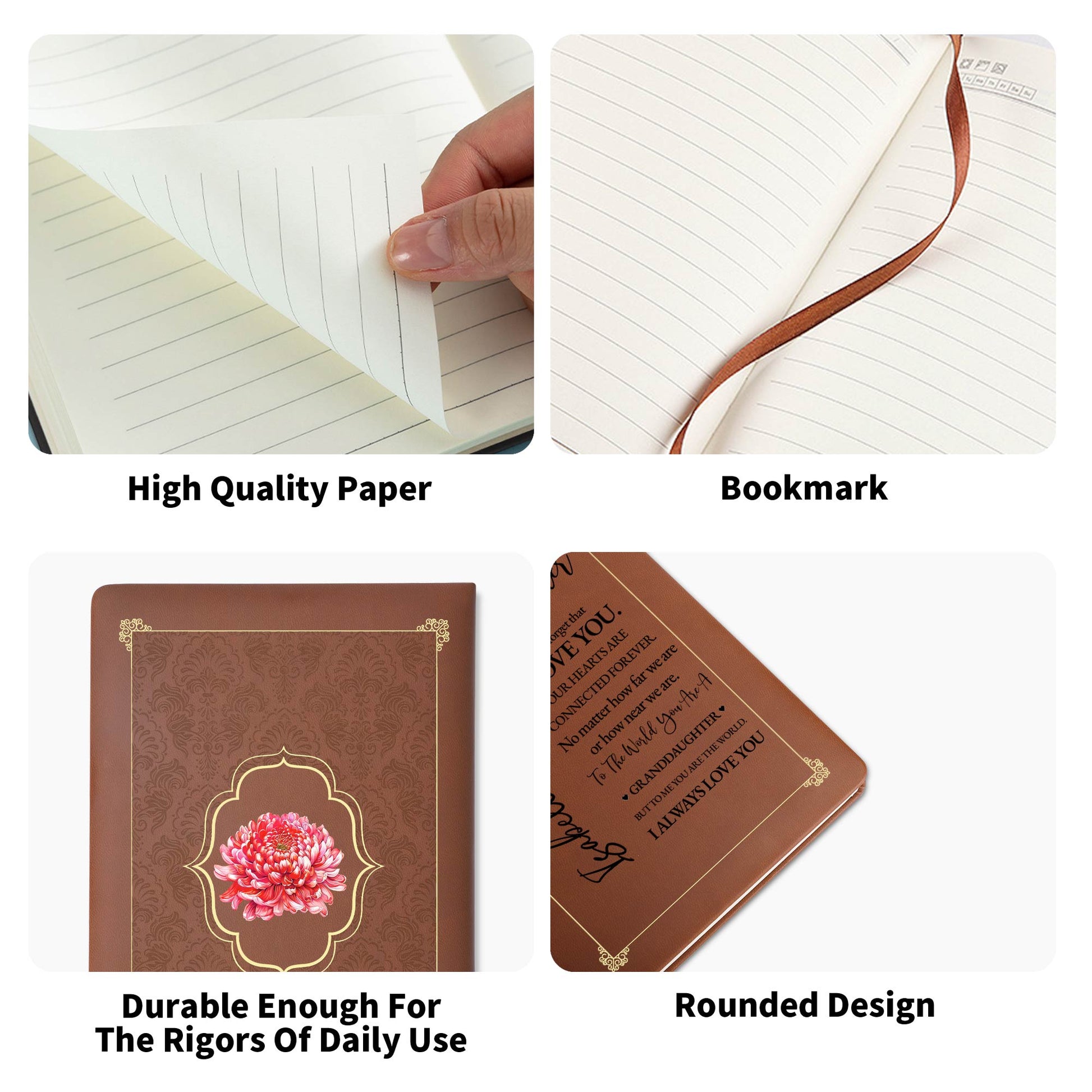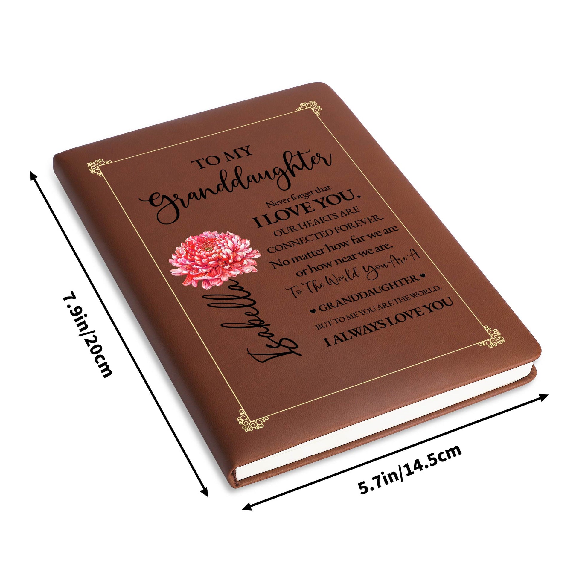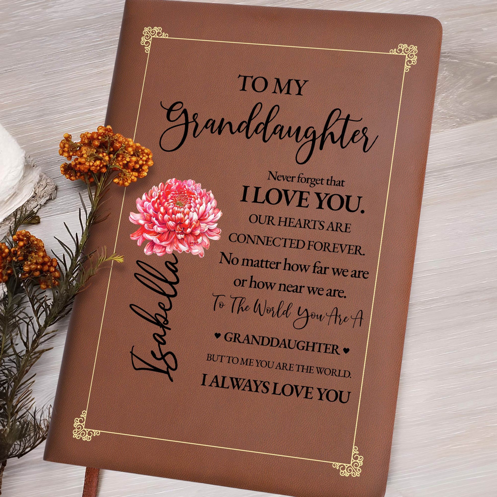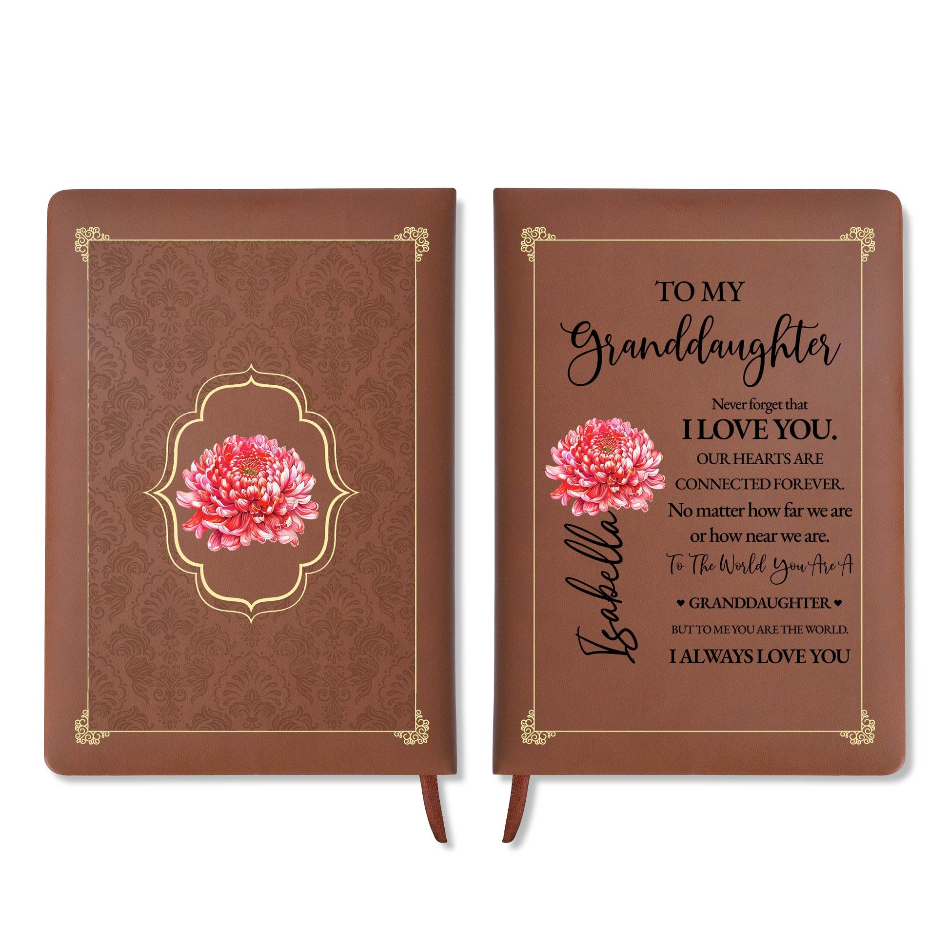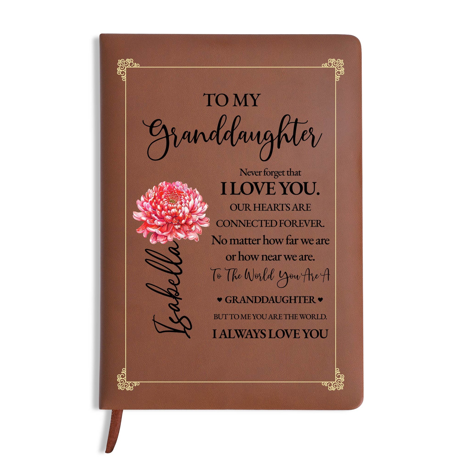 To My Granddaughter Connected Forever Love - Personalized Custom Leather Journal - Gift For Granddaughters