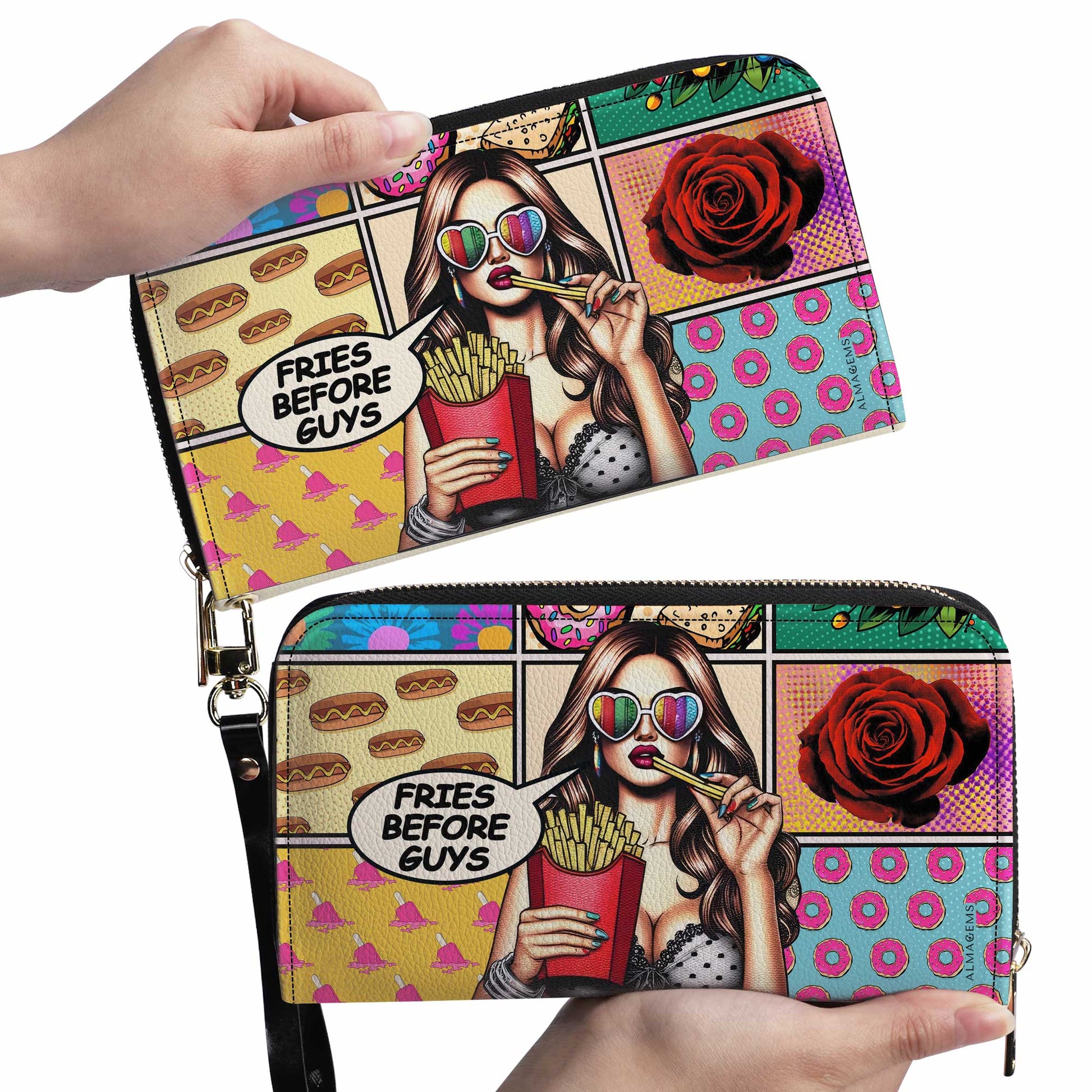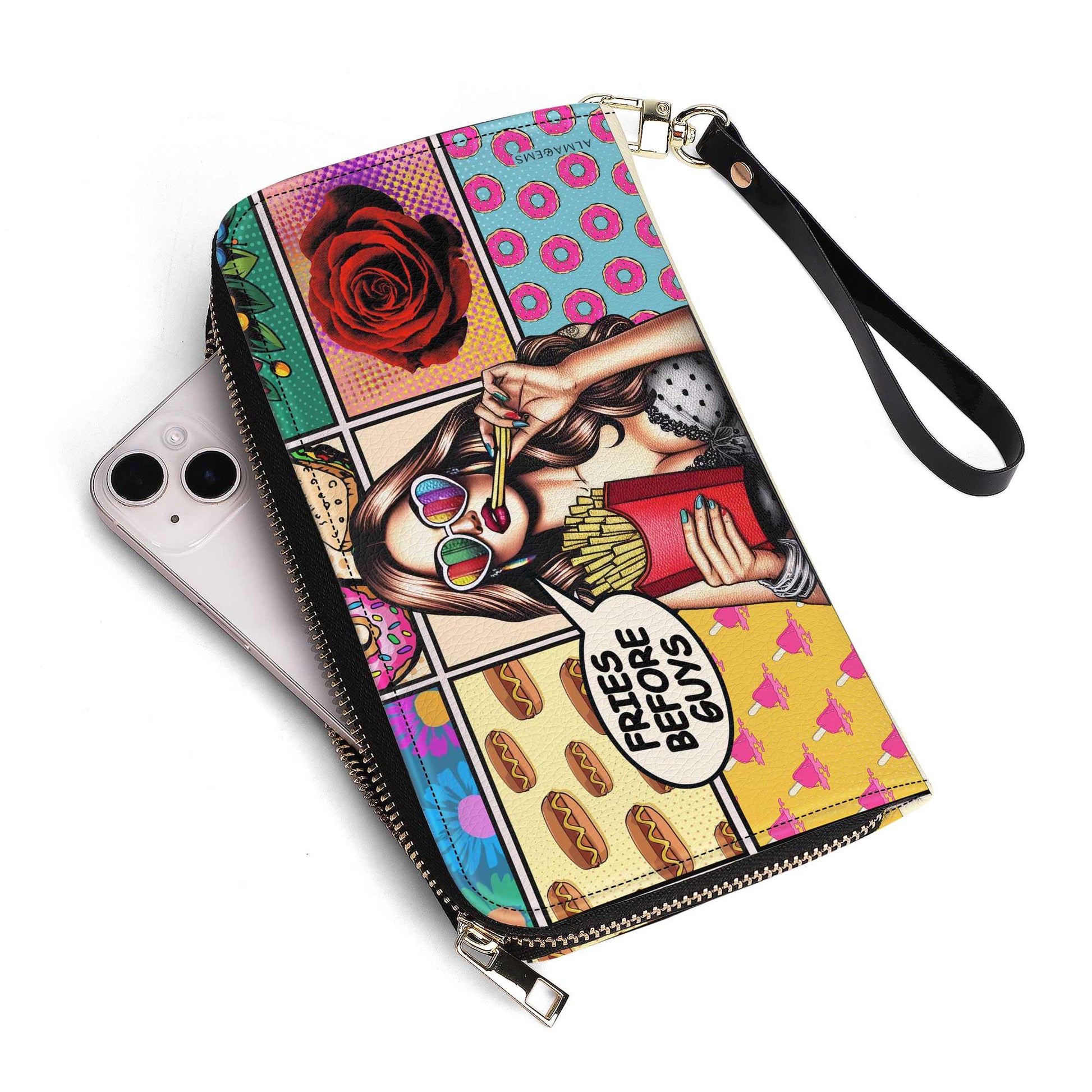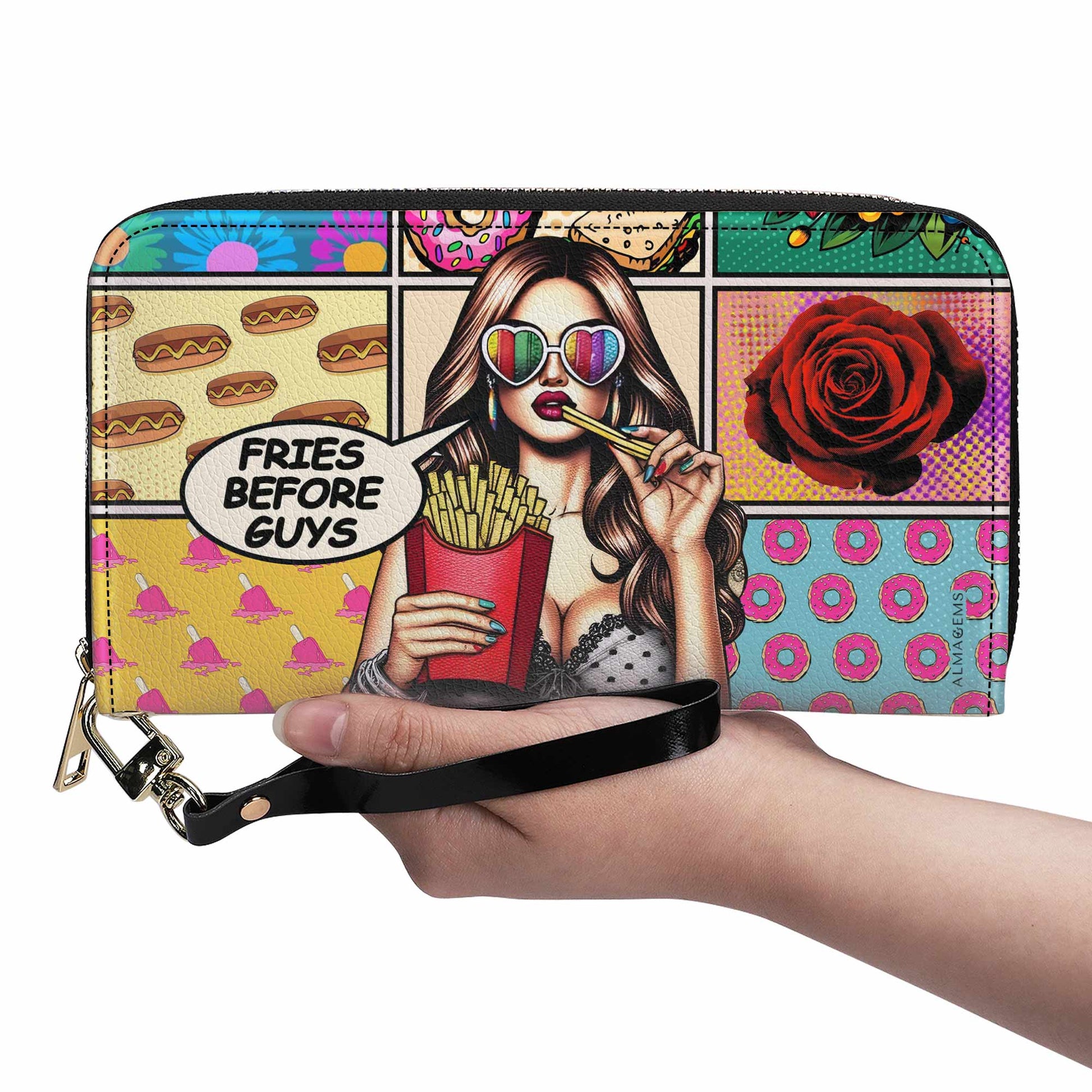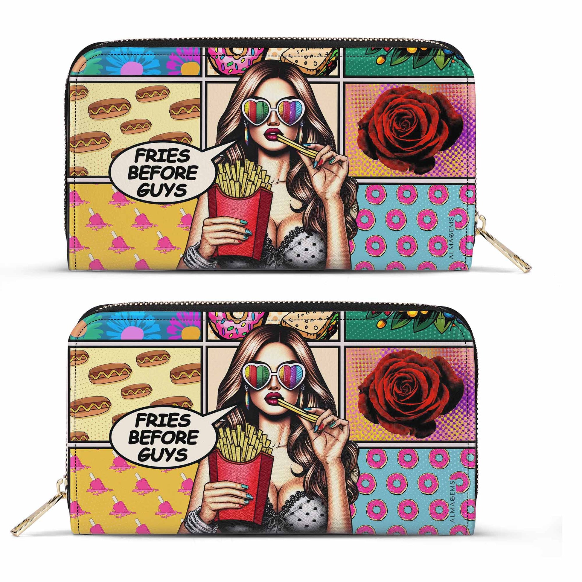 Fries Before Guys - Women's Personalized Custom Wallet, All Over Print Clutch - Gift For Girlfriends And Strong Girl Lovers