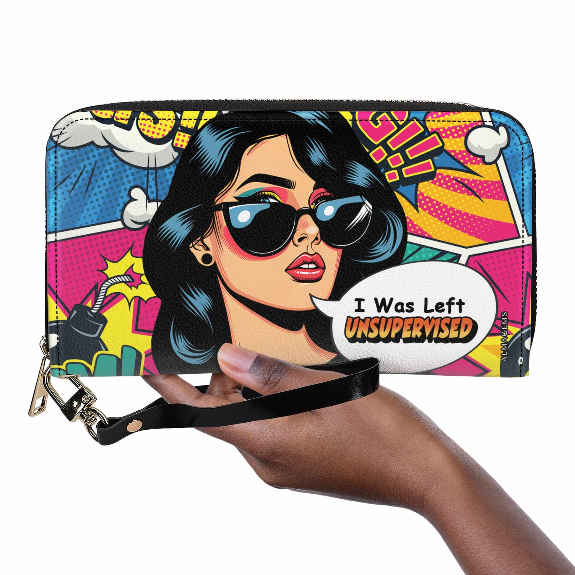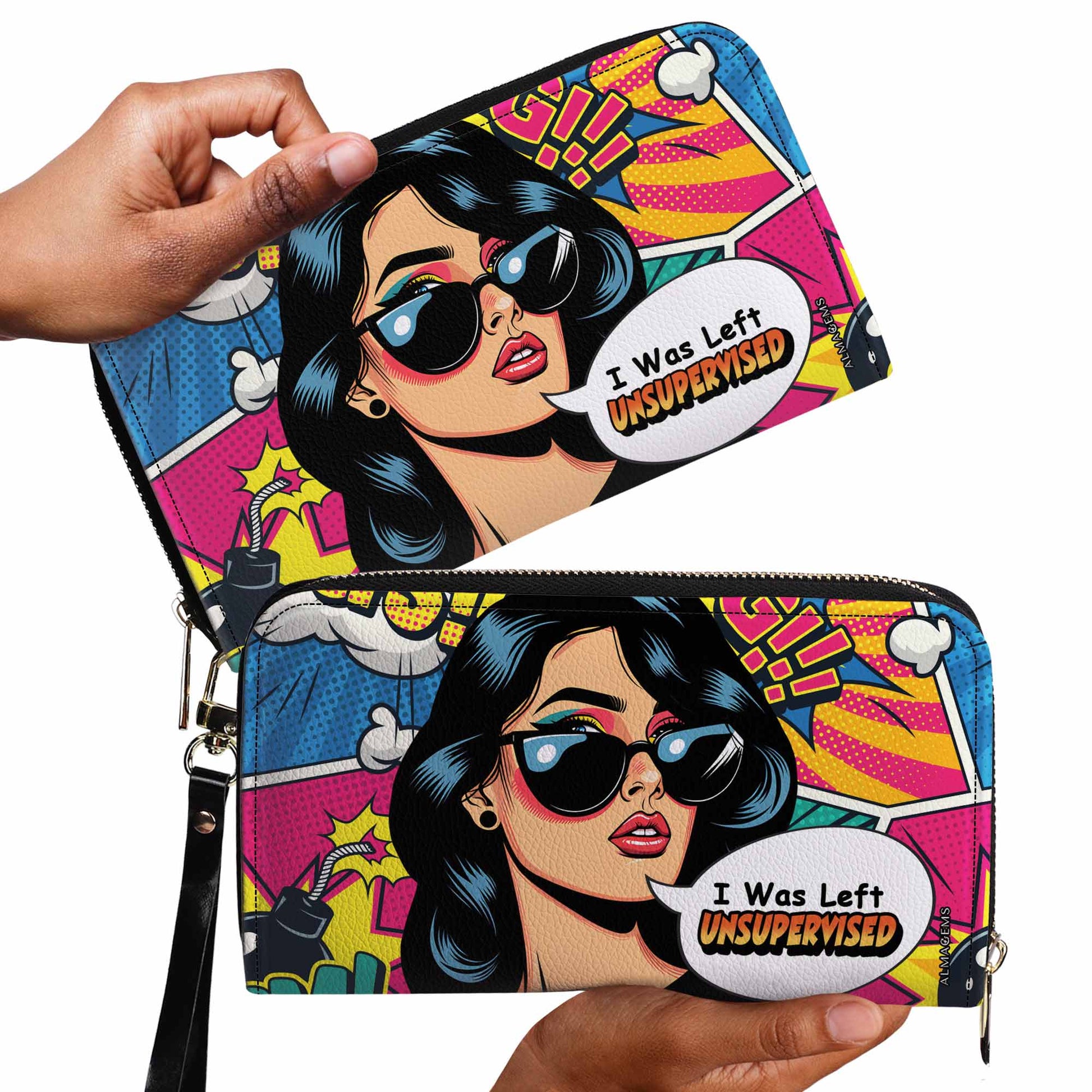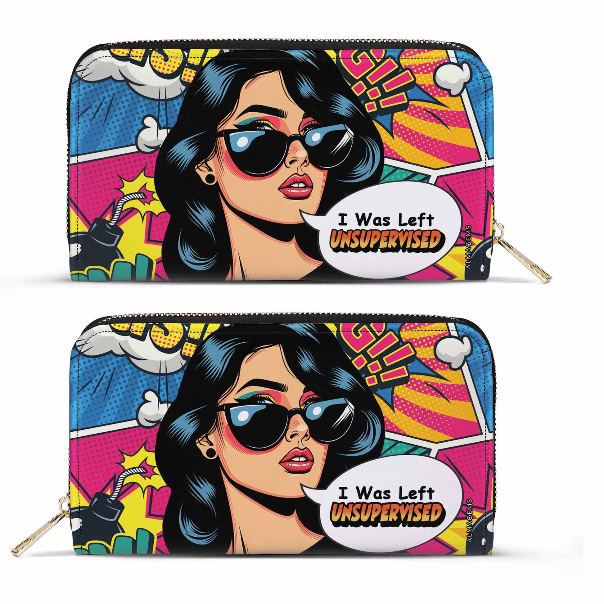 I Was Left Unsupervised - Pop Art Personalized Custom Wallet, All Over Print Leather - Gift For Strong Women and Pop Art Fans