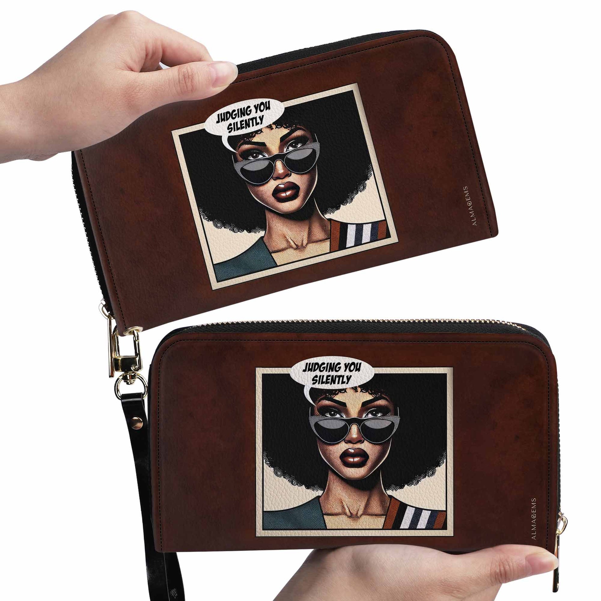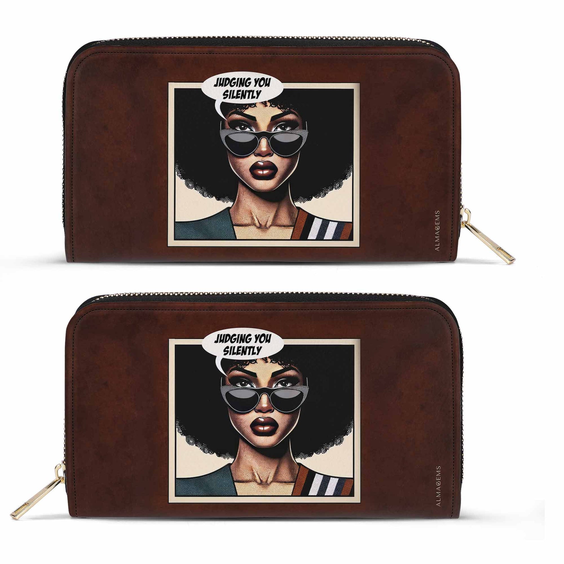 Judging You Silently - Women's Personalized Custom Wallet, All Over Print Leather Wallet - Gift For Fashion and Art Lovers