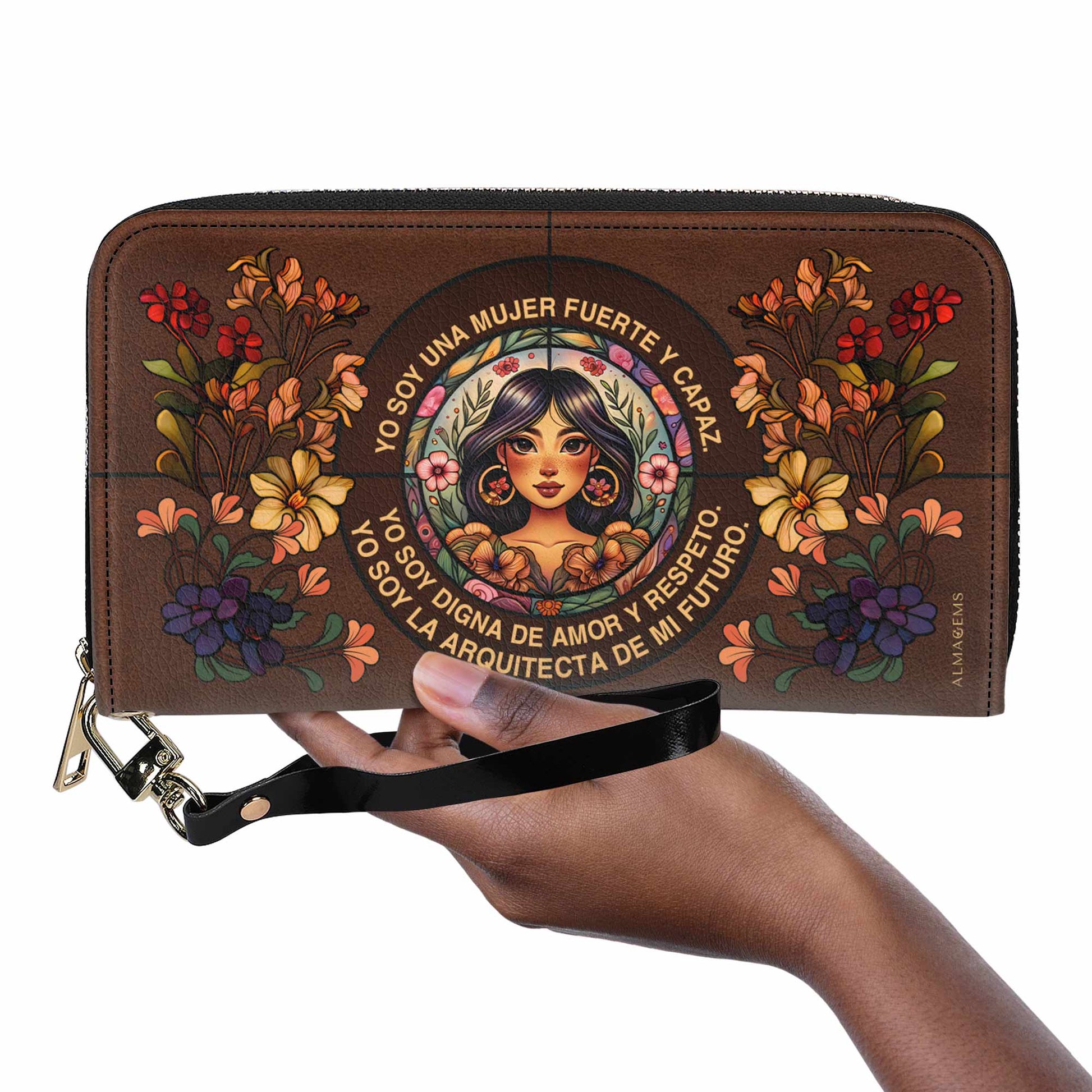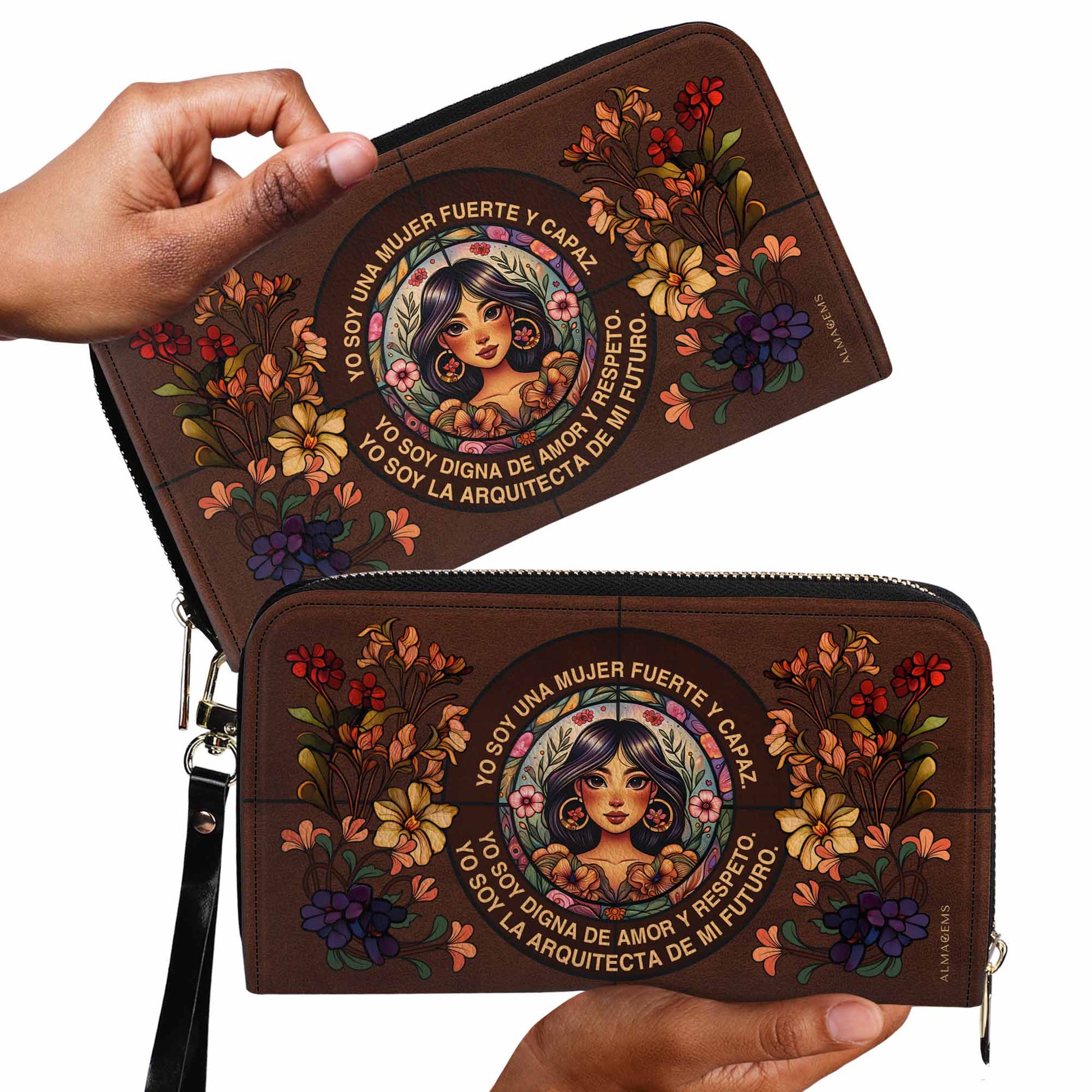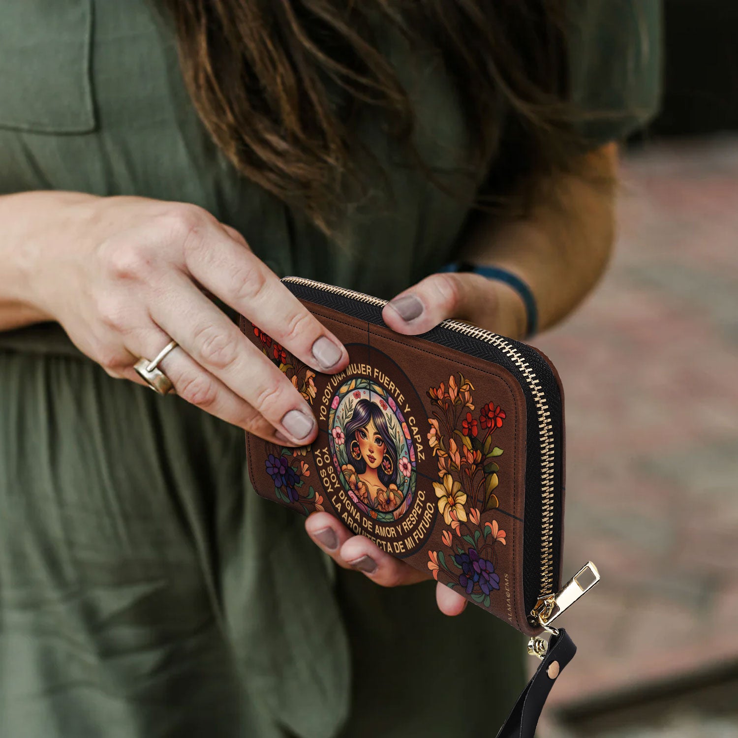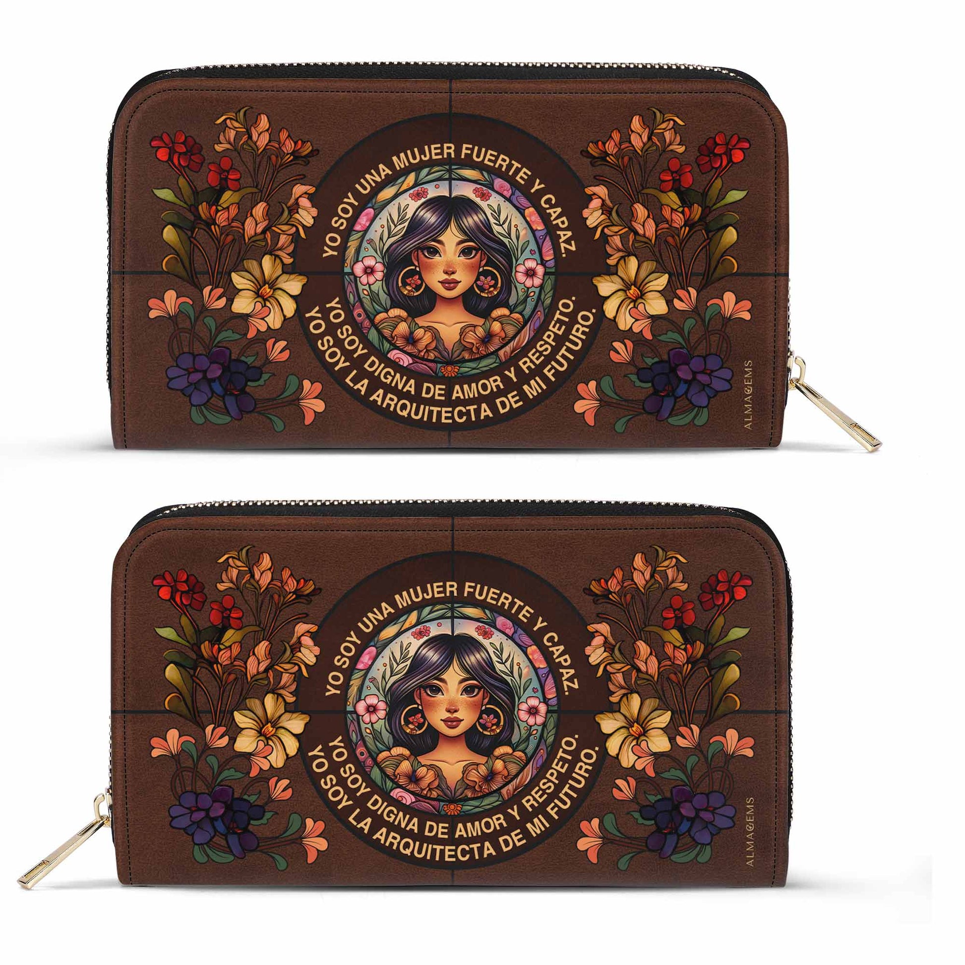 Mujer Fuerte Y Capaz - Hispanic Heritage Personalized Custom Leather Wallet, All Over Print - Gift for Mom, Girlfriend, and Daughter