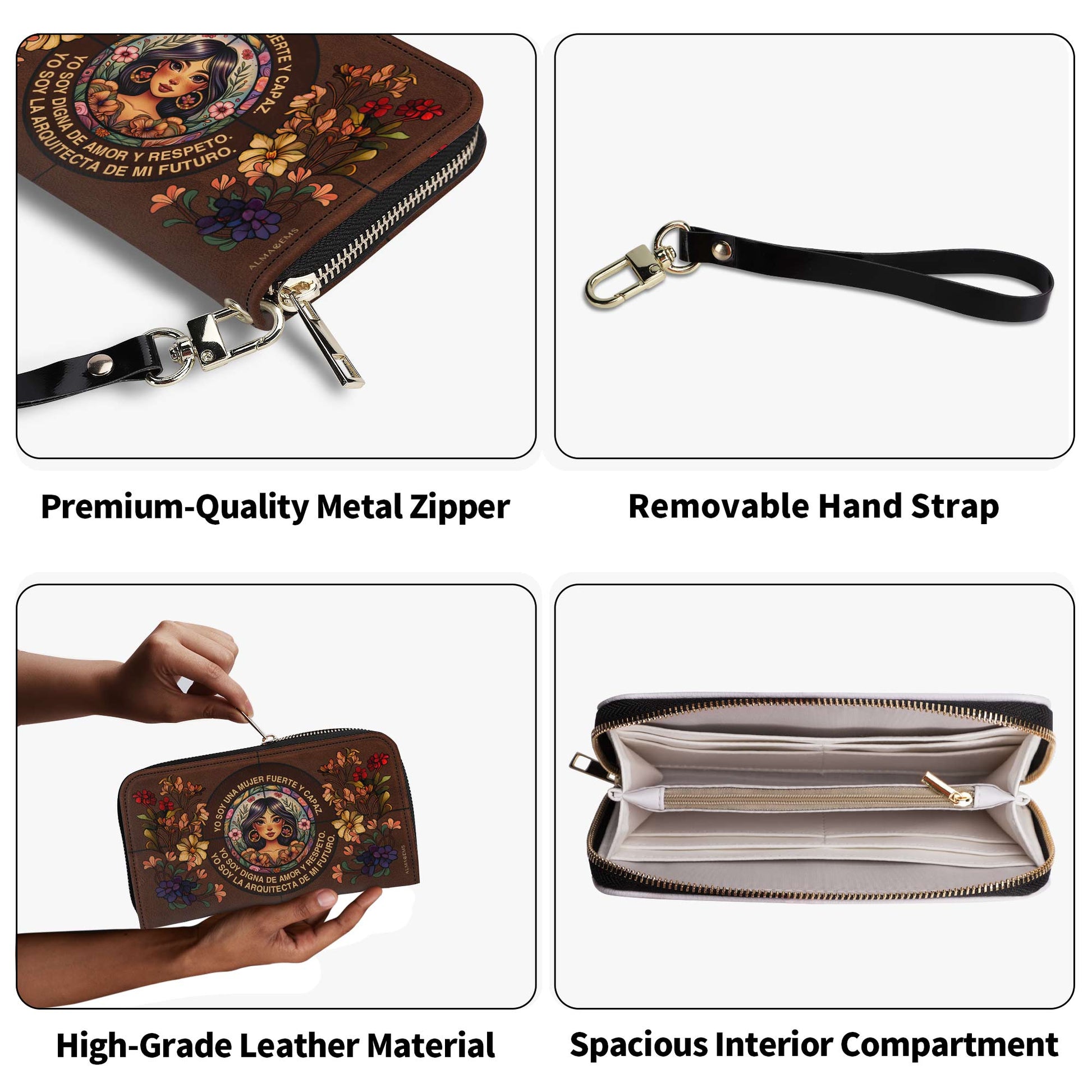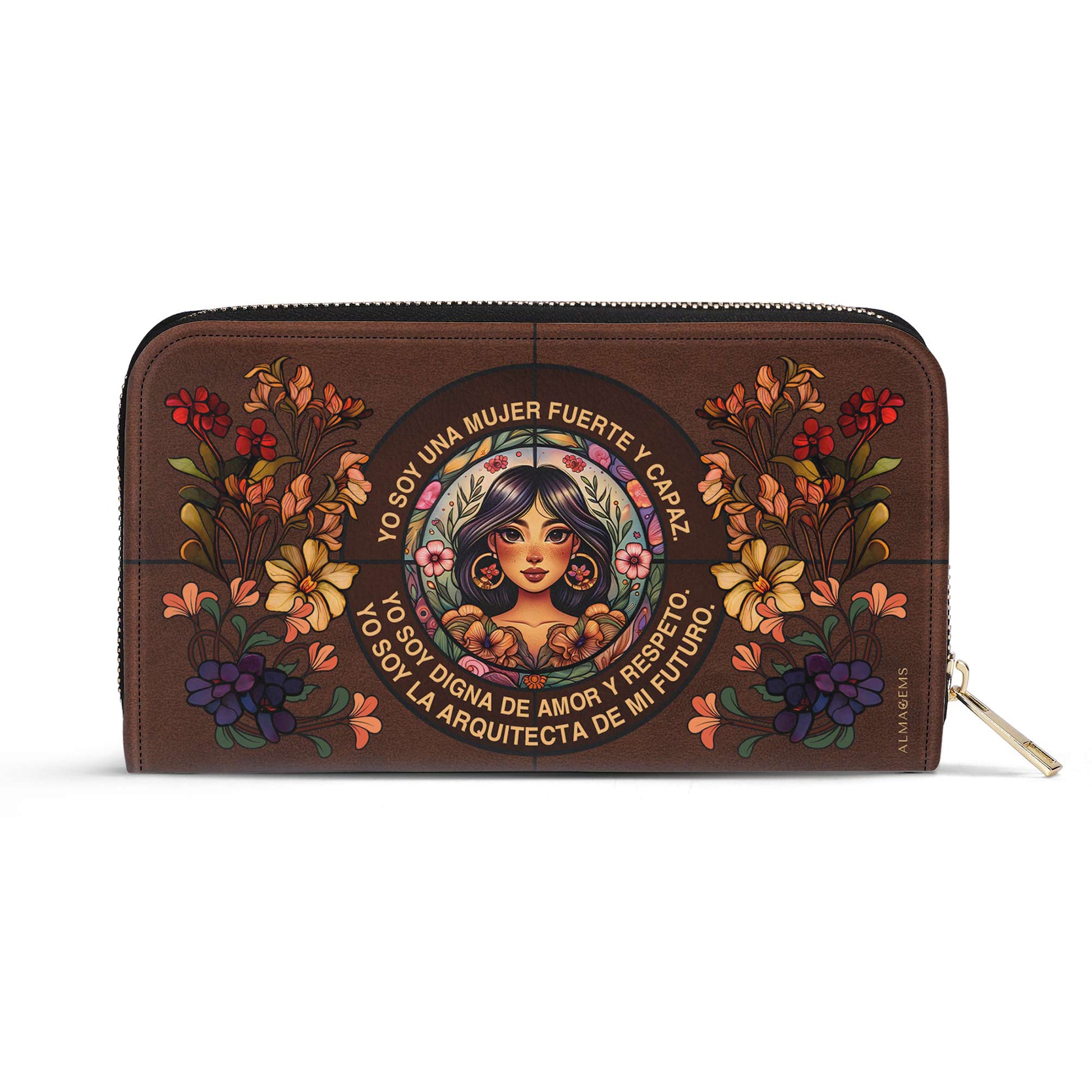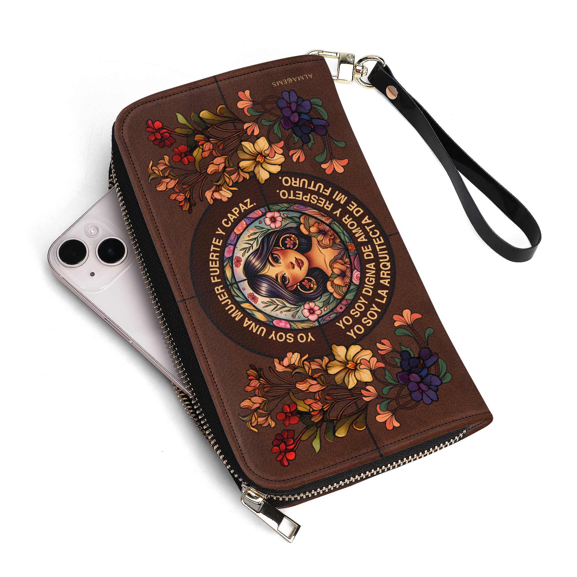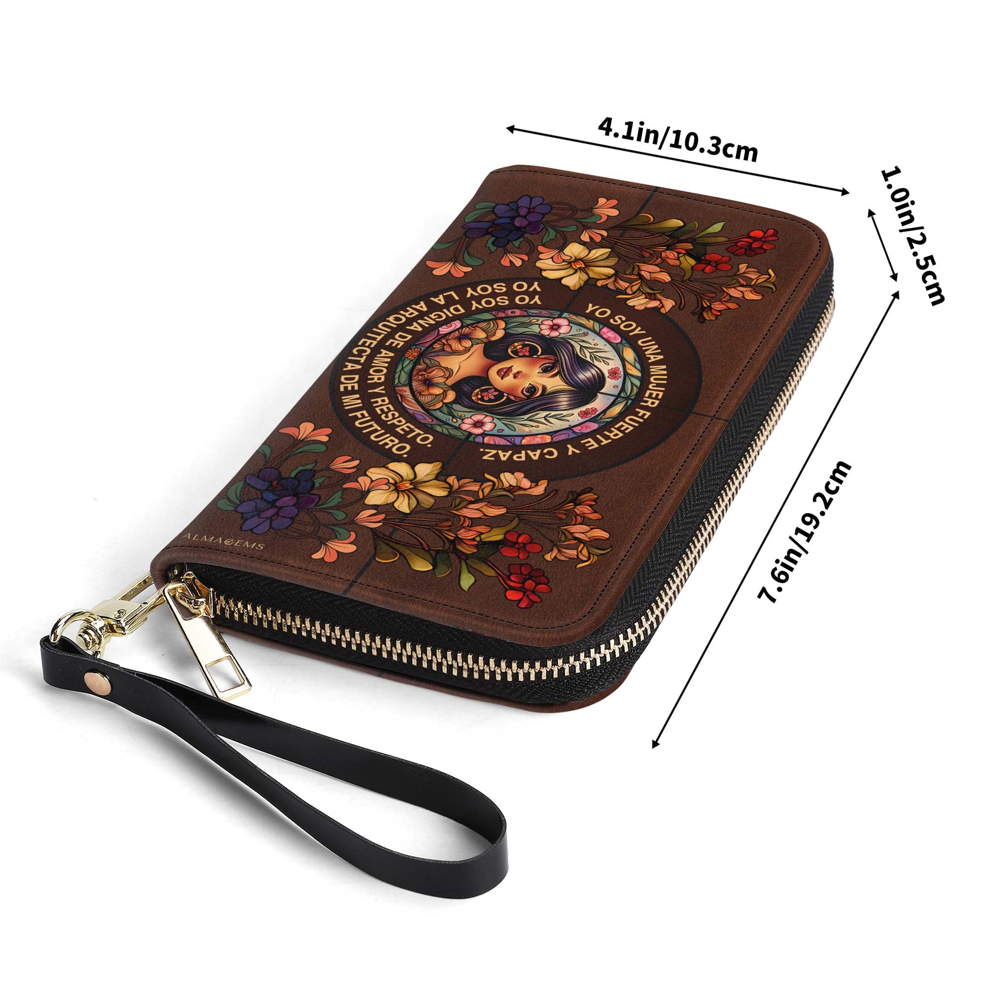 Mujer Fuerte Y Capaz - Hispanic Heritage Personalized Custom Leather Wallet, All Over Print - Gift for Mom, Girlfriend, and Daughter