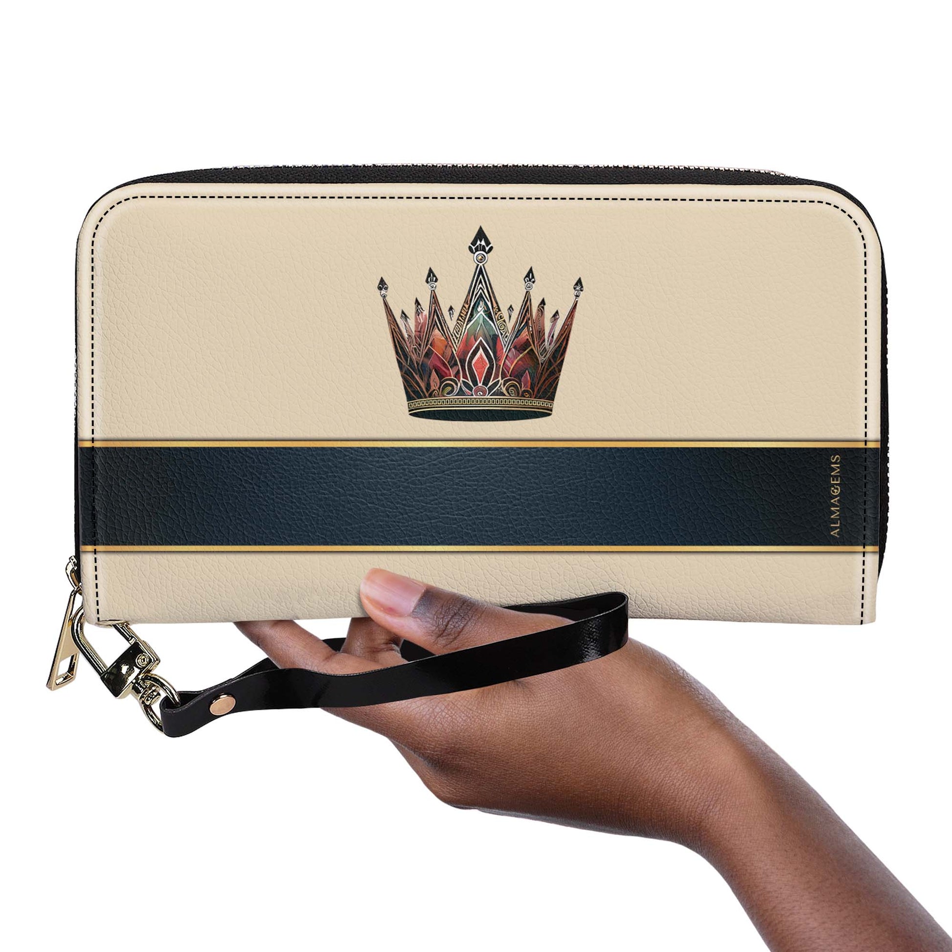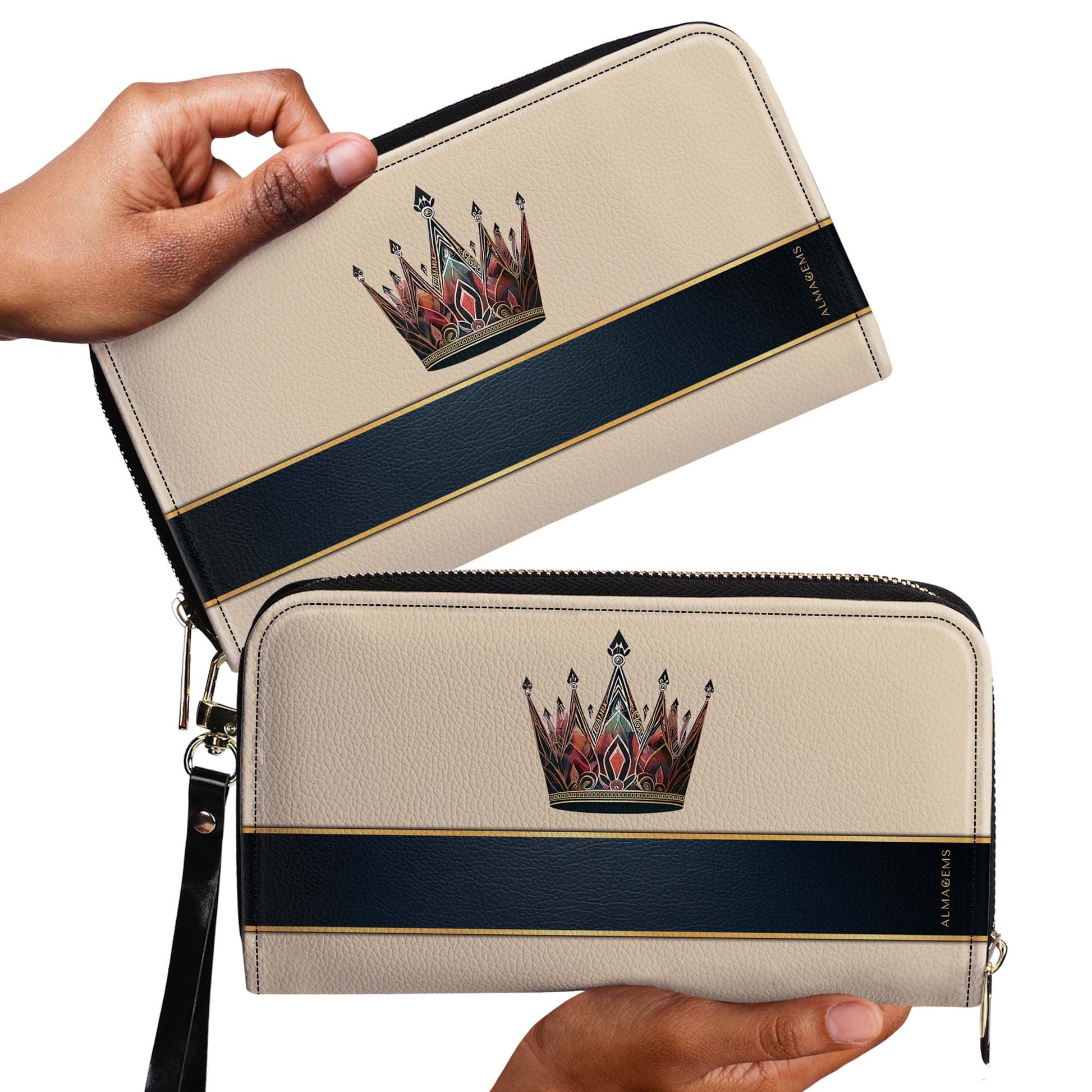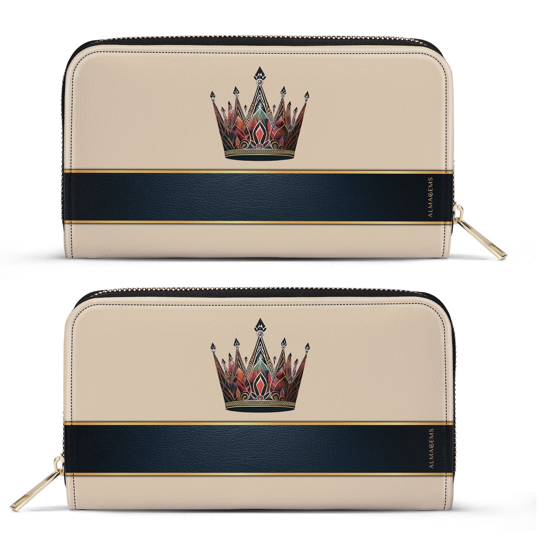Portefeuille en cuir Queen Beige pour femme - queen02beigeWL