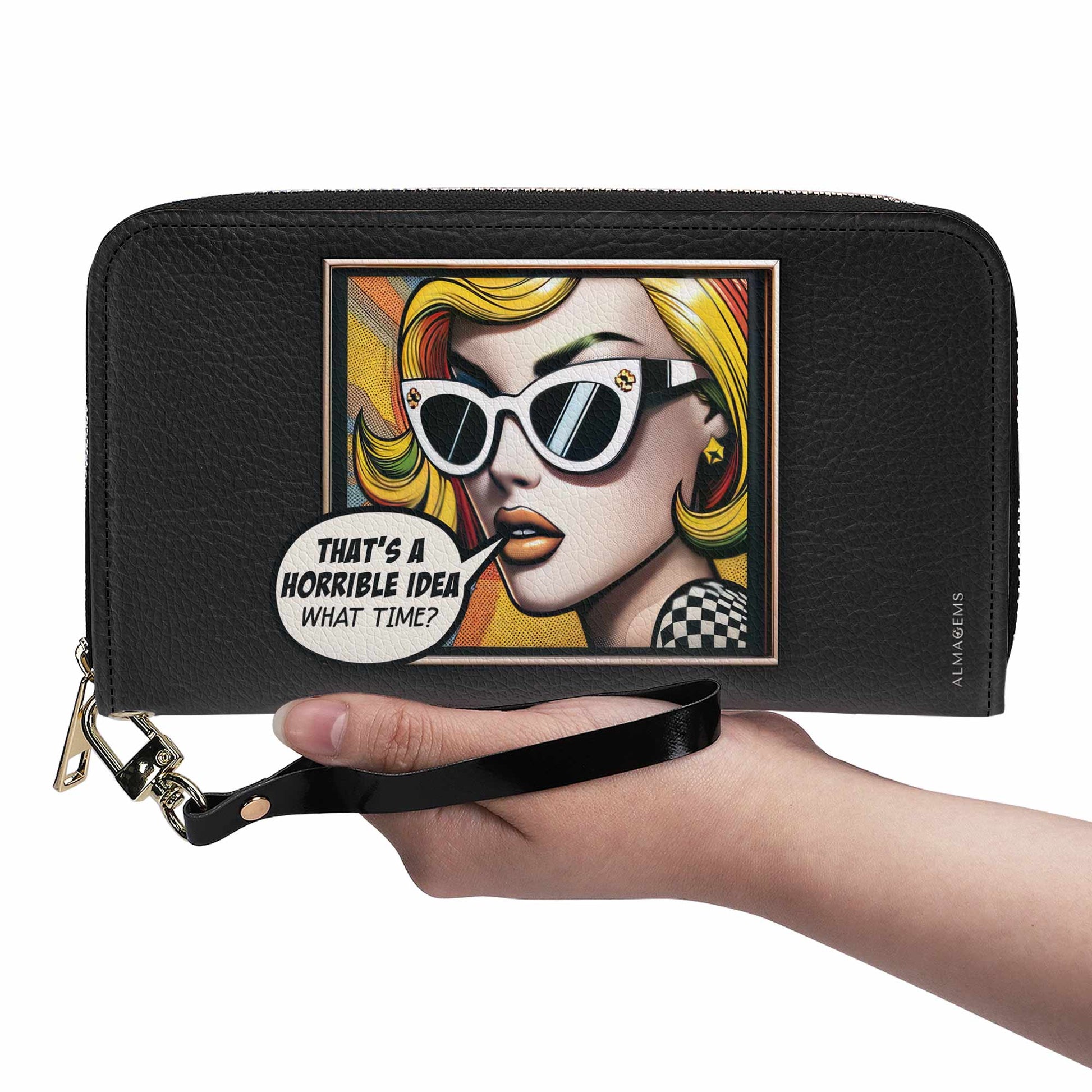 Horrible Idea What Time? - Pop Art Personalized Custom Wallet, All Over Print Leather Wallet - Gift For Mom, Girlfriend, Pop Art Fans