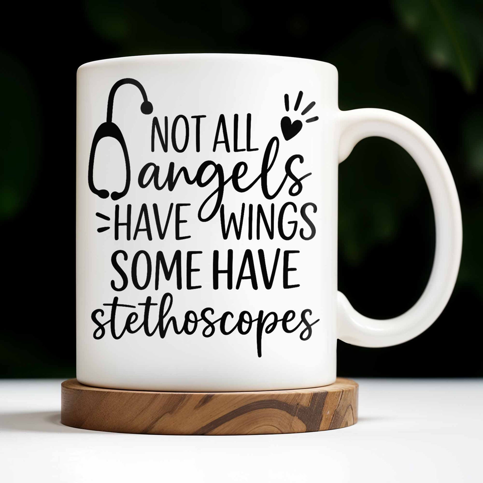Not All Angels Have Wings Some Have Stethoscopes, Personalized Custom Coffee Mug, Gift For Doctors And Nurses